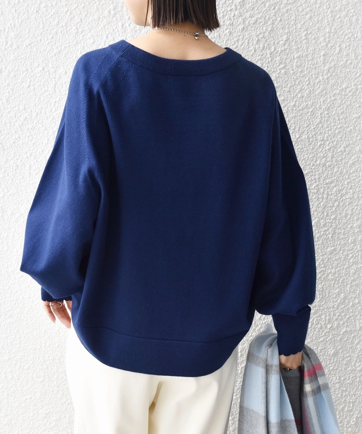 8. 〈手洗い可能〉コットン カシミヤ混 スカラップヘム ボートネック プルオーバー