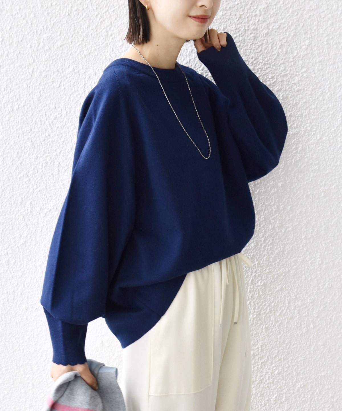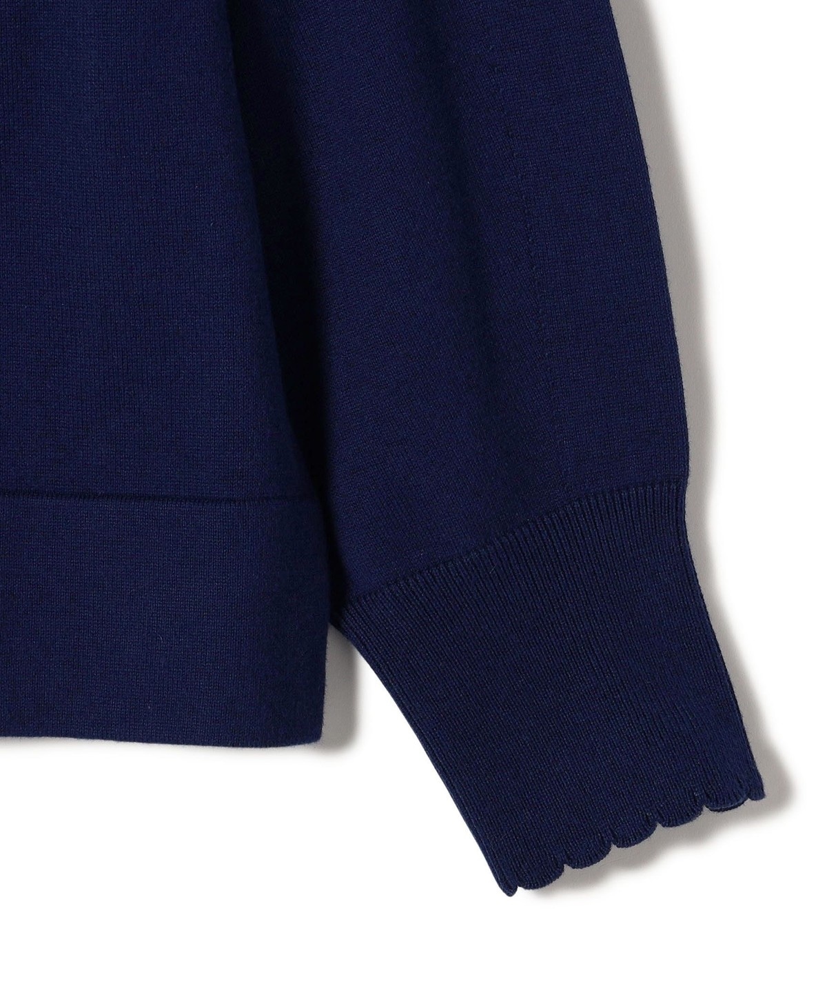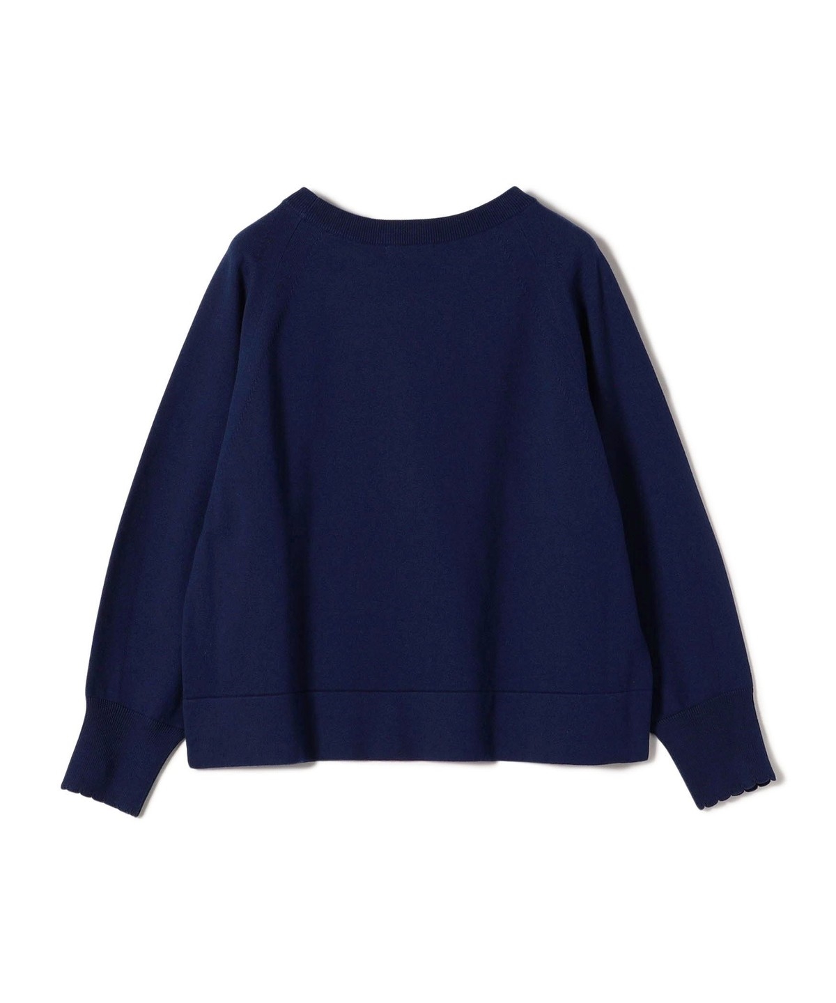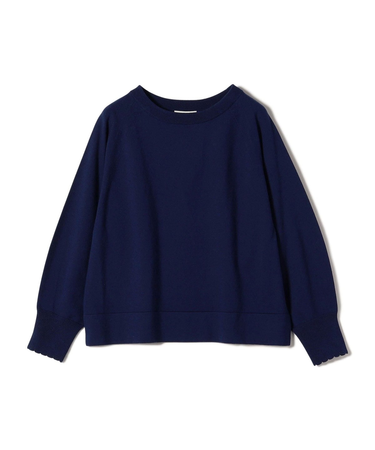 3. 〈手洗い可能〉コットン カシミヤ混 スカラップヘム ボートネック プルオーバー ネイビー
