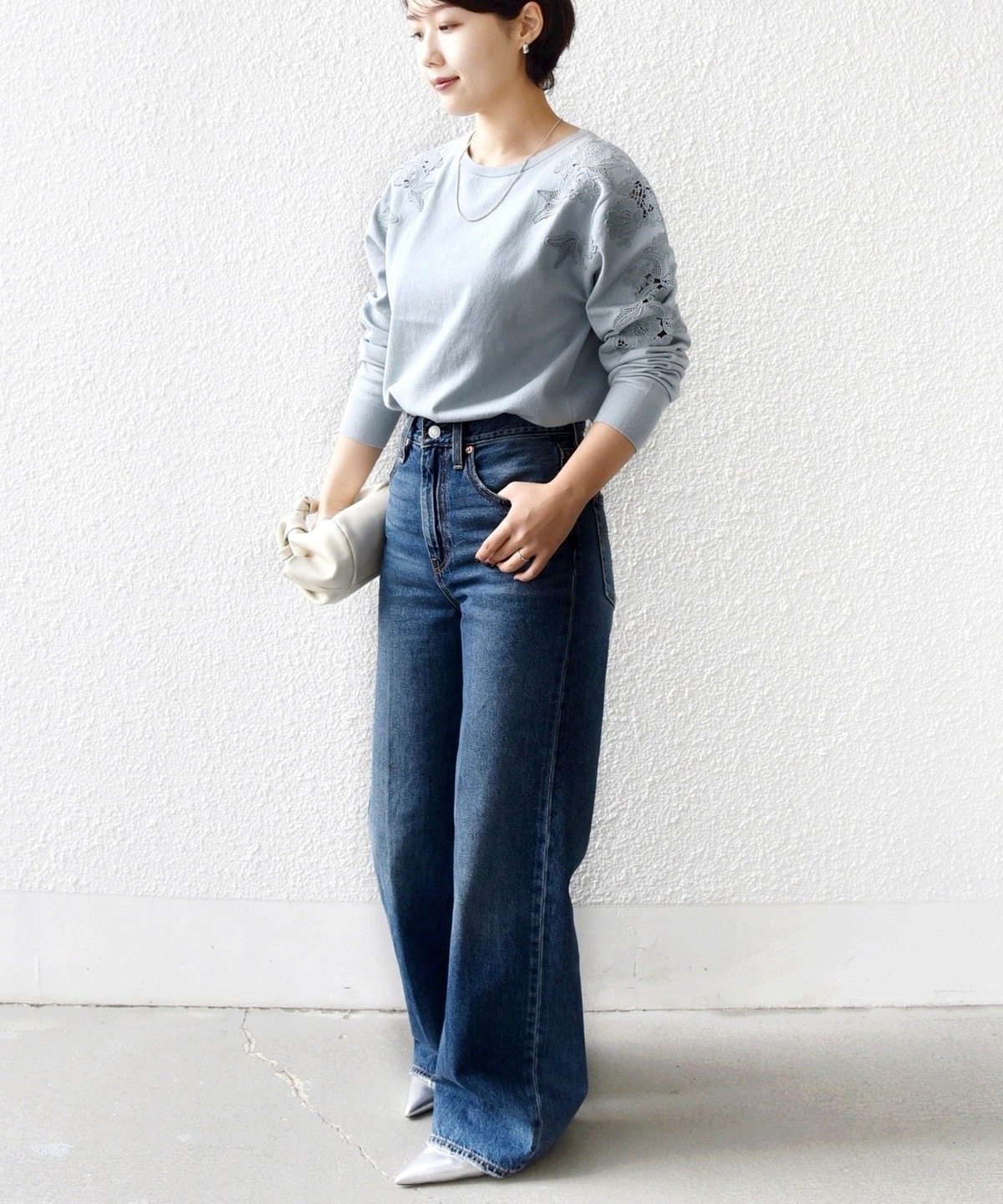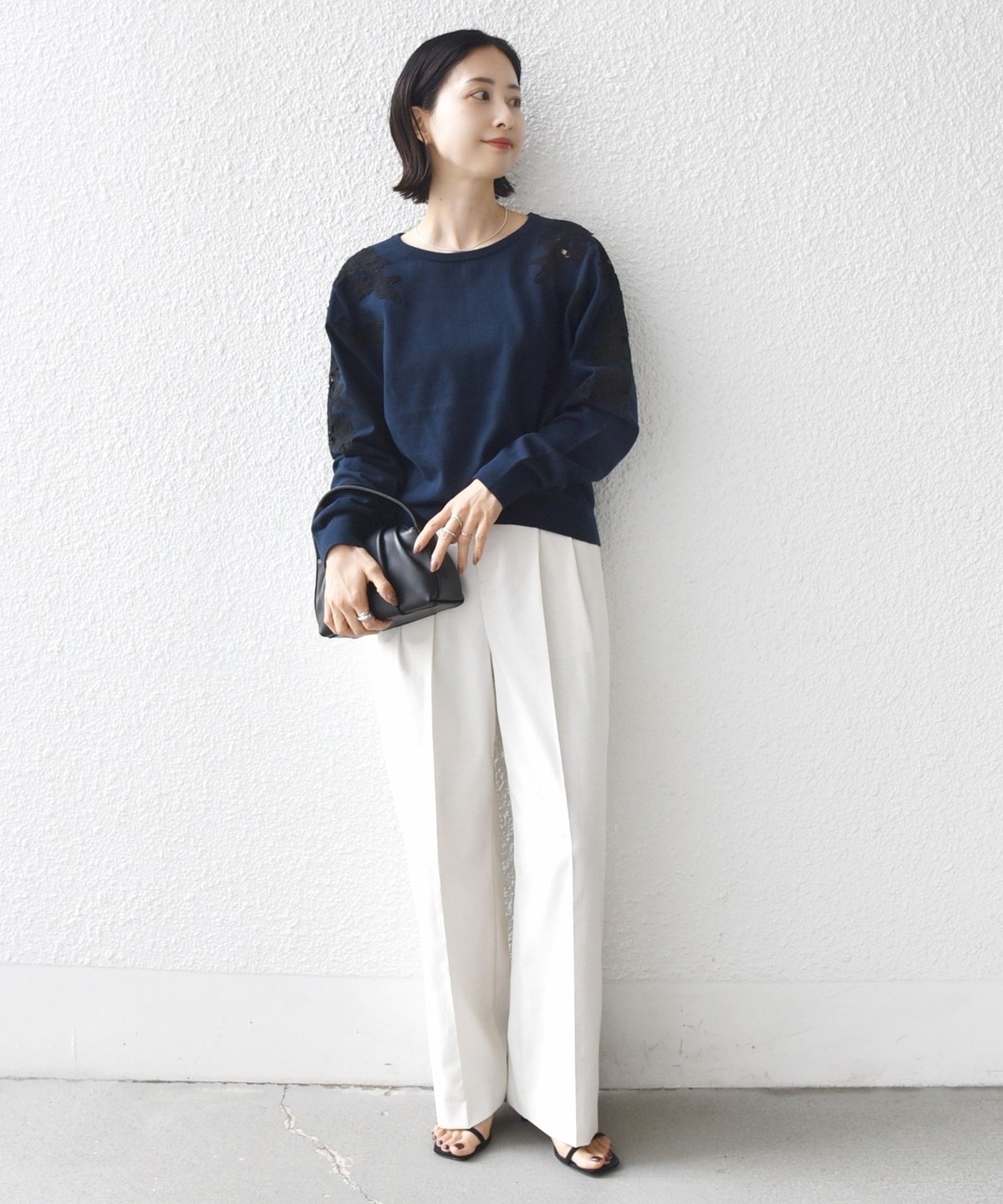 綺麗めパンツで通勤スタイルに、デニムでカジュアルダウンしても◎