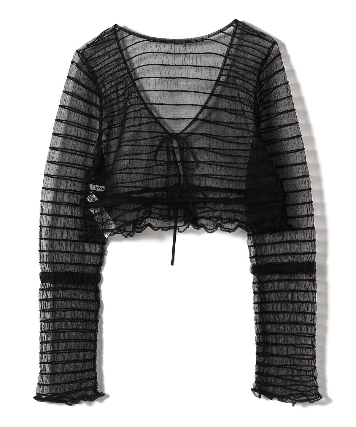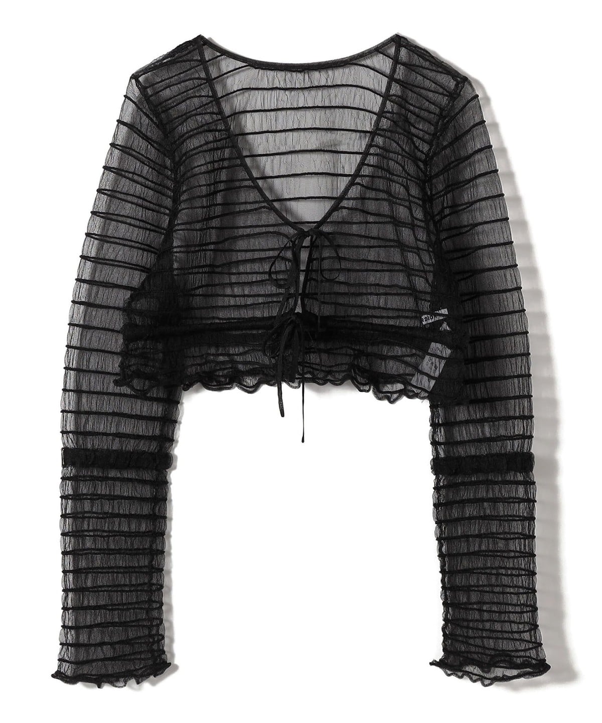 1. A CCORDION:〈手洗い可能〉クリア ウェービング ボーダー カーディガン ブラック