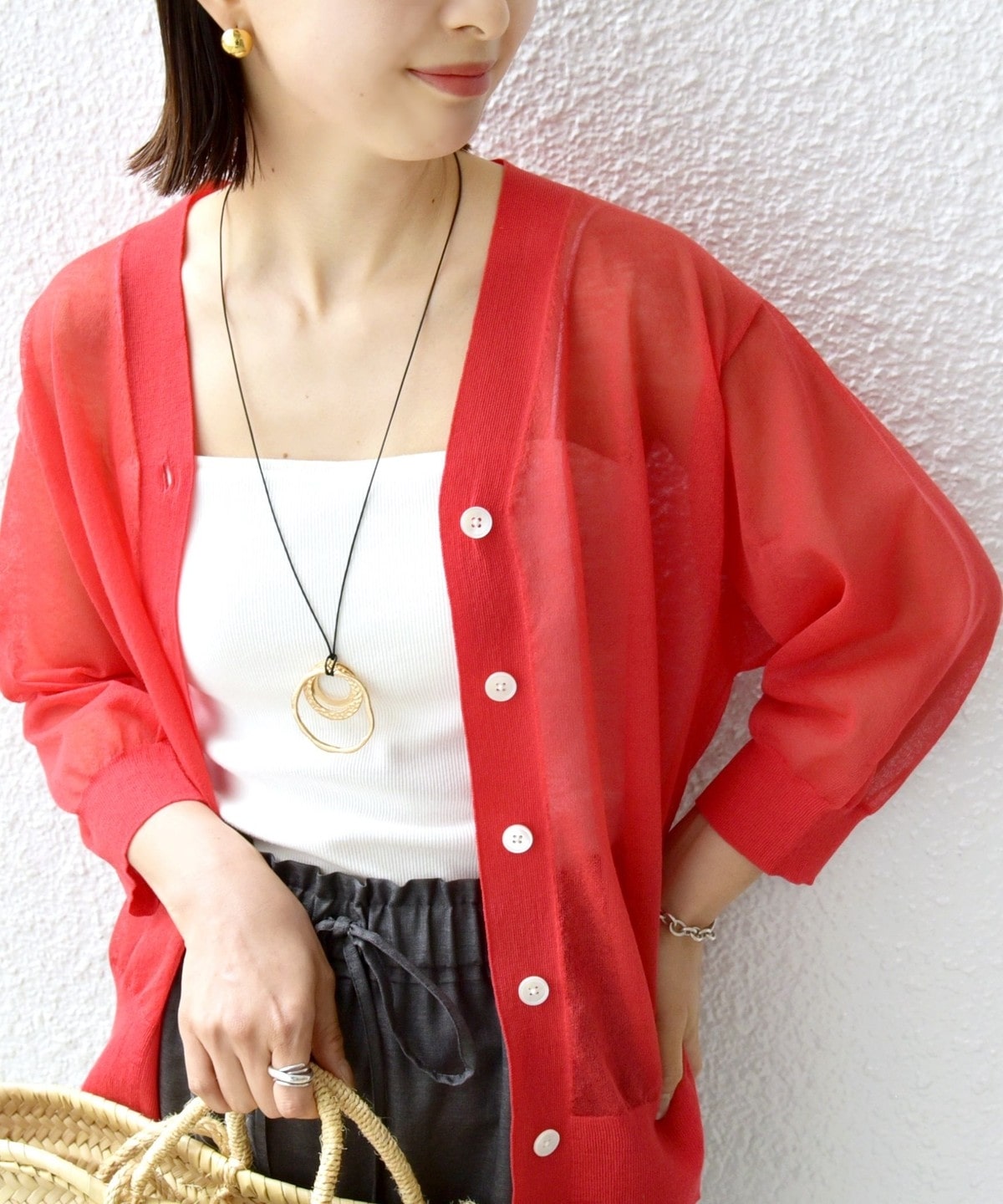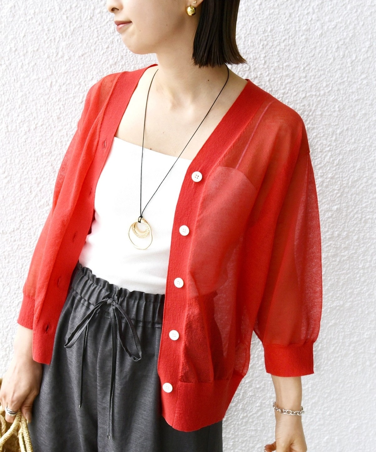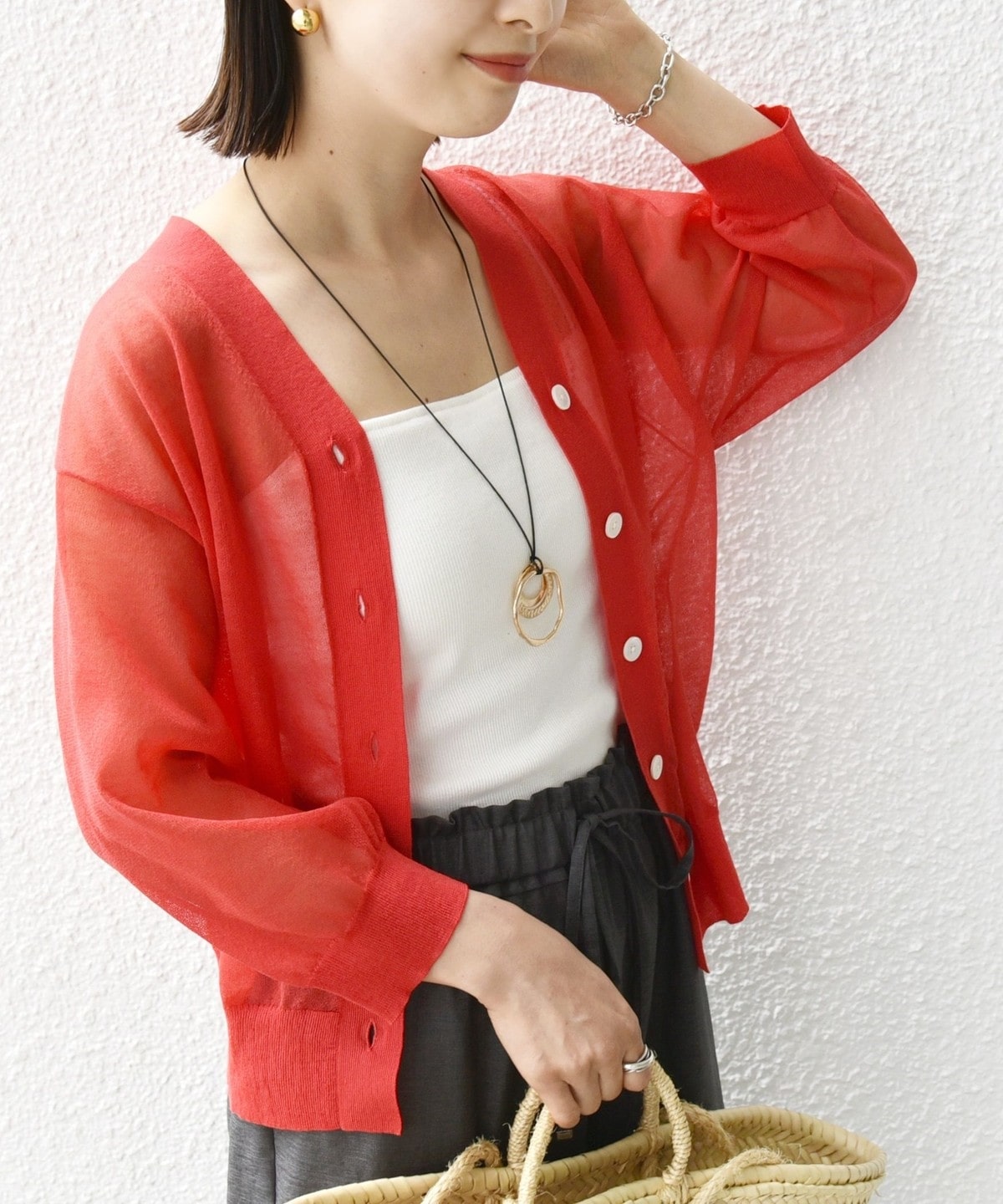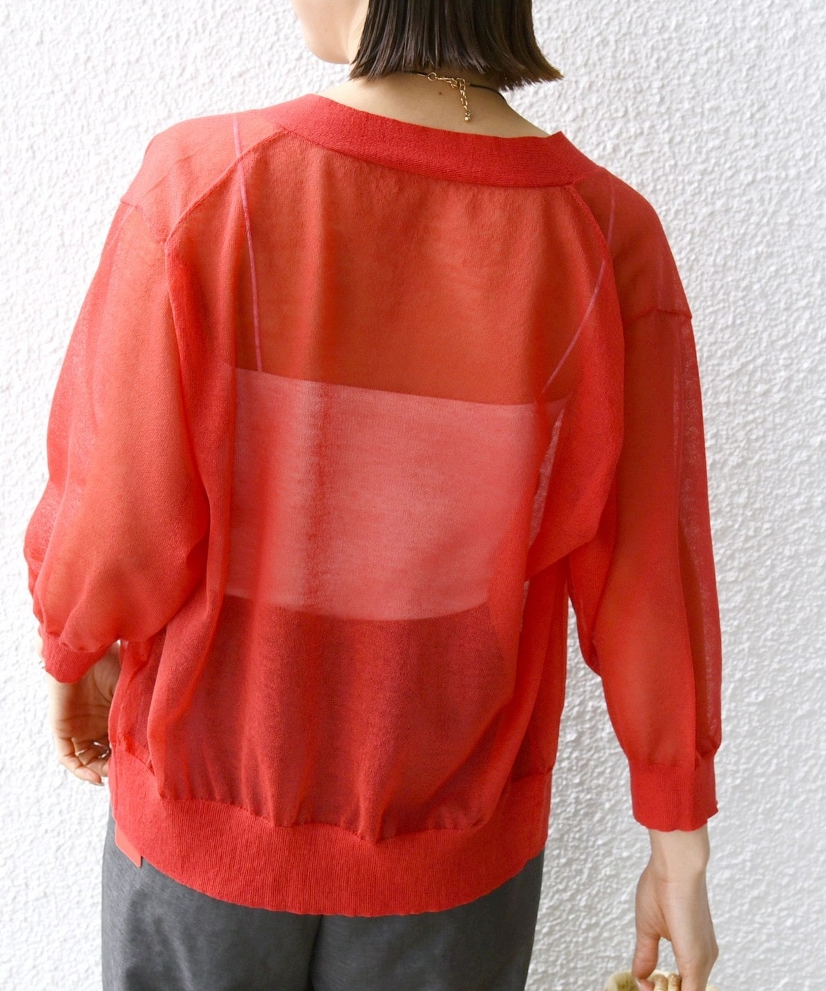 〈手洗い可能〉ラミー混 シアー カーディガン