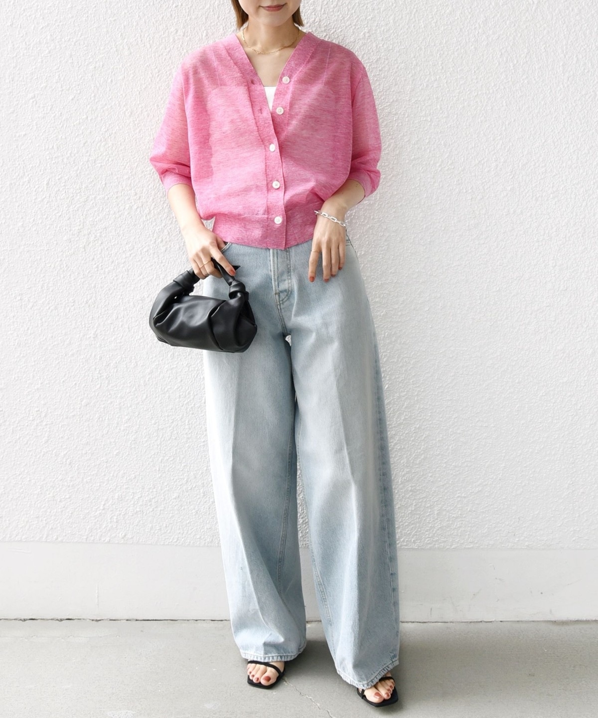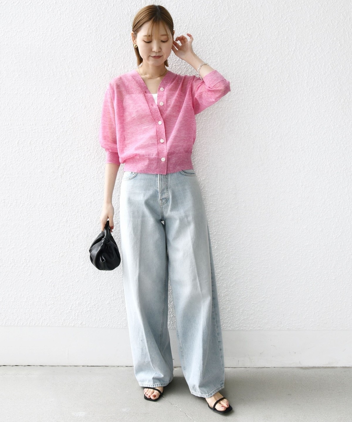 ラミー混の表情がある糸を使用し、シンプルながらもおしゃれな雰囲気に仕上がっています。