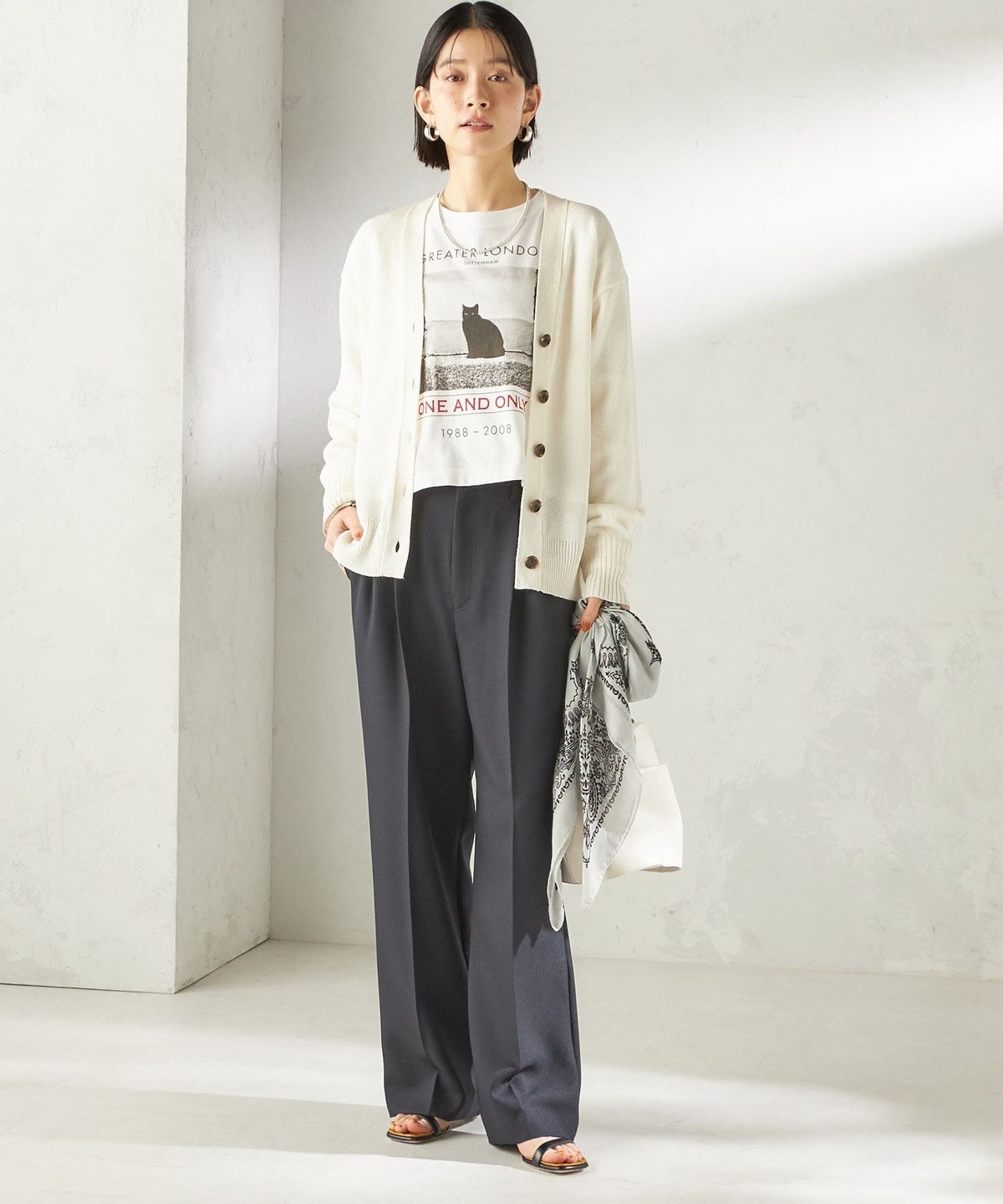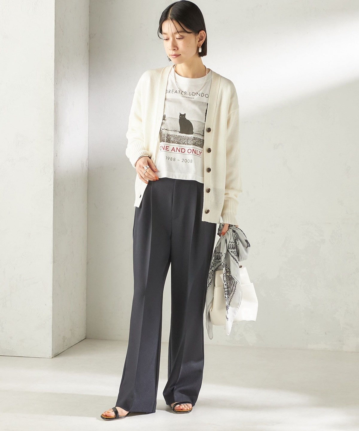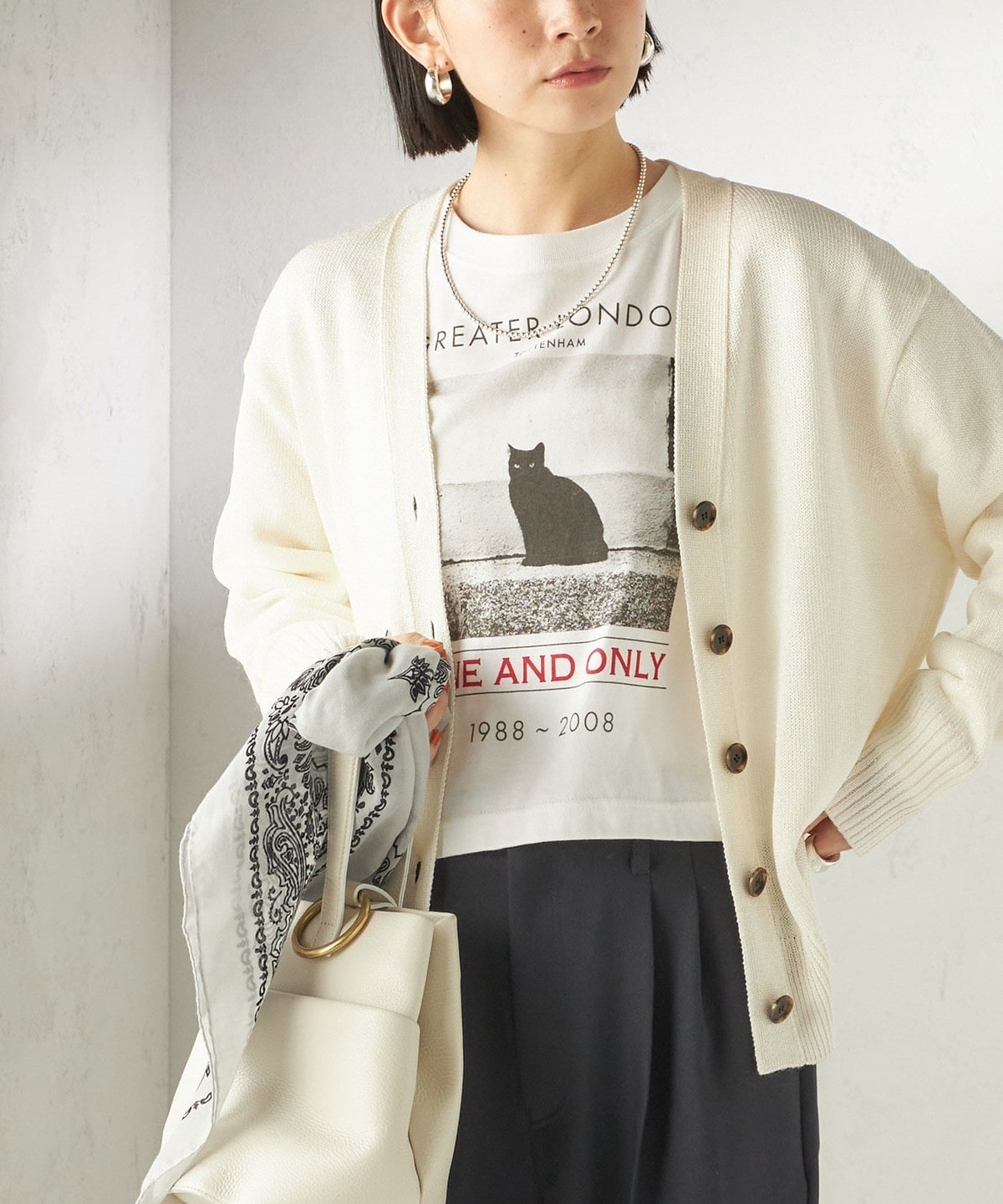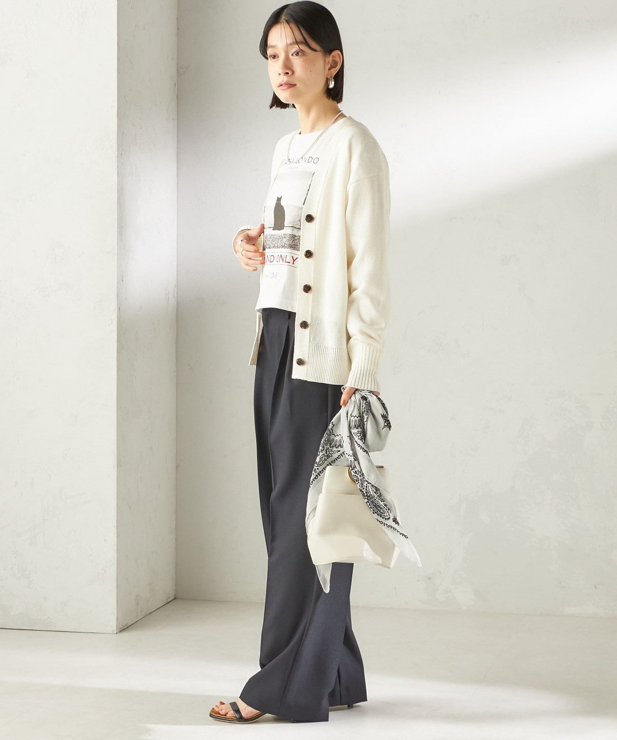 肌離れの良いサイズ感でありながら、コンパクトなサイジングで、気分なワイドめボトムからワンピースまで幅広いアイテムと合わせやすく、艶感のある素材感が今年らしい雰囲気です。
