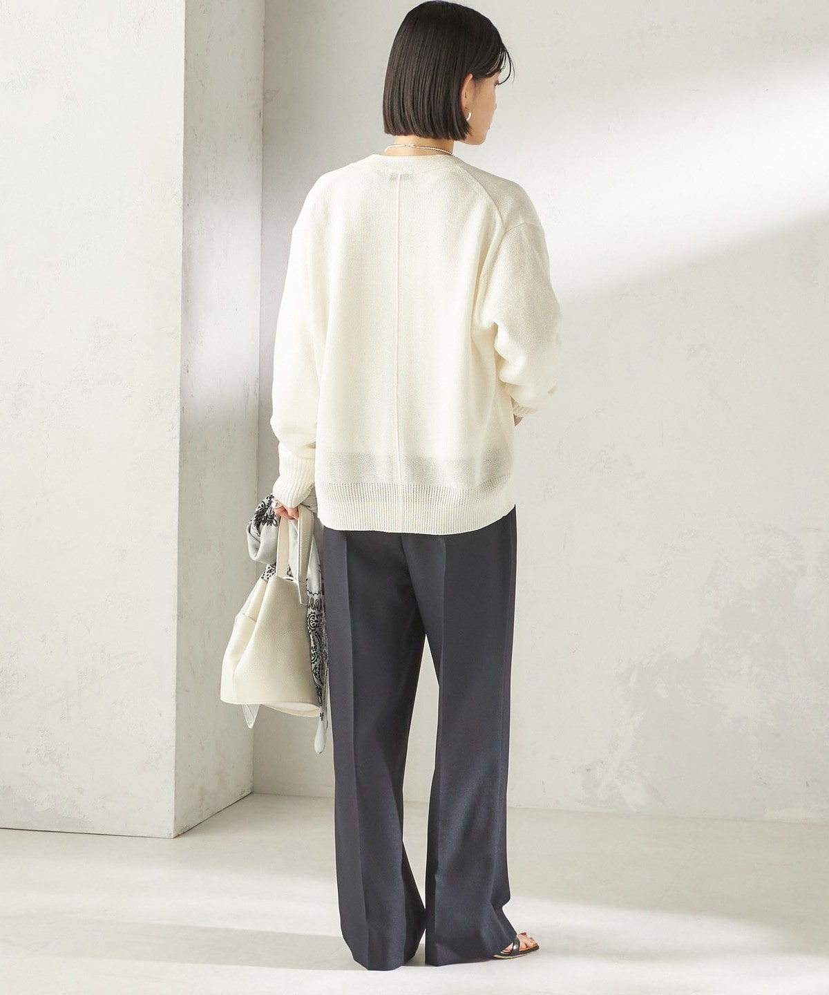 《予約》〈手洗い可能〉ブライト ペーパー Vネック ニット カーディガン