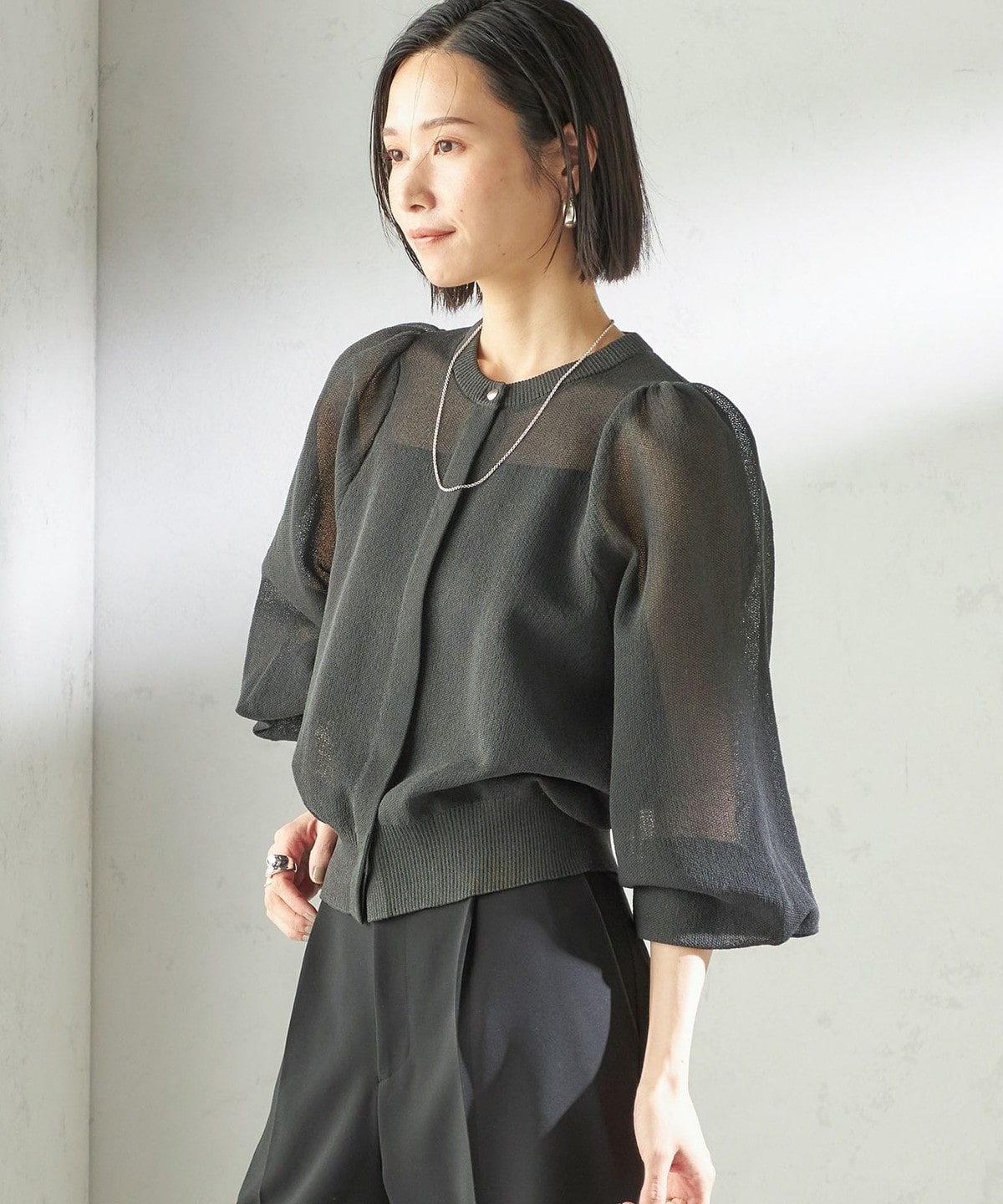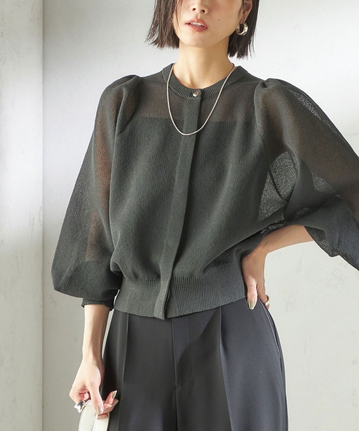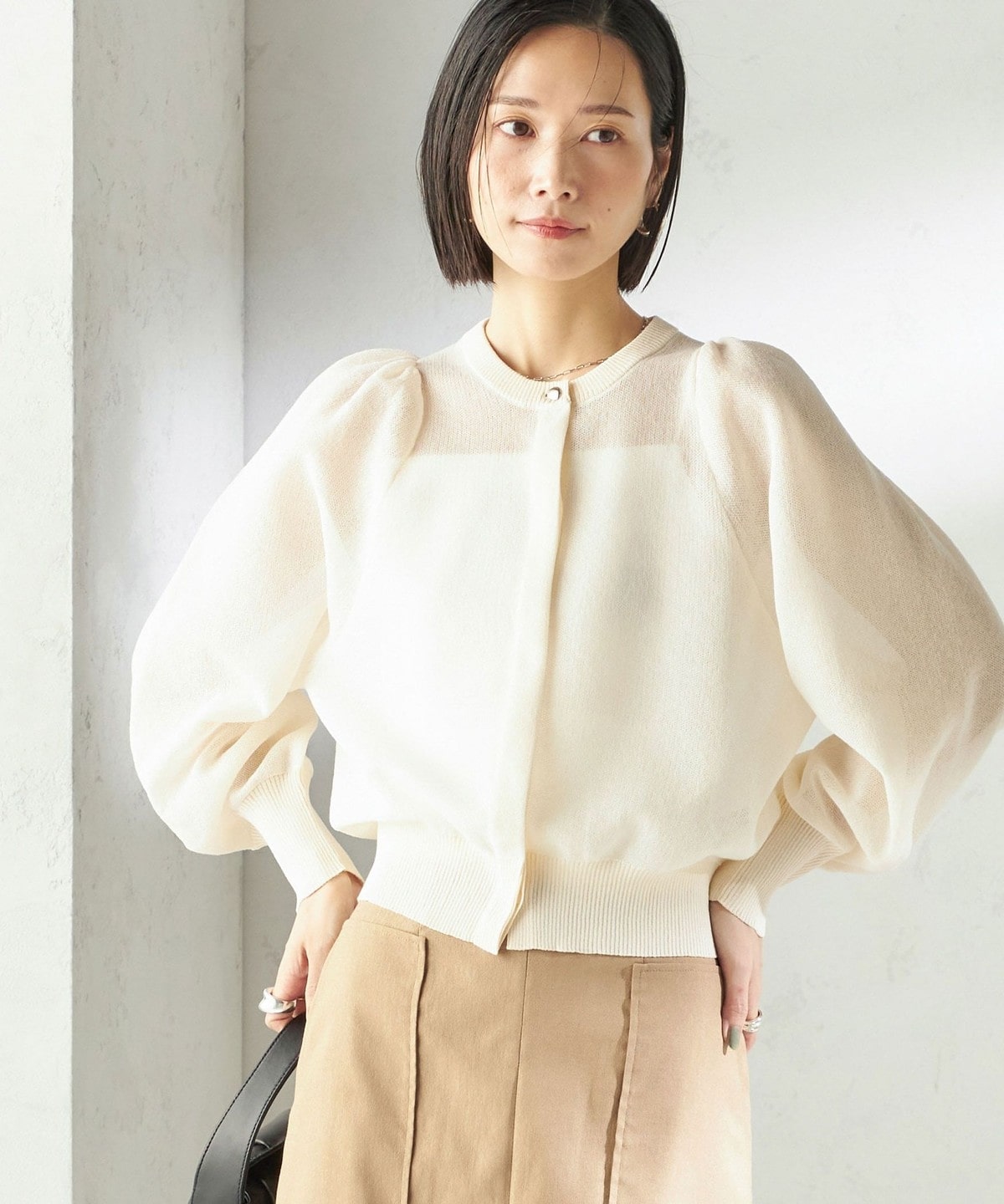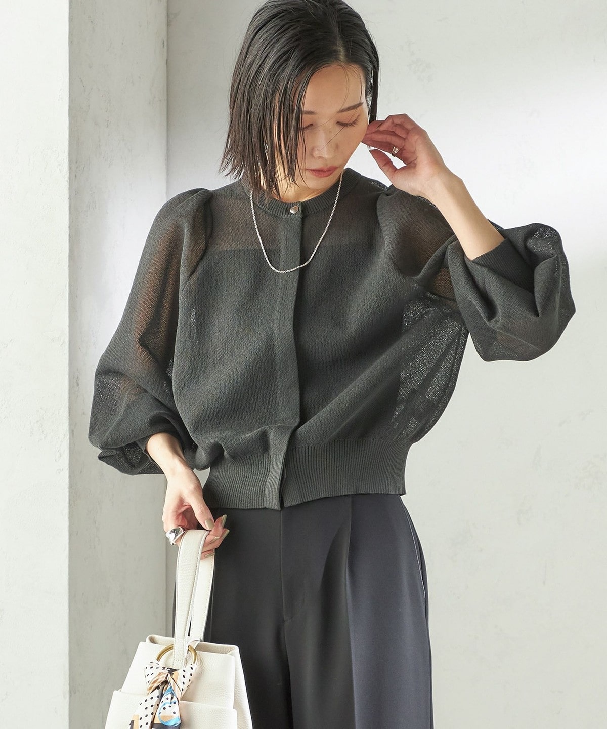 《予約》〈手洗い可能〉メランジ シアー パフ スリーブ カーディガン