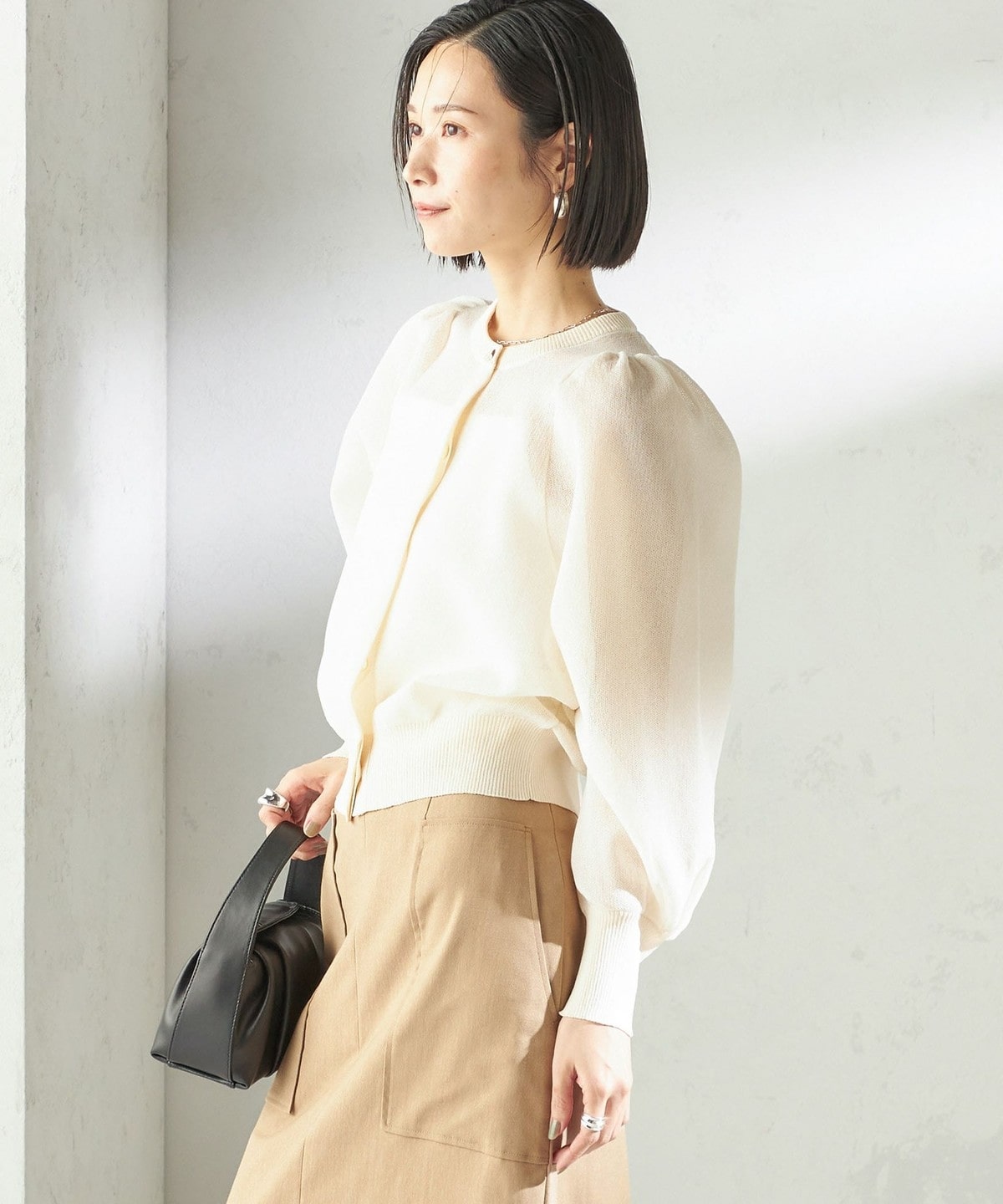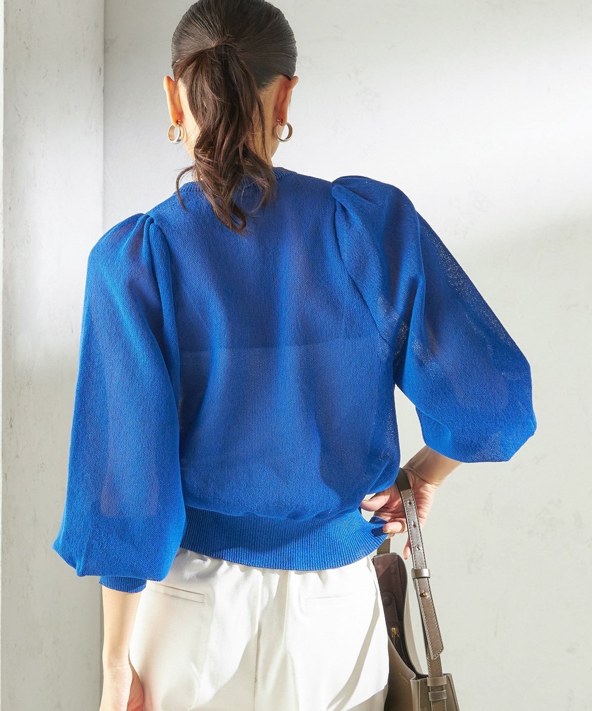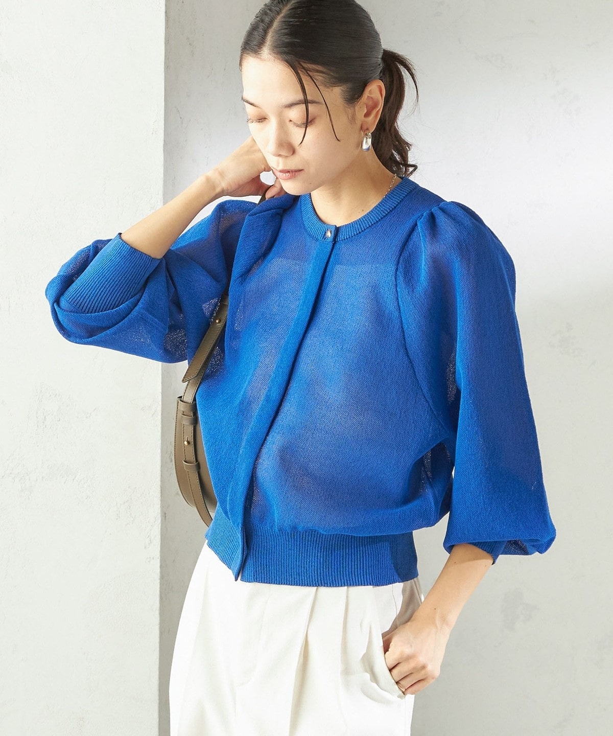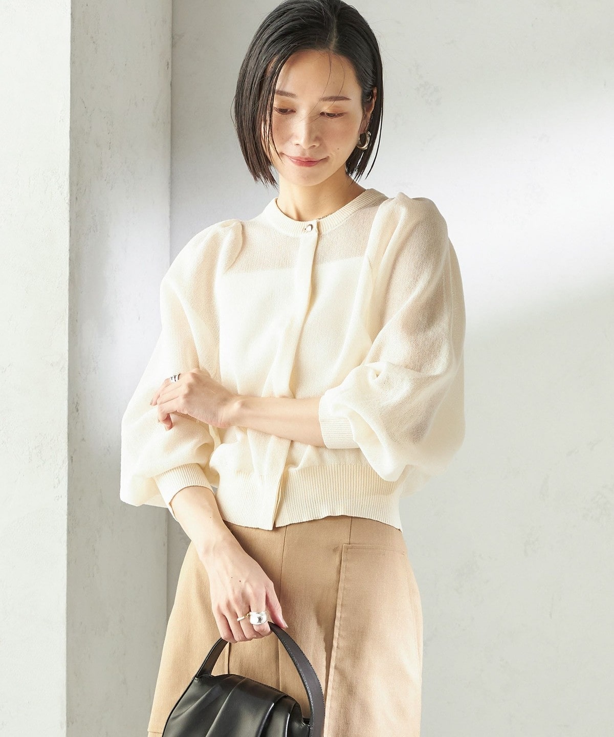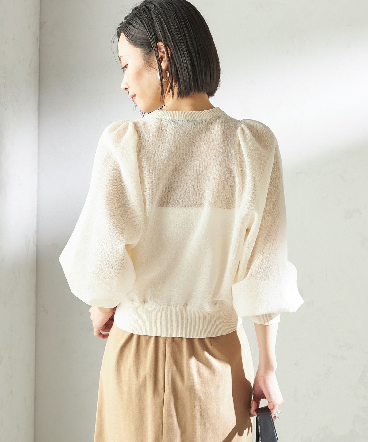 《予約》〈手洗い可能〉メランジ シアー パフ スリーブ カーディガン