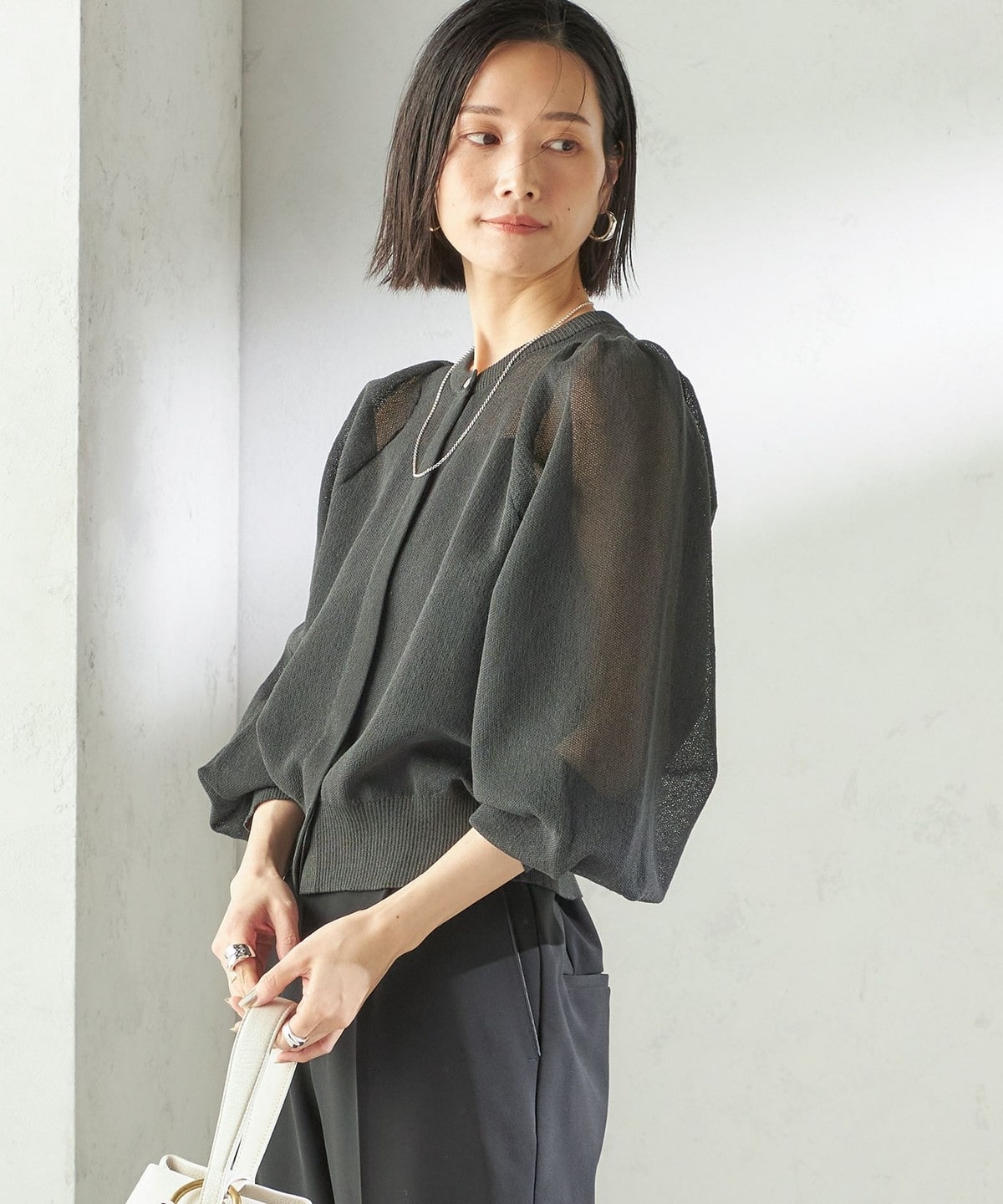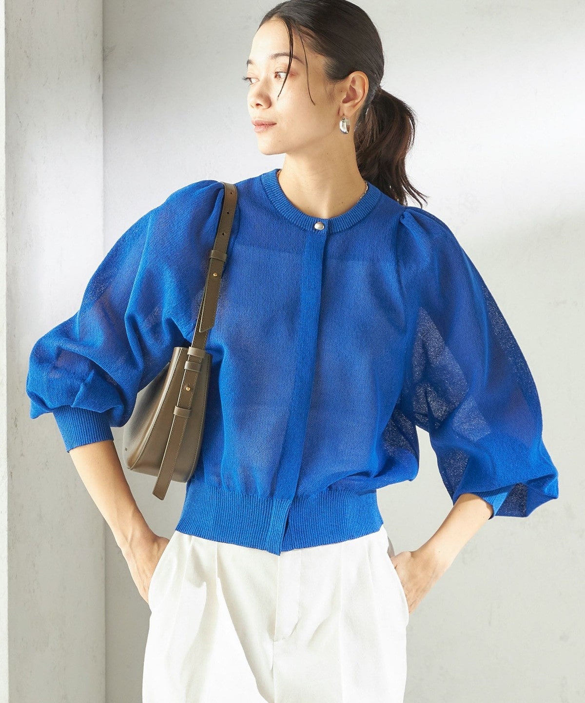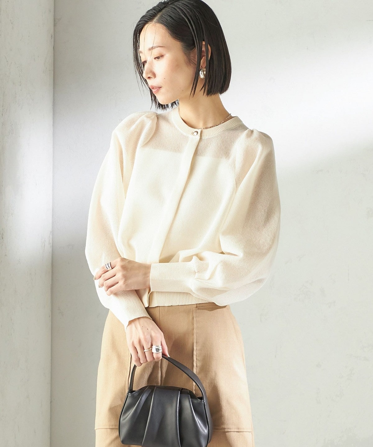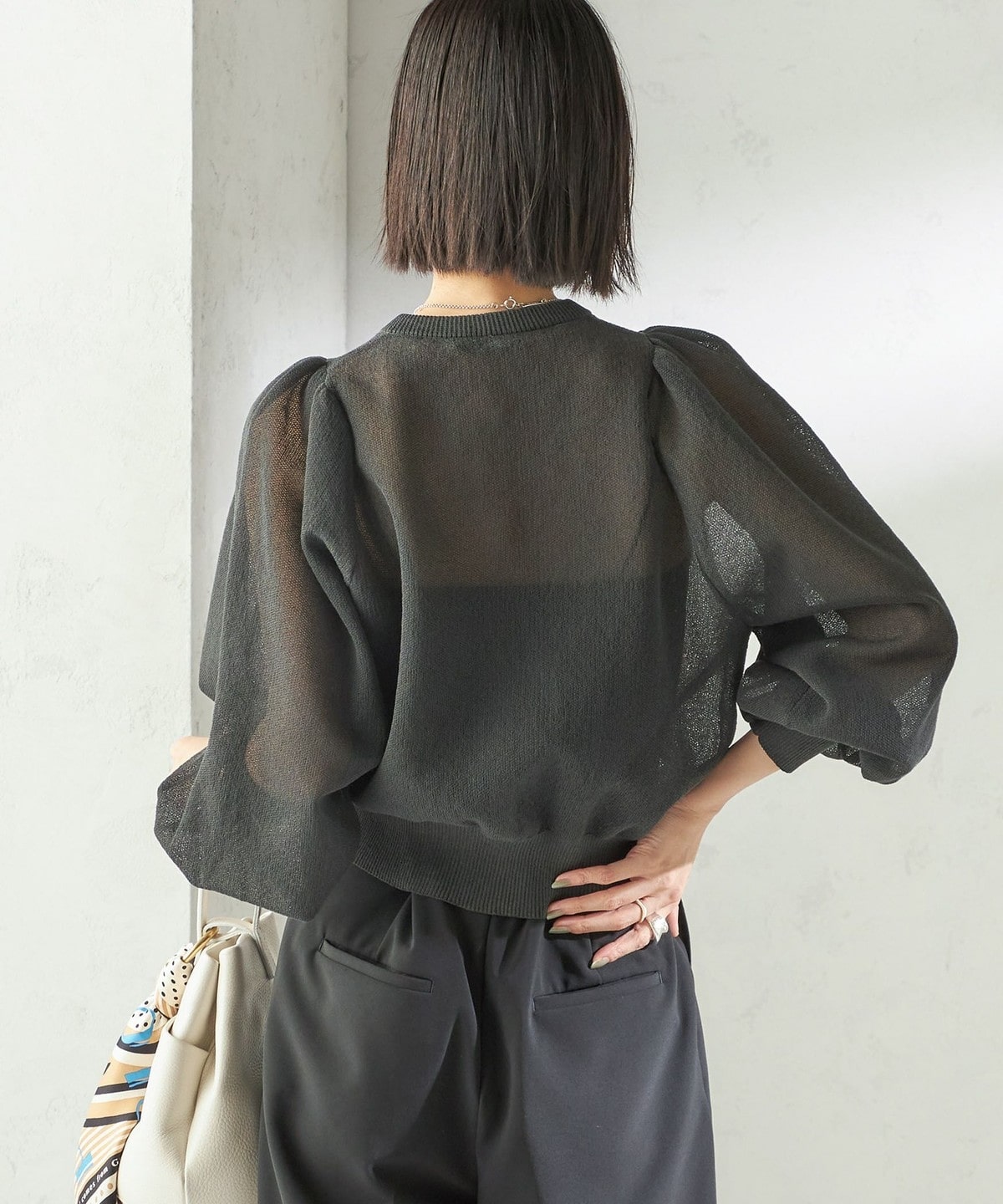 《予約》〈手洗い可能〉メランジ シアー パフ スリーブ カーディガン