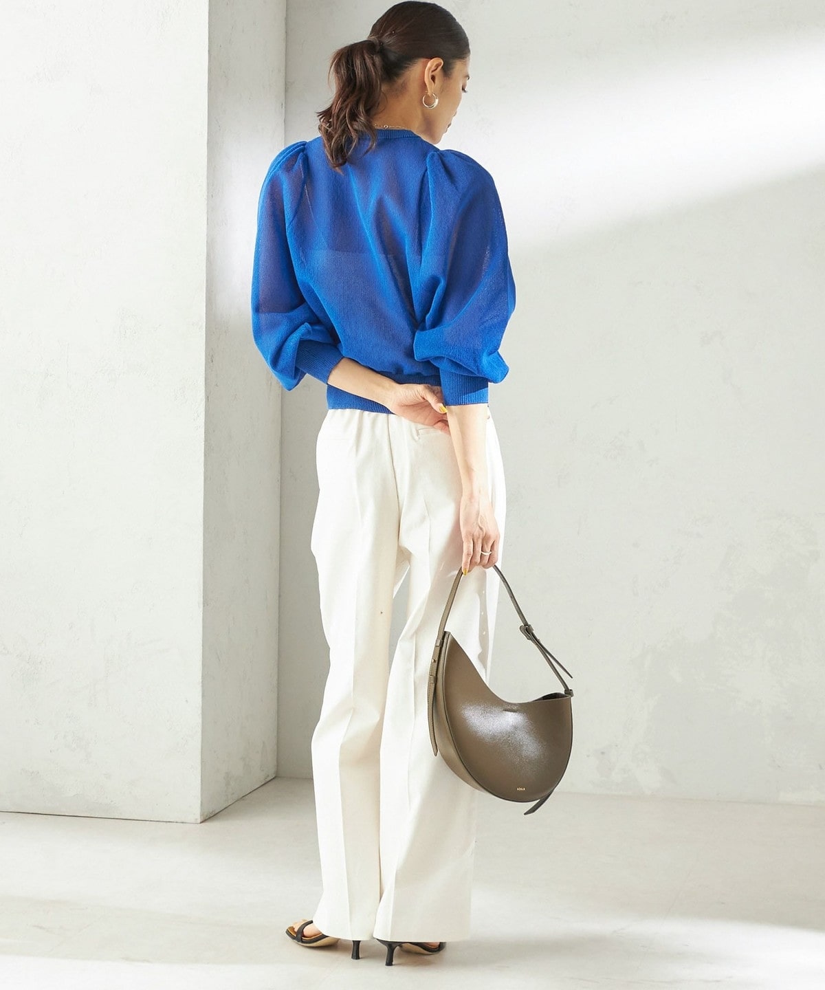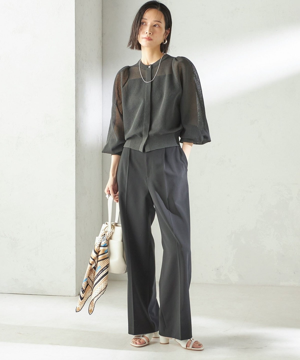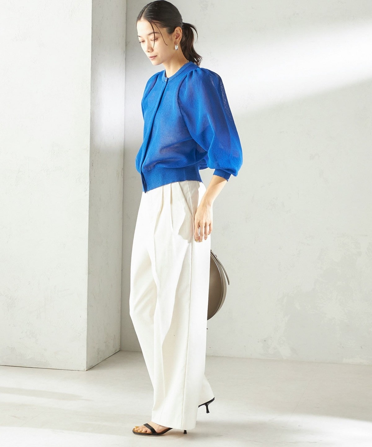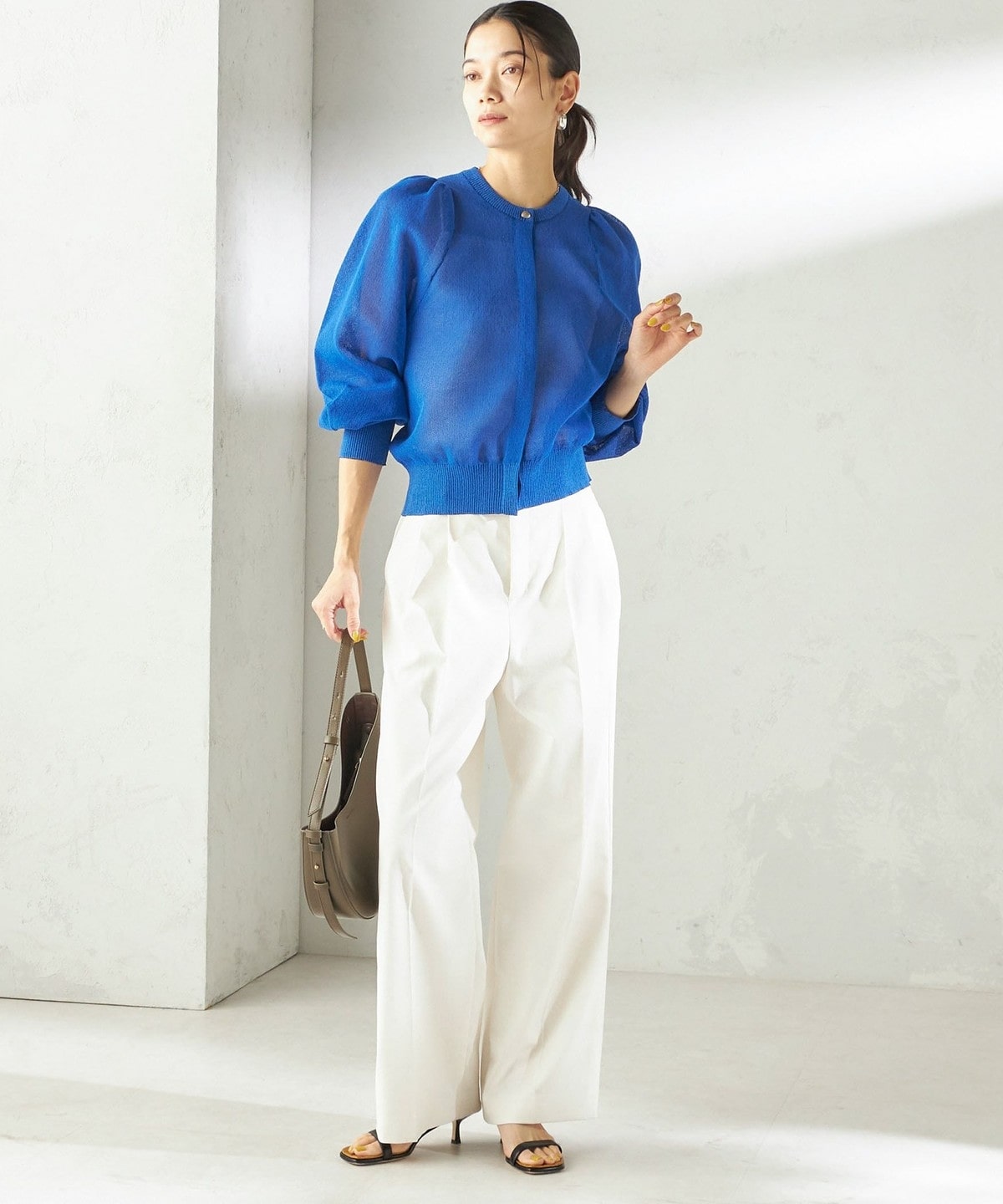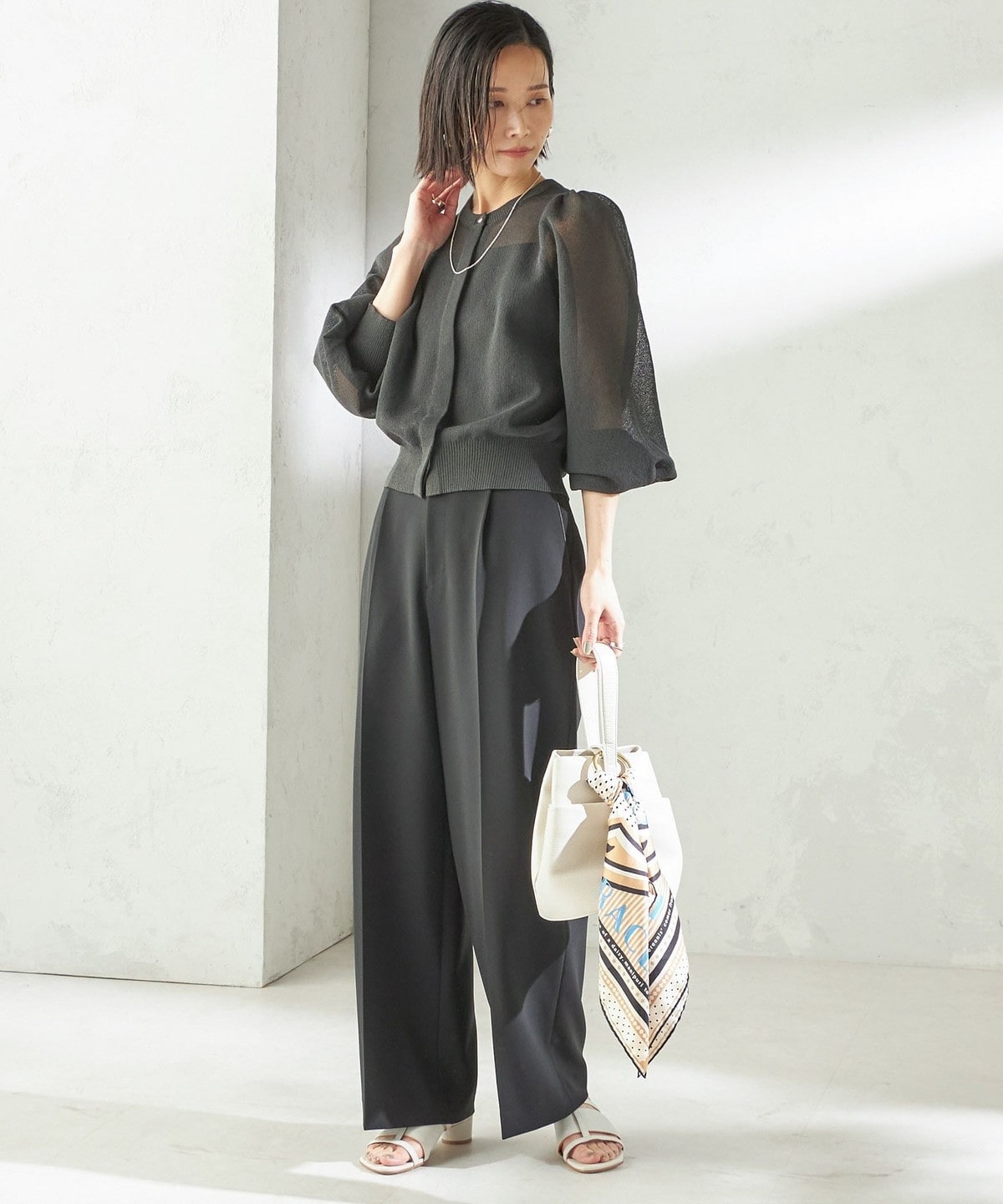 《予約》〈手洗い可能〉メランジ シアー パフ スリーブ カーディガン