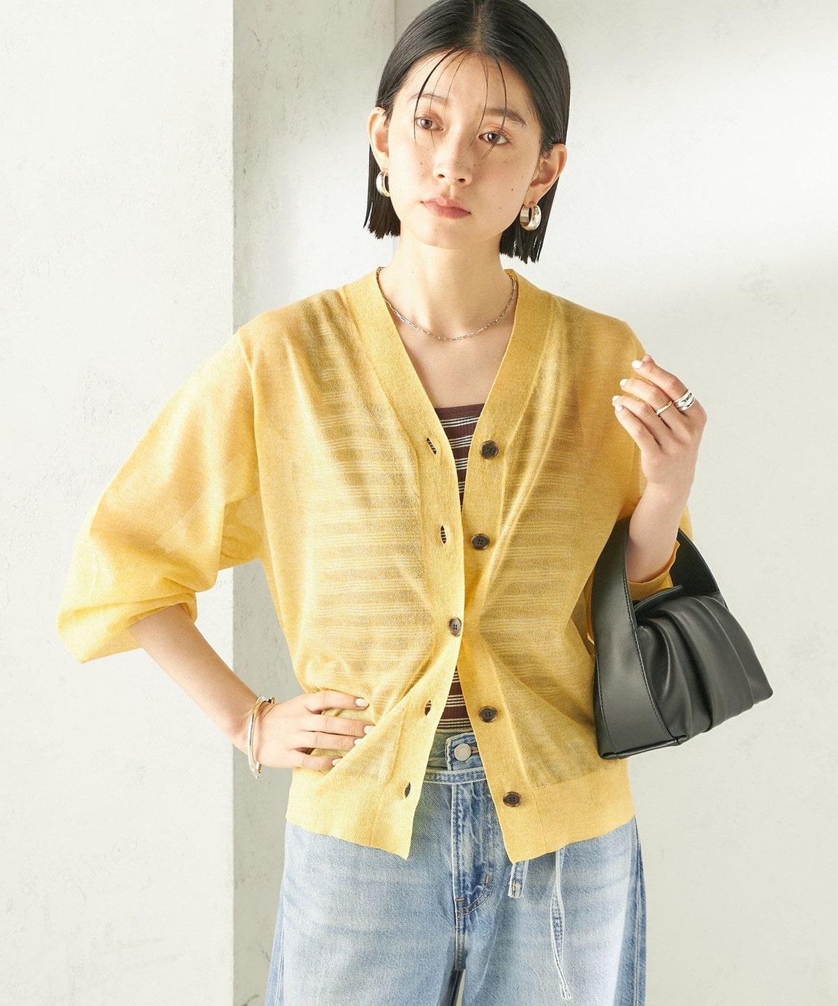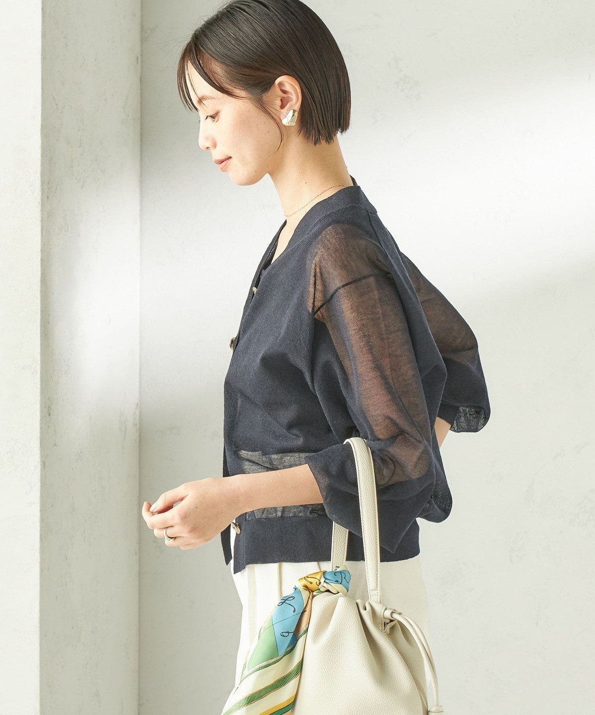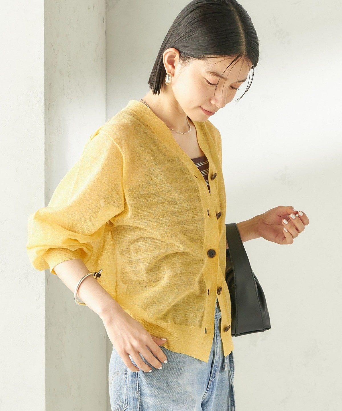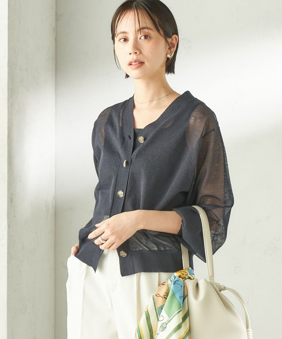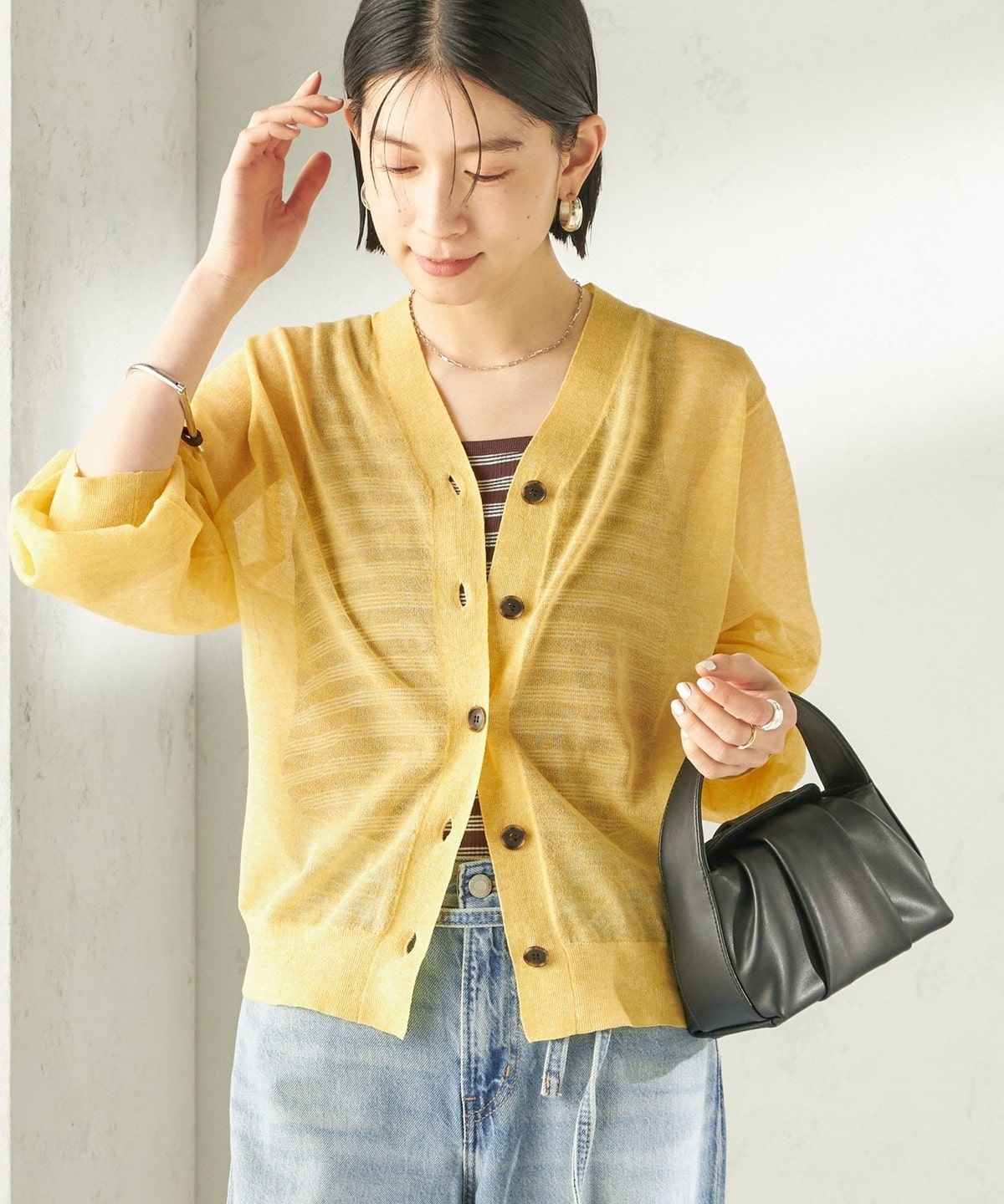 夏の日差しや冷房対策にもピッタリ!清涼感のある麻混シアーカーディガン