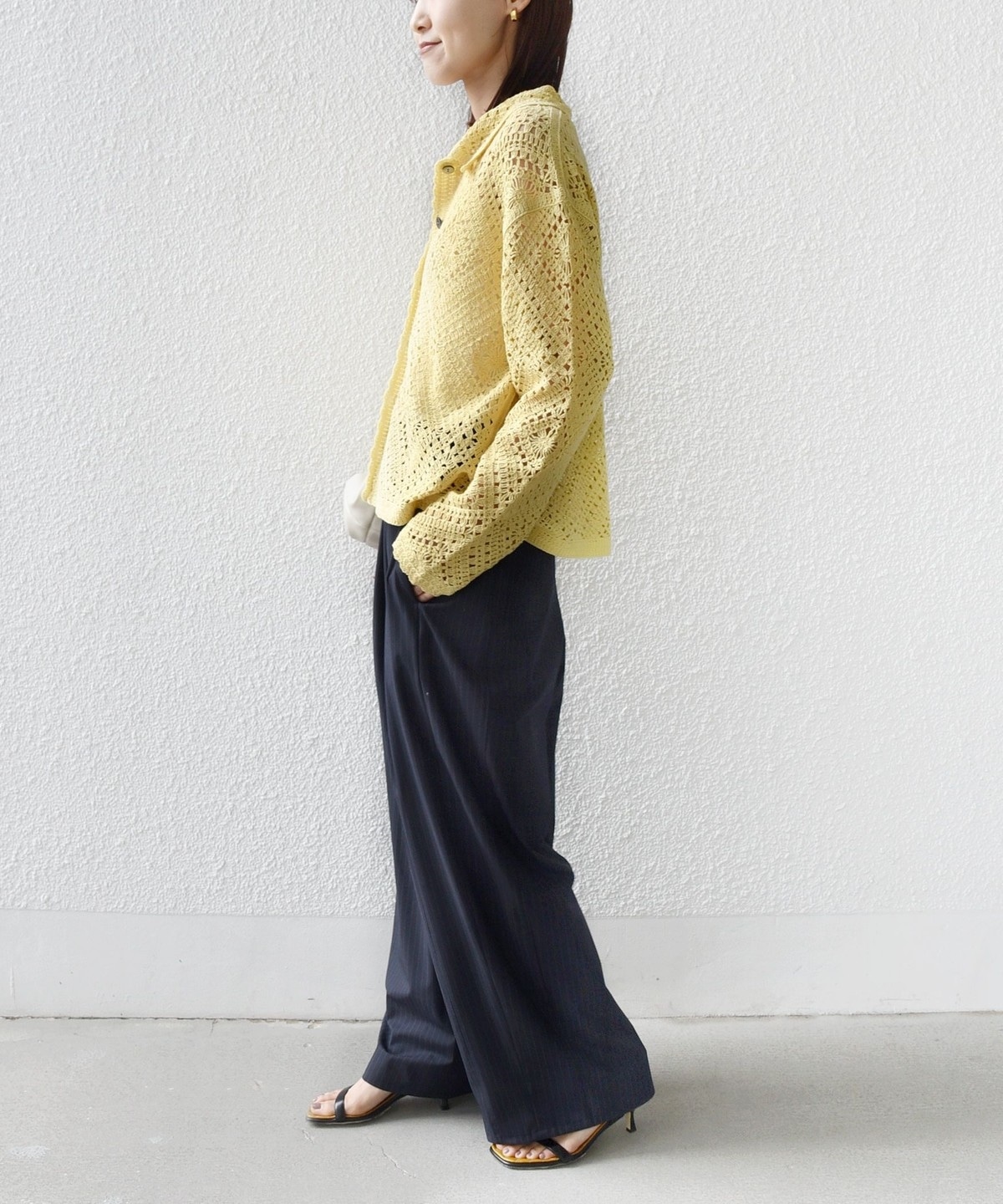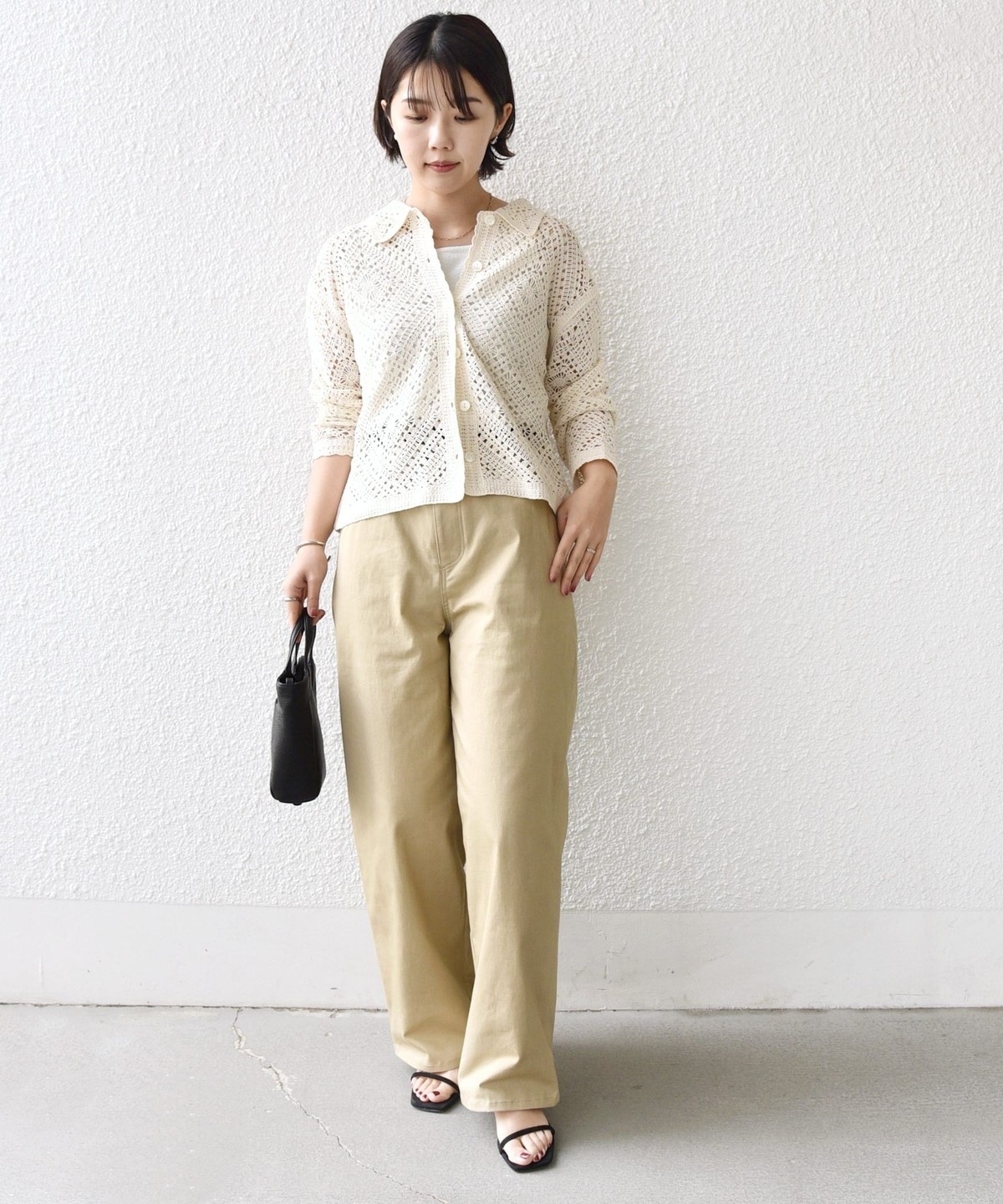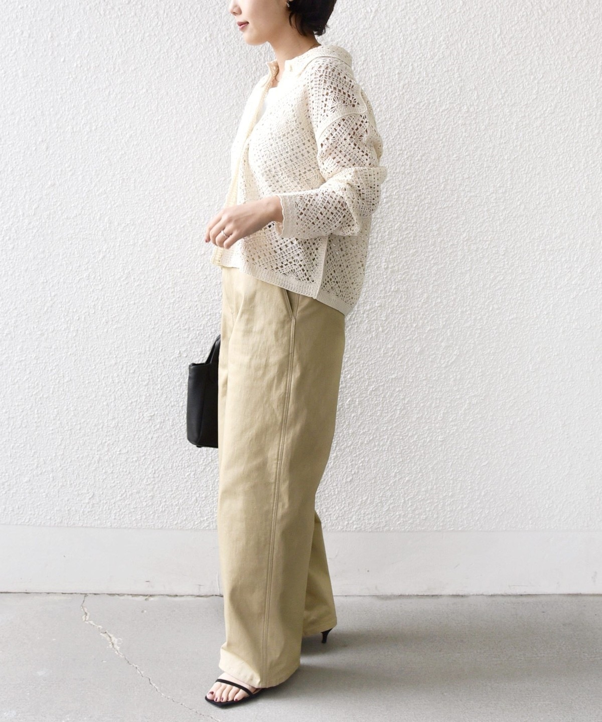インナーにはTシャツからタンクトップ、キャミソールなど季節に合わせたスタイルで調整が効くので長いシーズン着用いただけます。