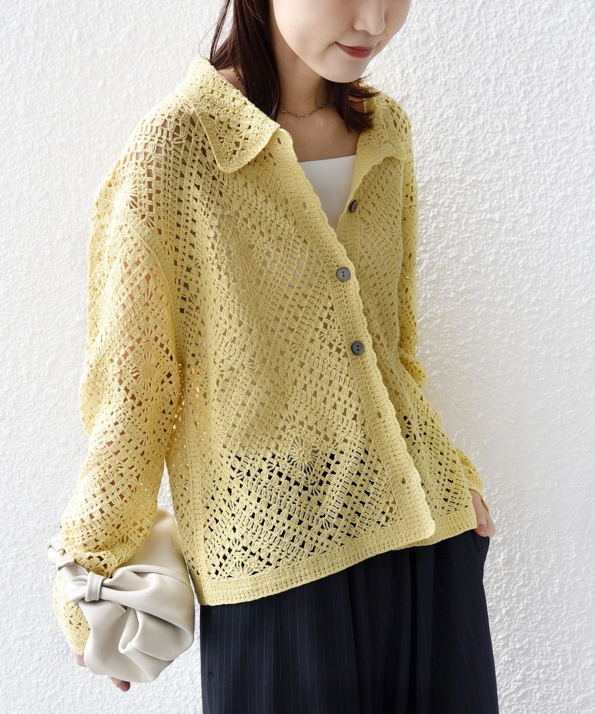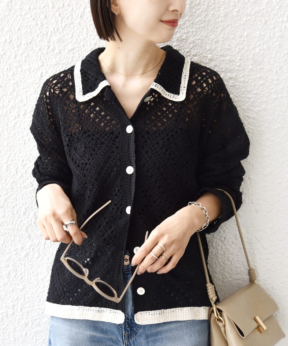 《予約》【WEB限定】〈手洗い可能〉クロシェ ニット カーディガン