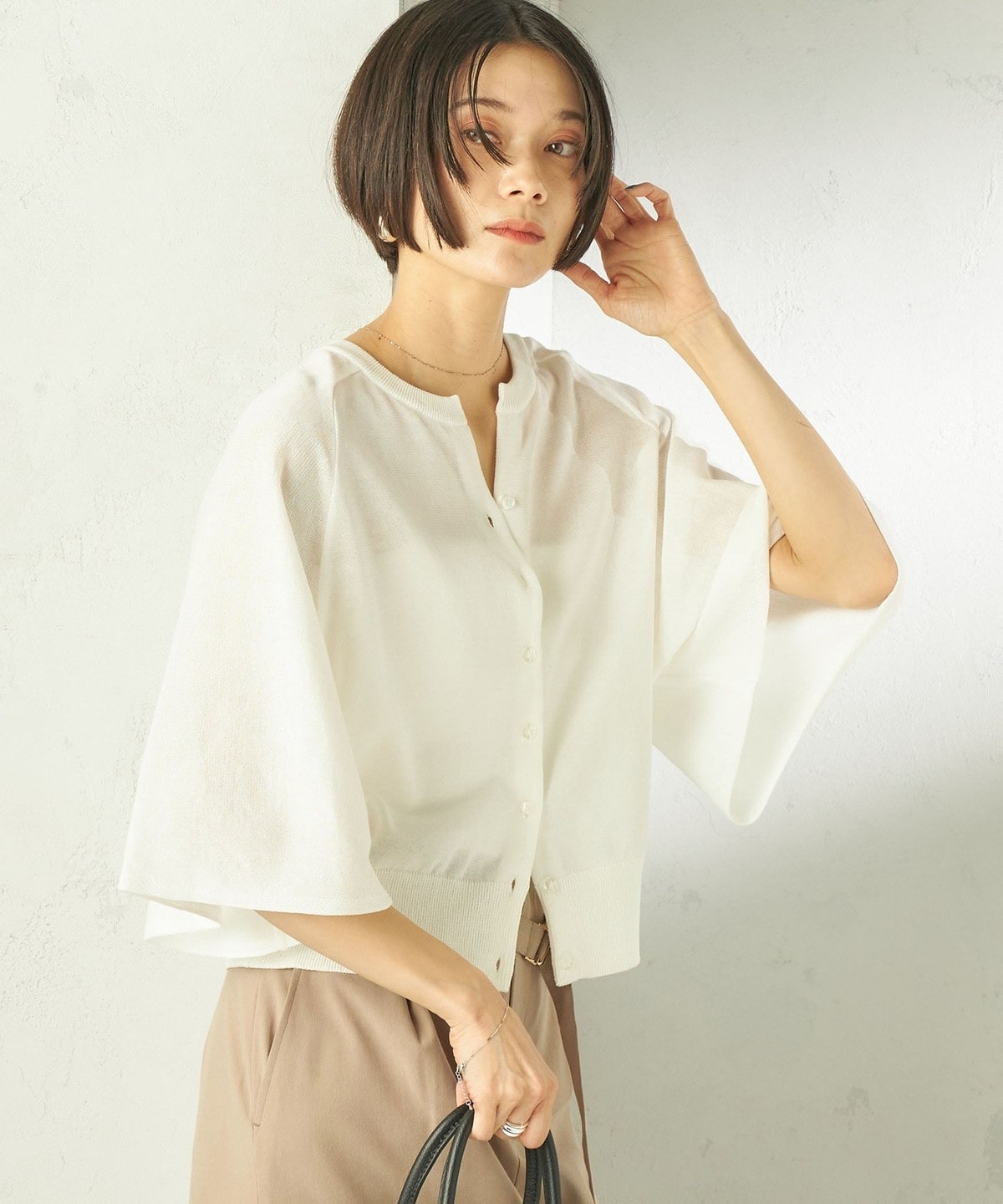 コンパクトな着丈に、広がりのある袖シルエットで一枚でもさりげなく着映えするデザインです。