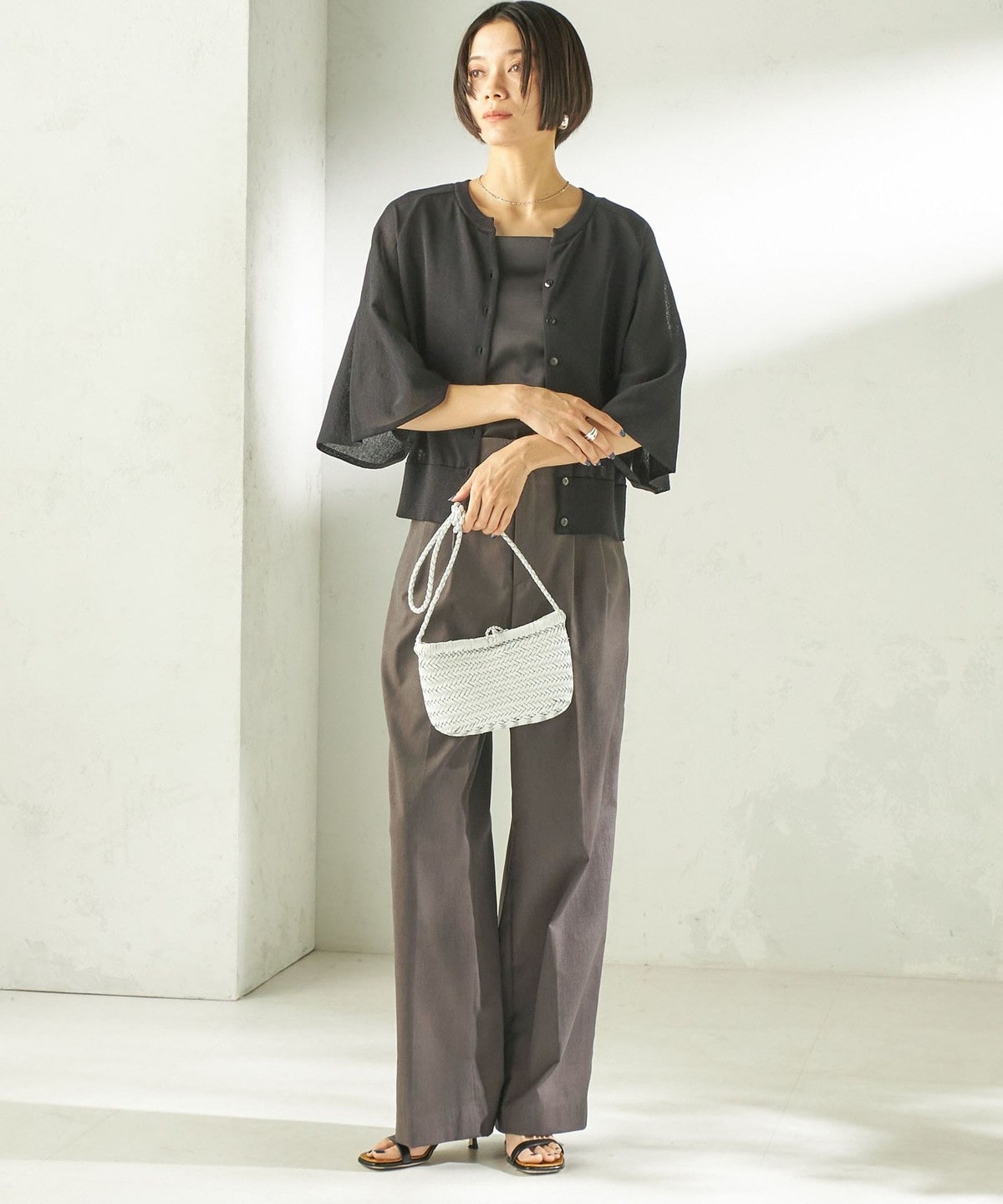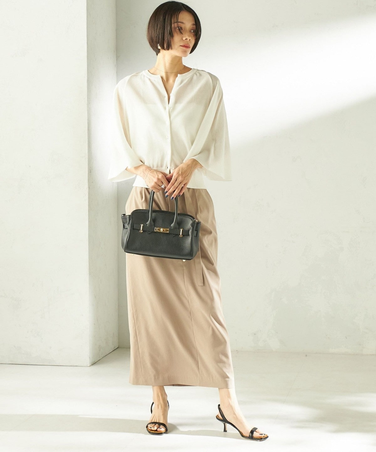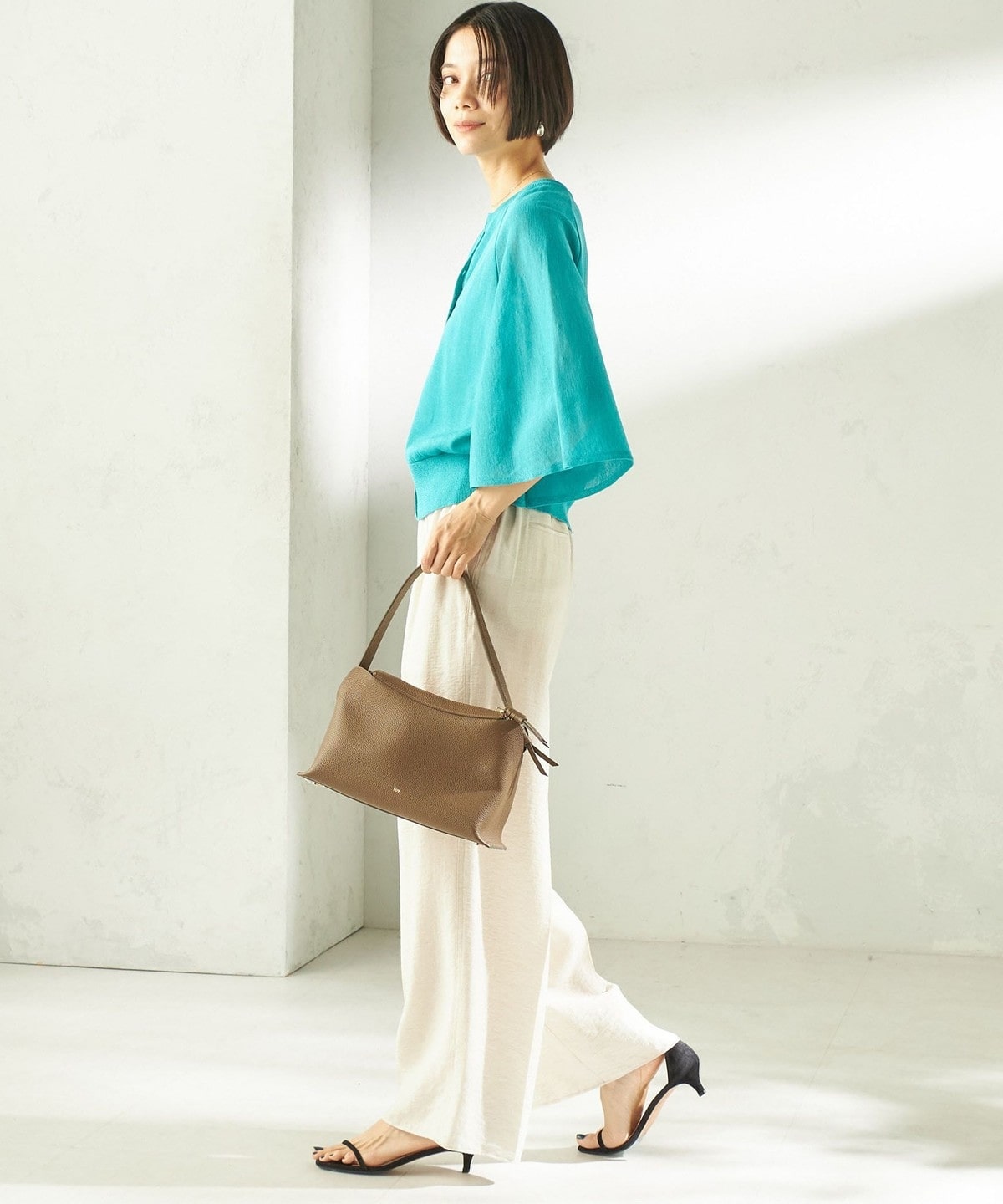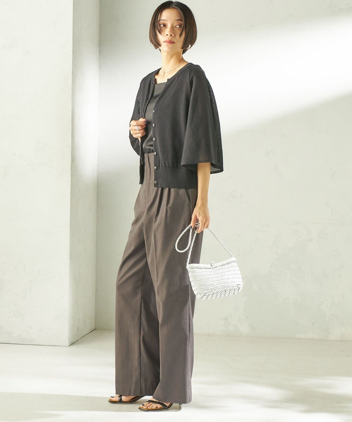 フレアスリーブが映えるため、パンツやタイトスカートなどすっきりとしたボトムとの合わせがおすすめです。