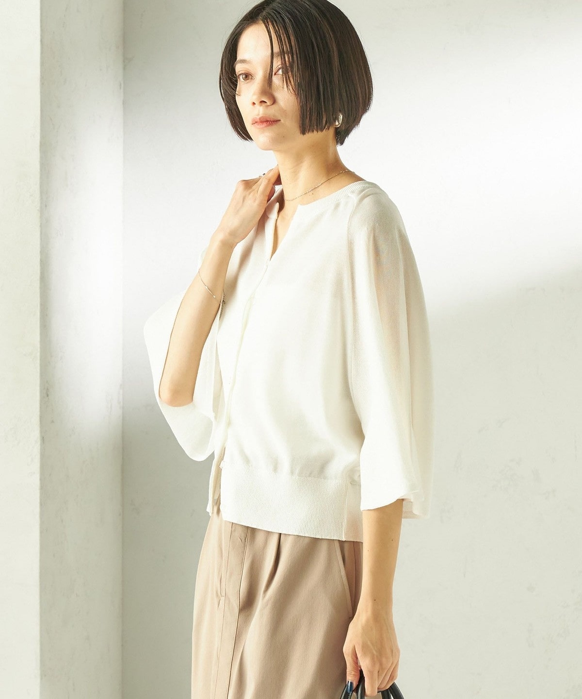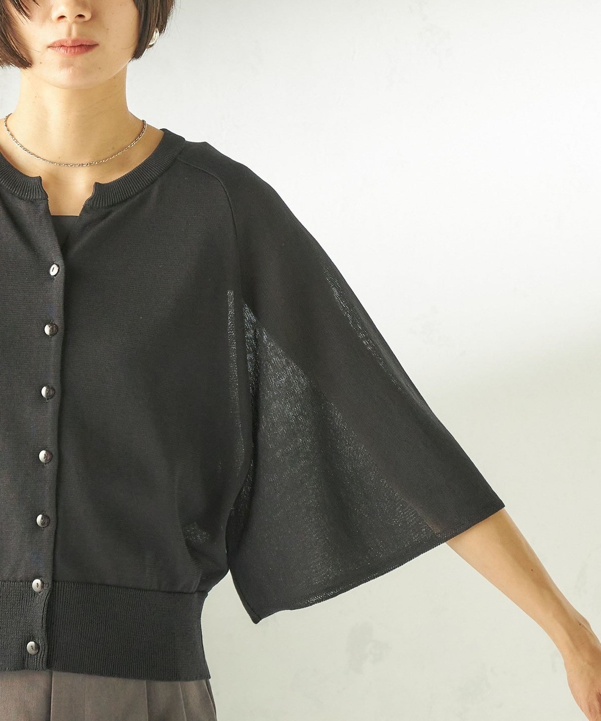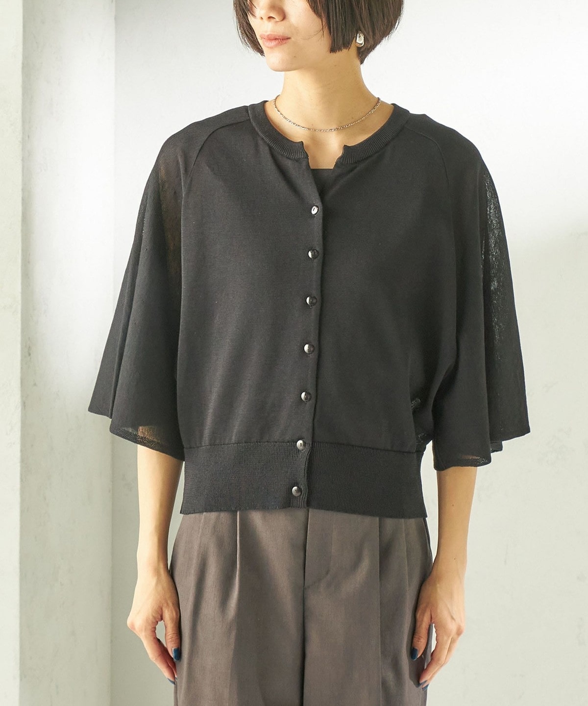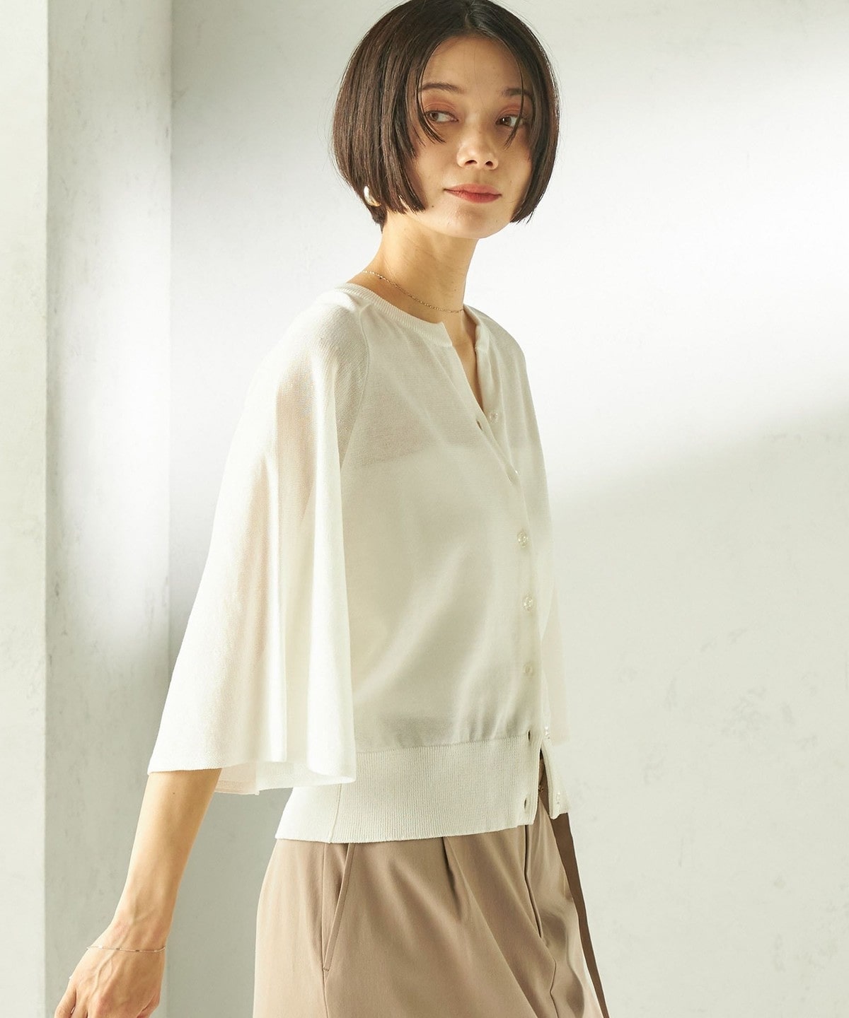 《予約》〈手洗い可能〉綿 フレア スリーブ キーネック カーディガン