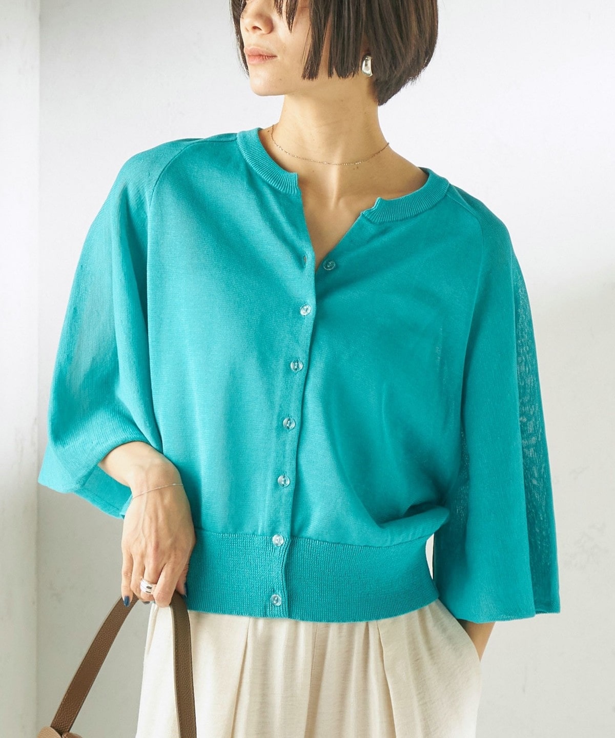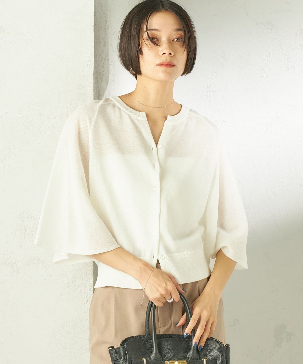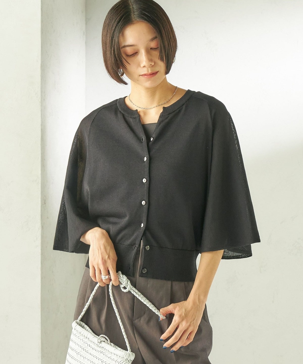 《予約》〈手洗い可能〉綿 フレア スリーブ キーネック カーディガン
