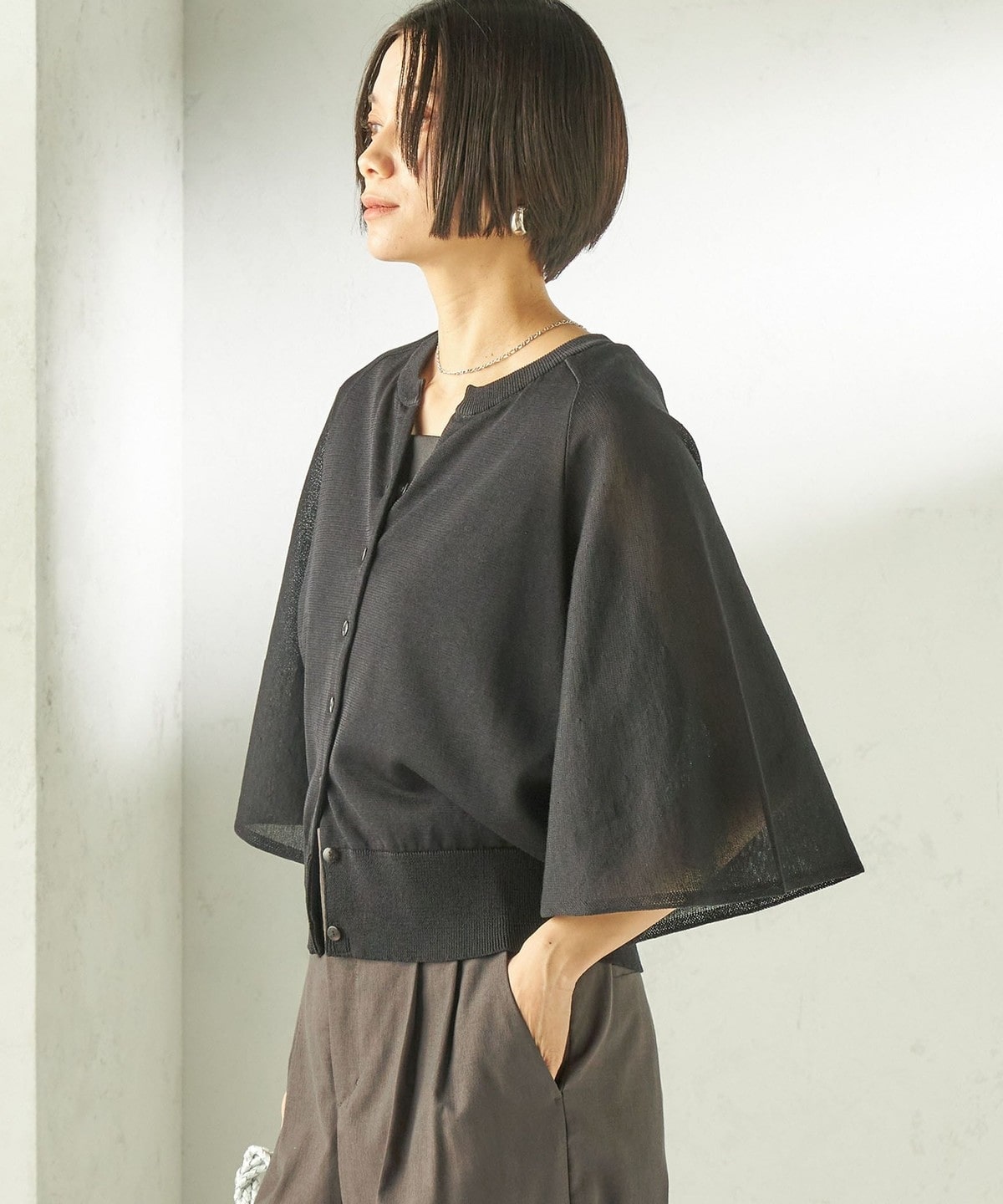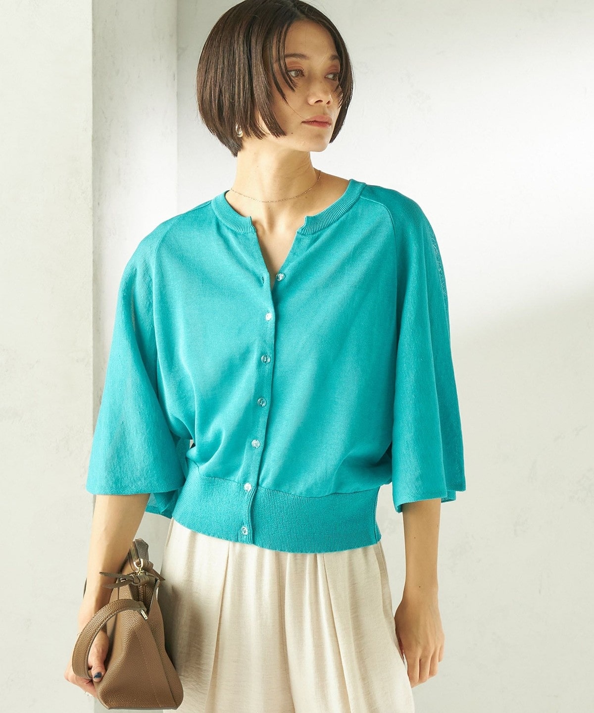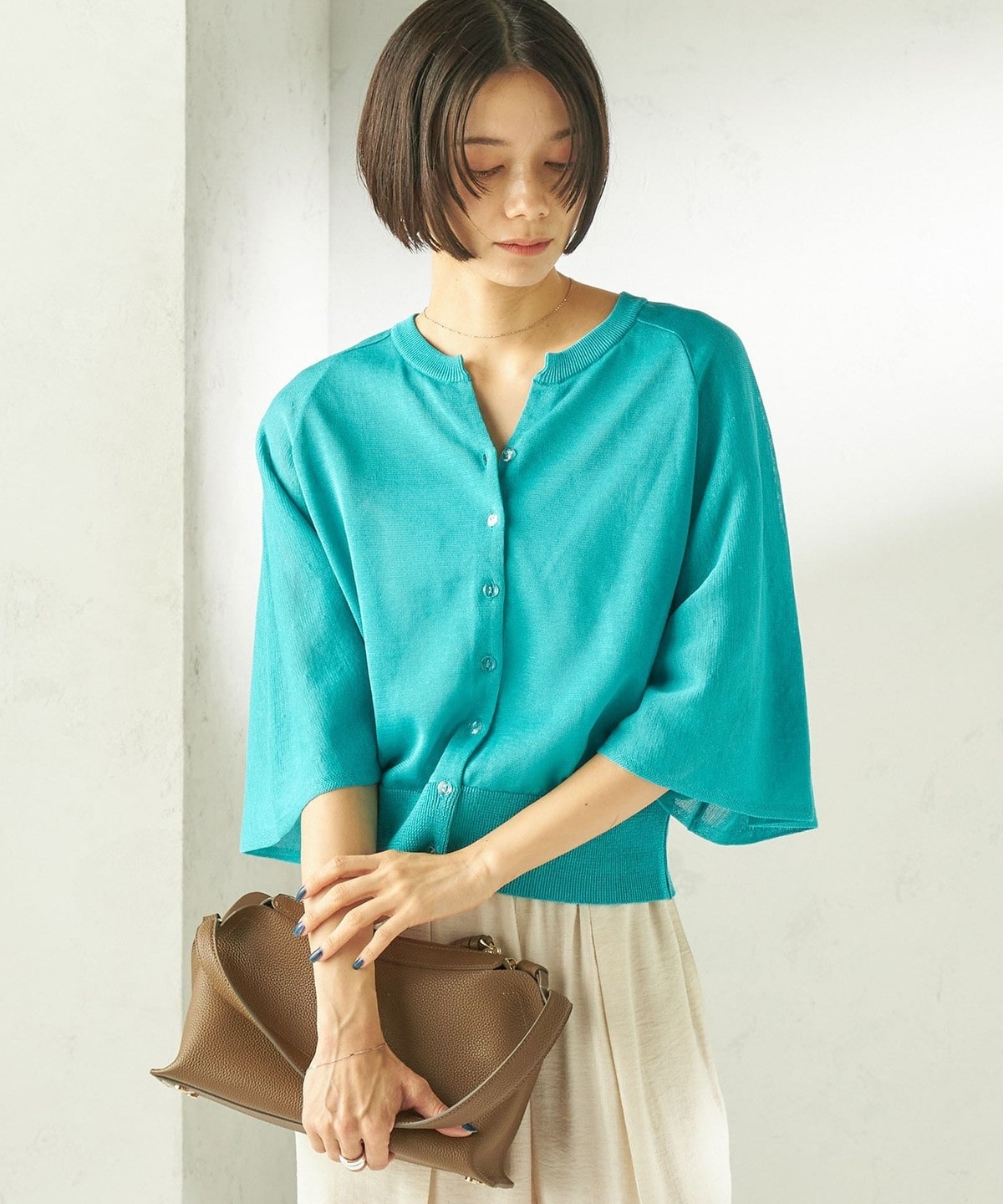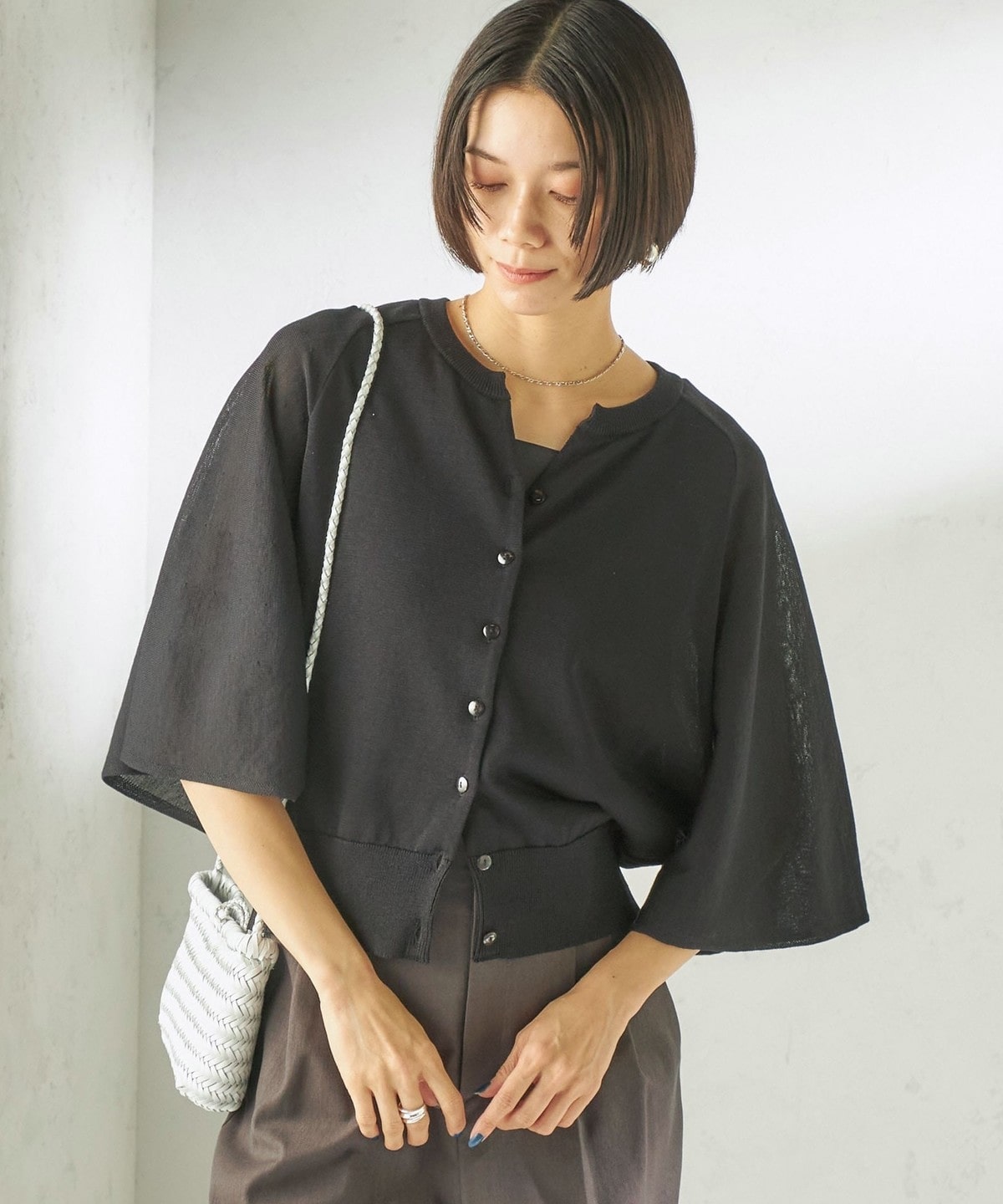 《予約》〈手洗い可能〉綿 フレア スリーブ キーネック カーディガン