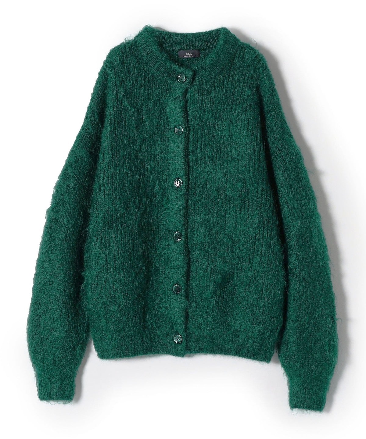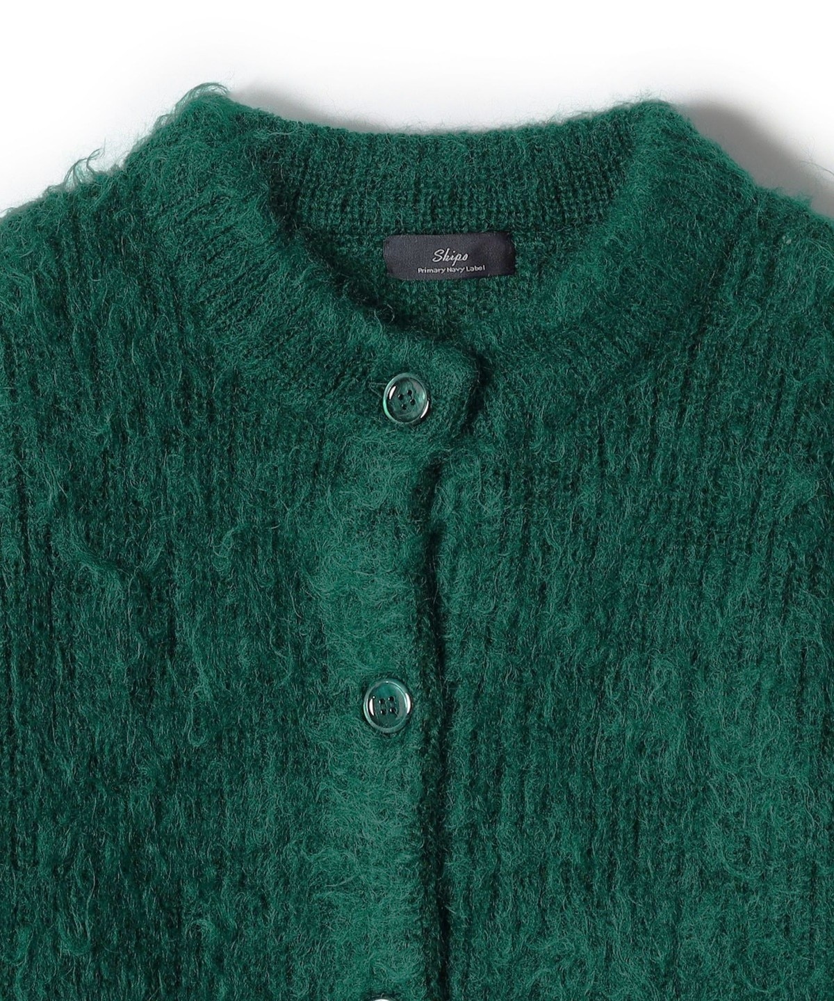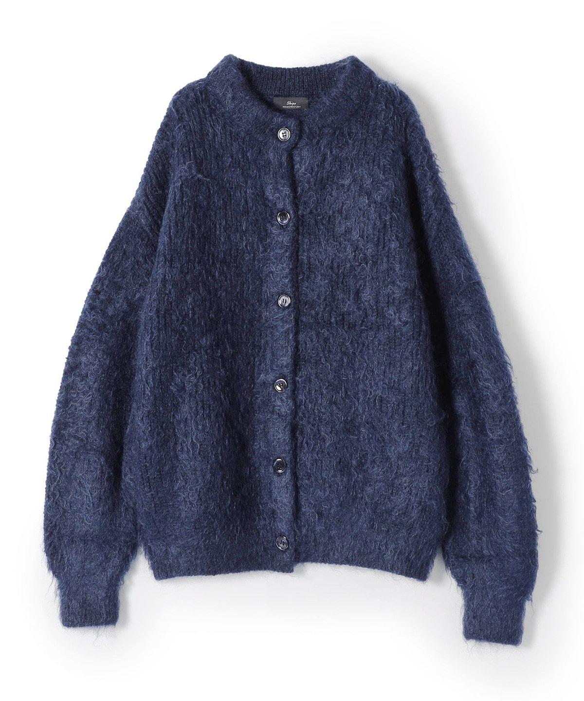 SHIPS Primary Navy Label:シルク カシミヤ クルーネック カーディガン