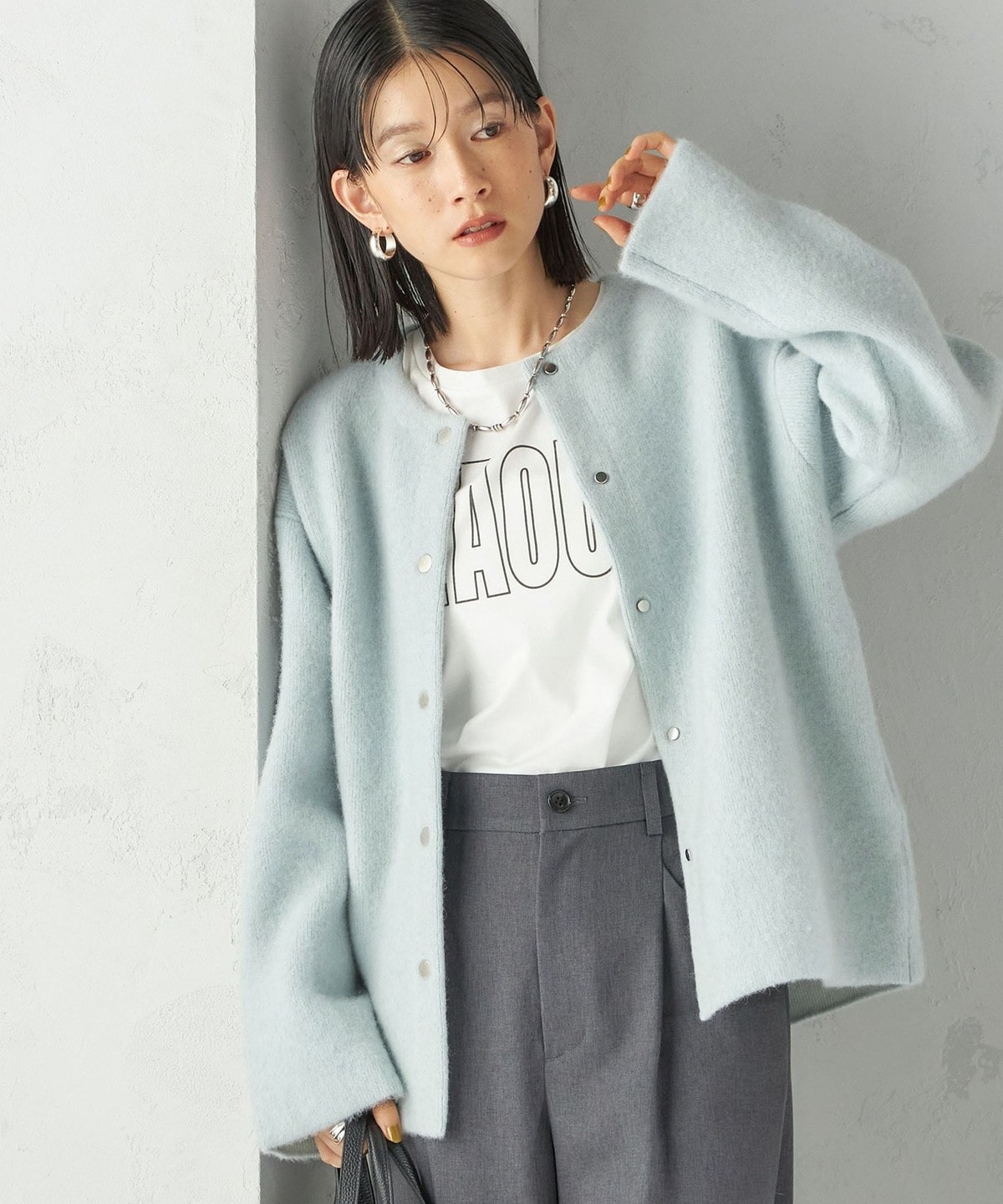ジャケット感覚で気軽に羽織れるニットコートです。