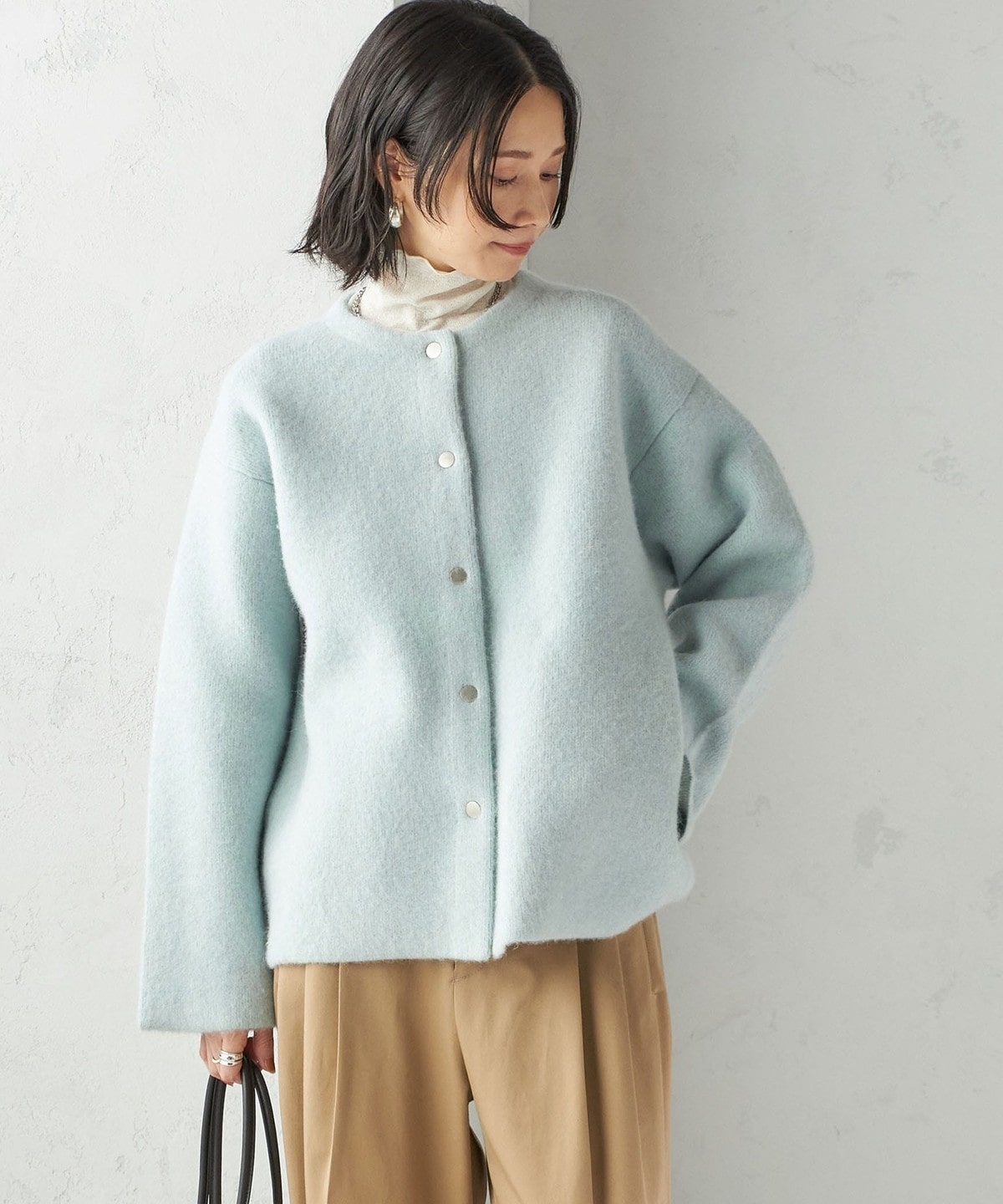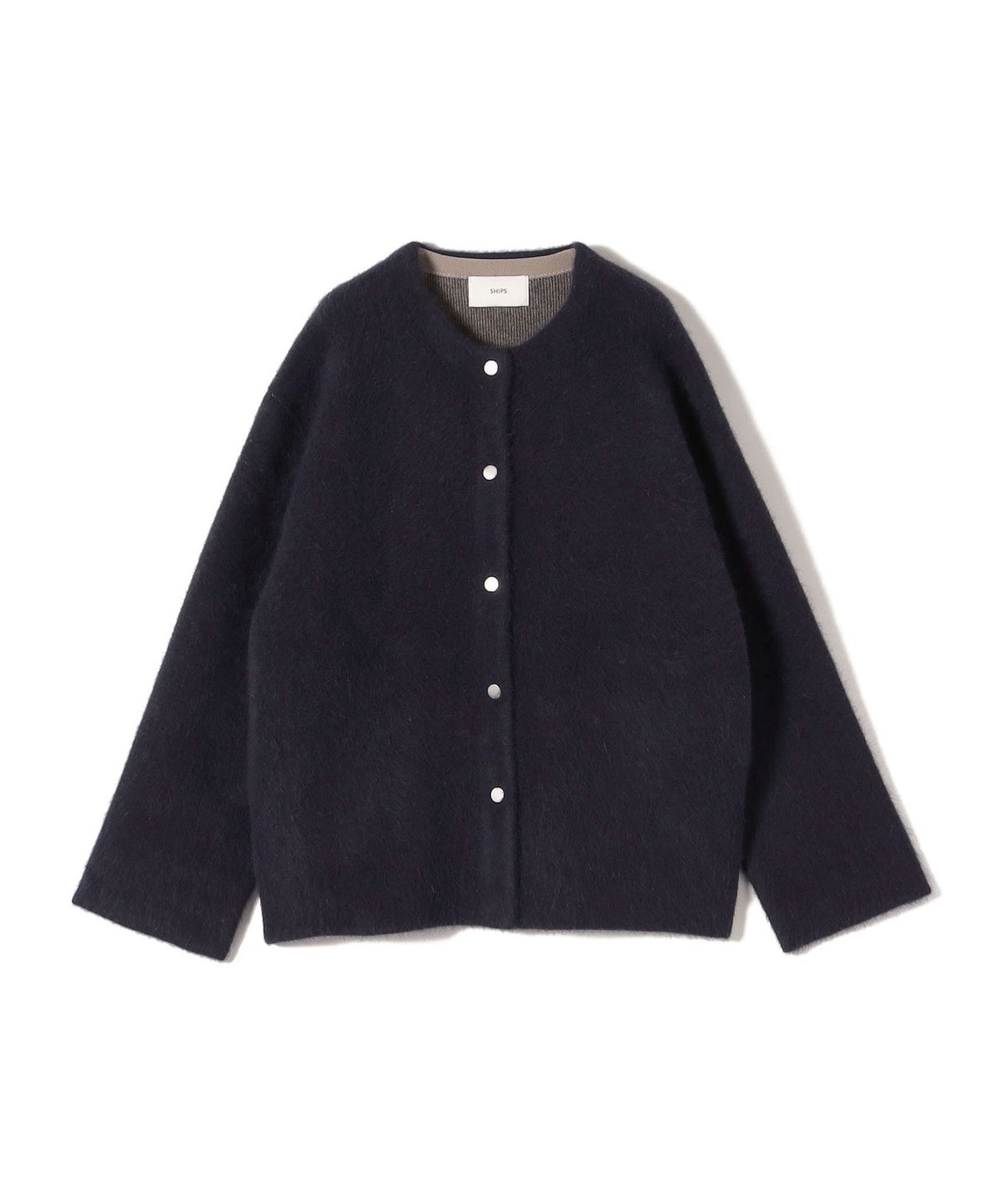 フォックス ブレンド ノーカラー ニット コート