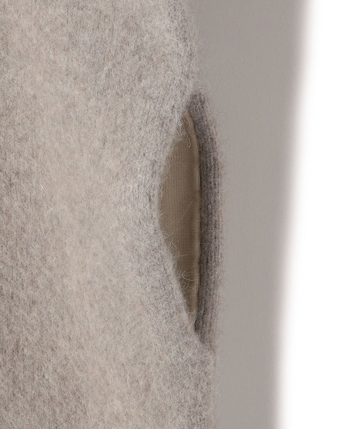裏をポリエステルにすることで軽く型崩れがない素材感に、またインナーにフォックスの毛足を付きづらくする裏地の役割もあります。