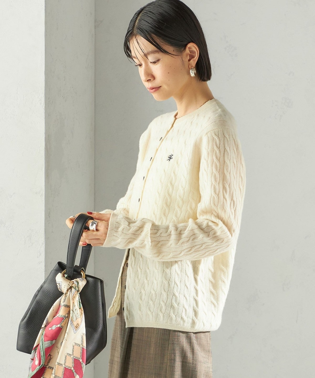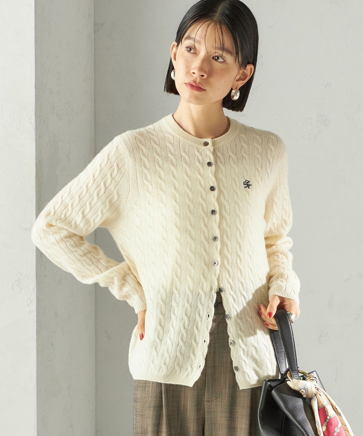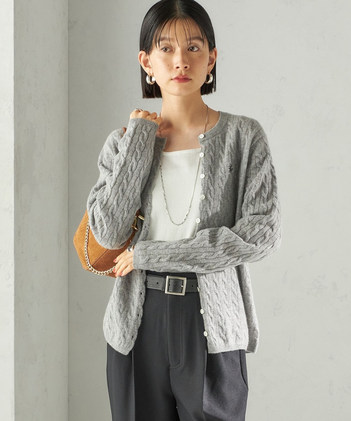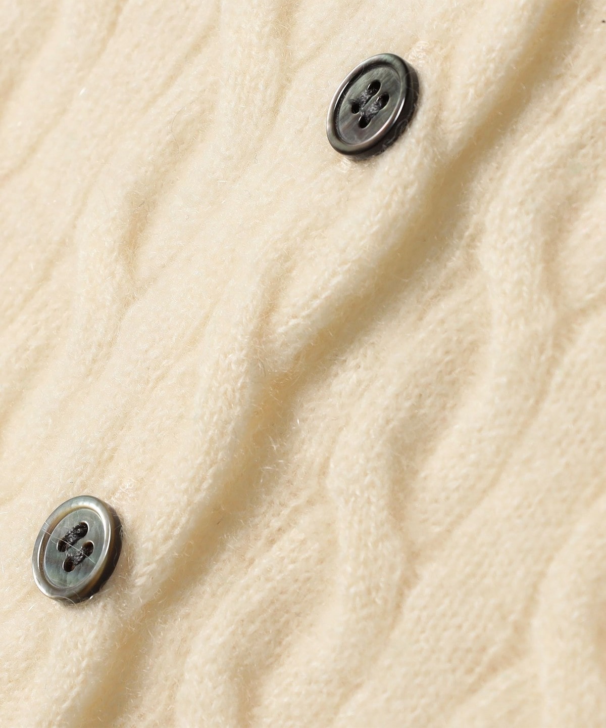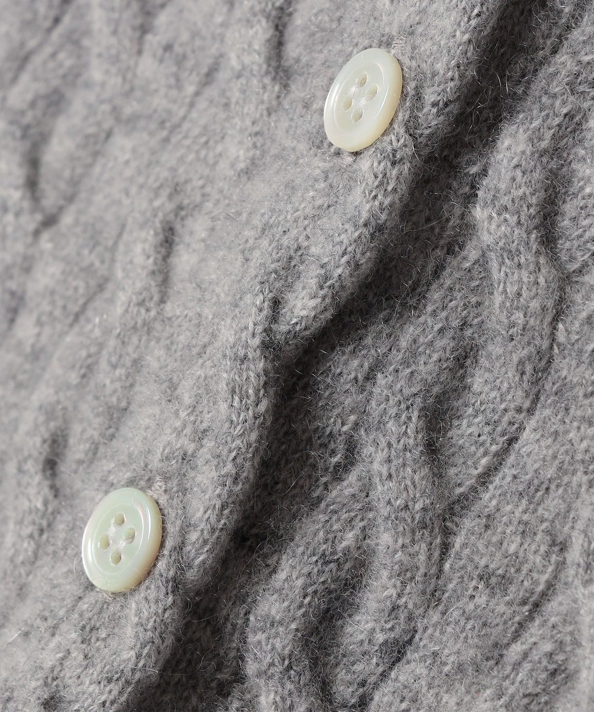 上質なカシミヤ100%のケーブル編みカーディガンです。