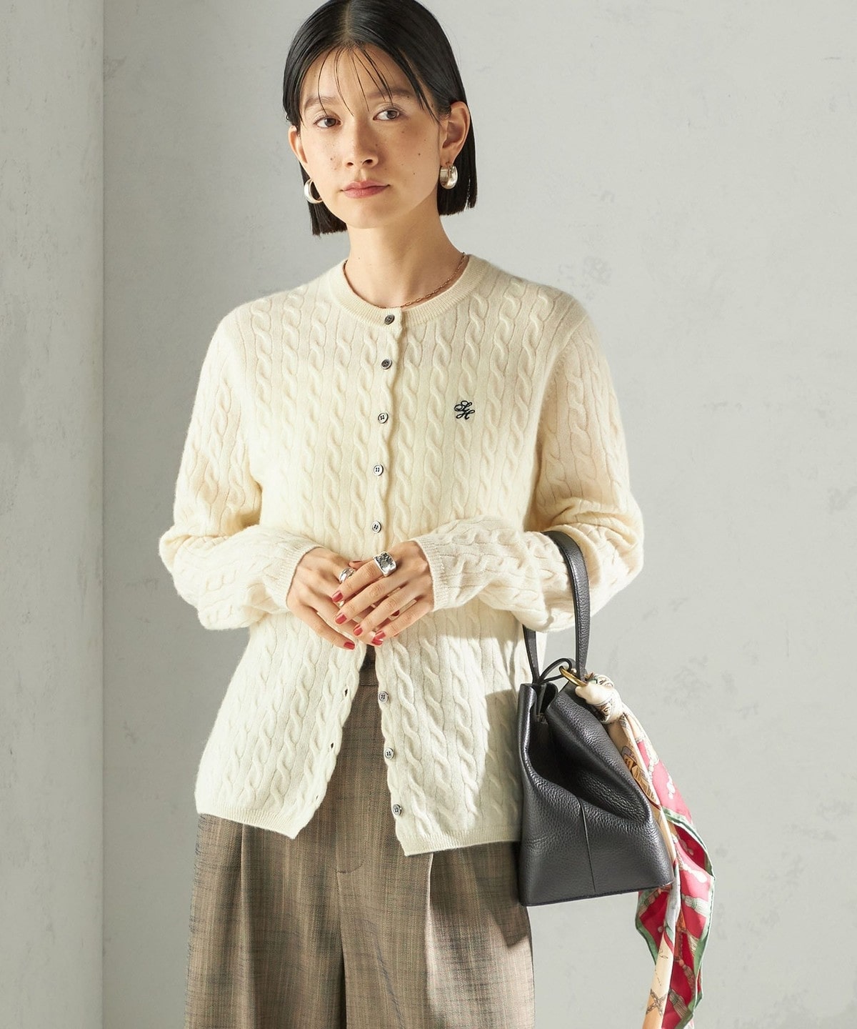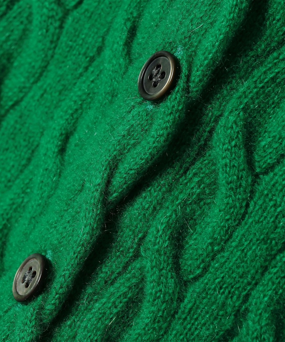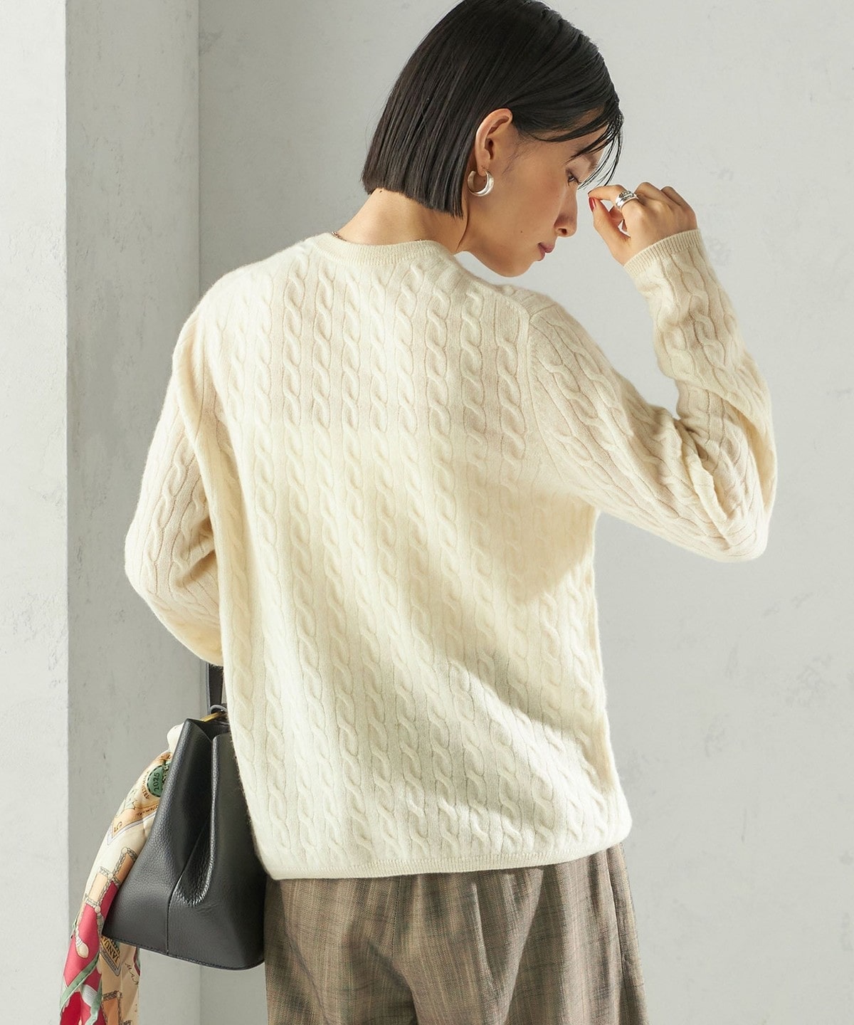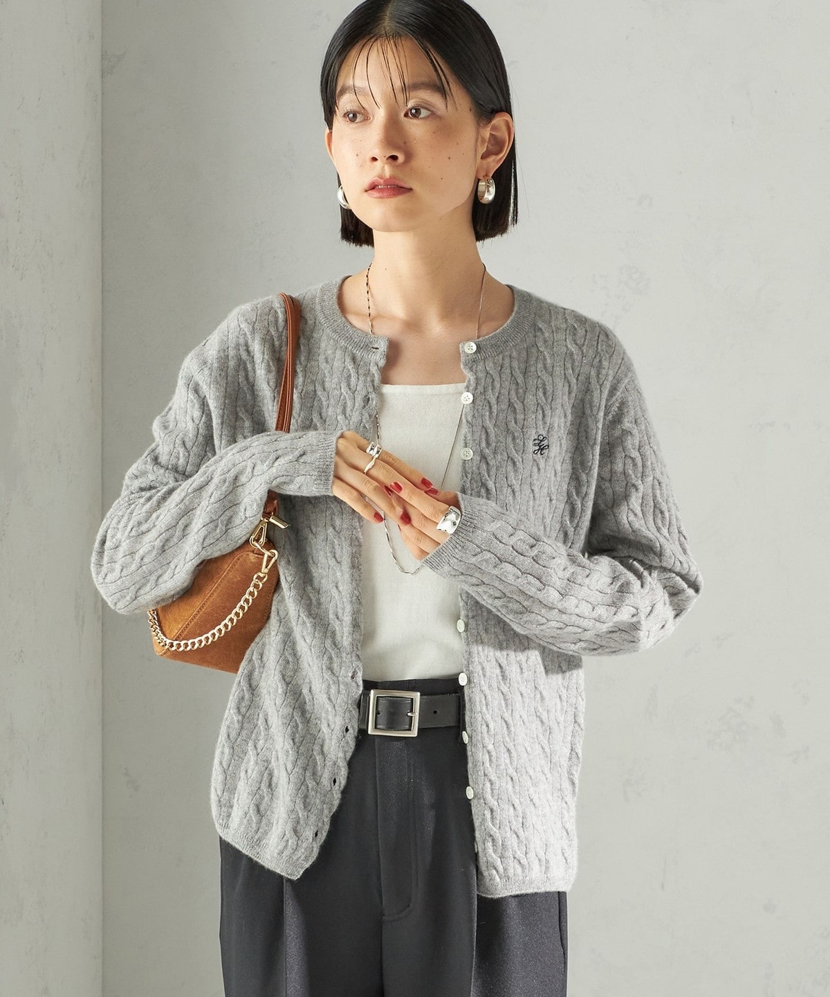上質なカシミヤ100%のケーブル編みカーディガンです。