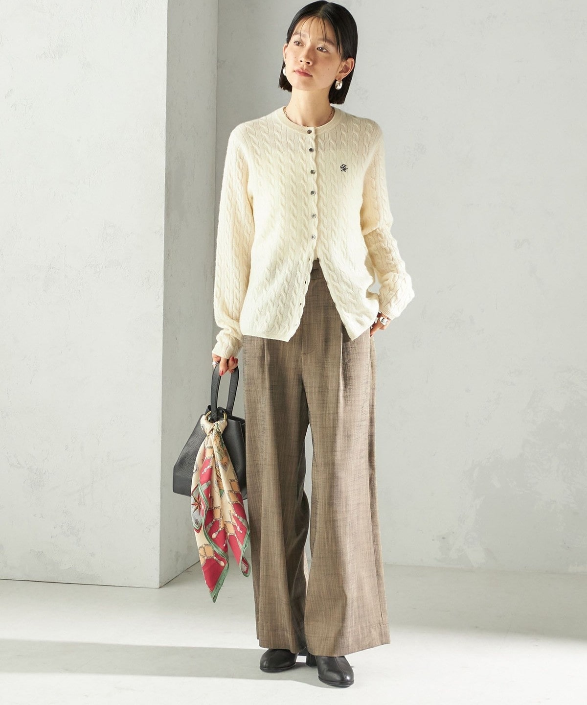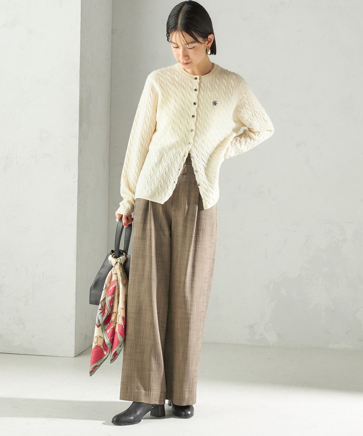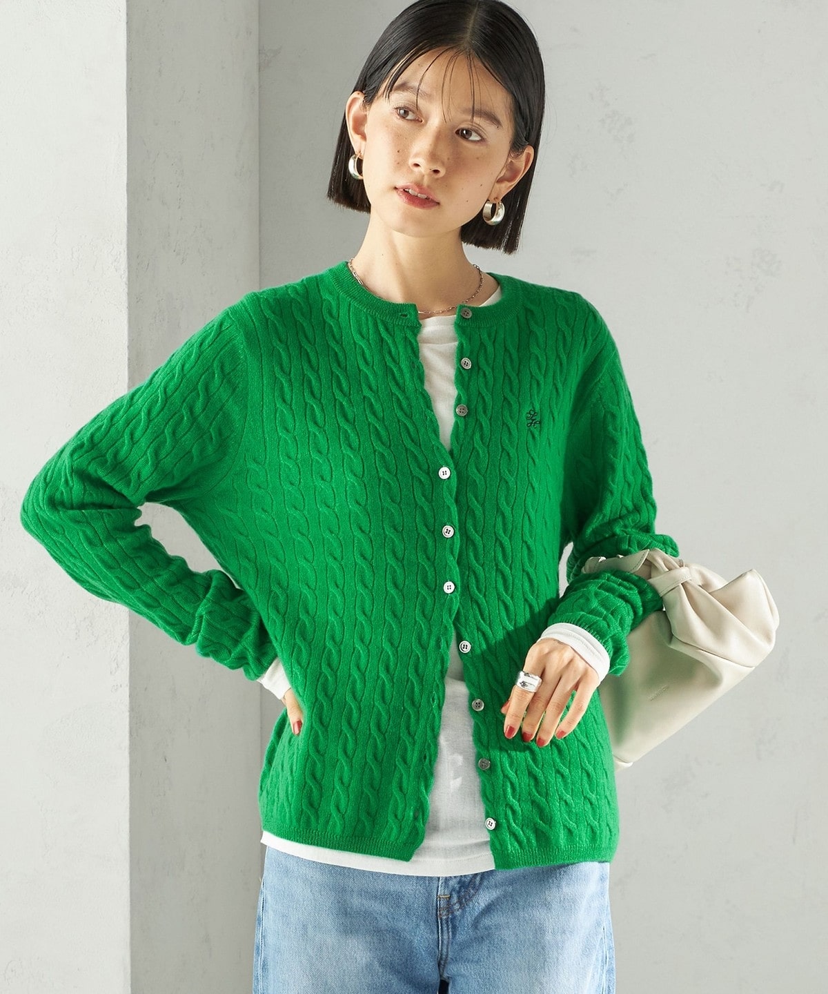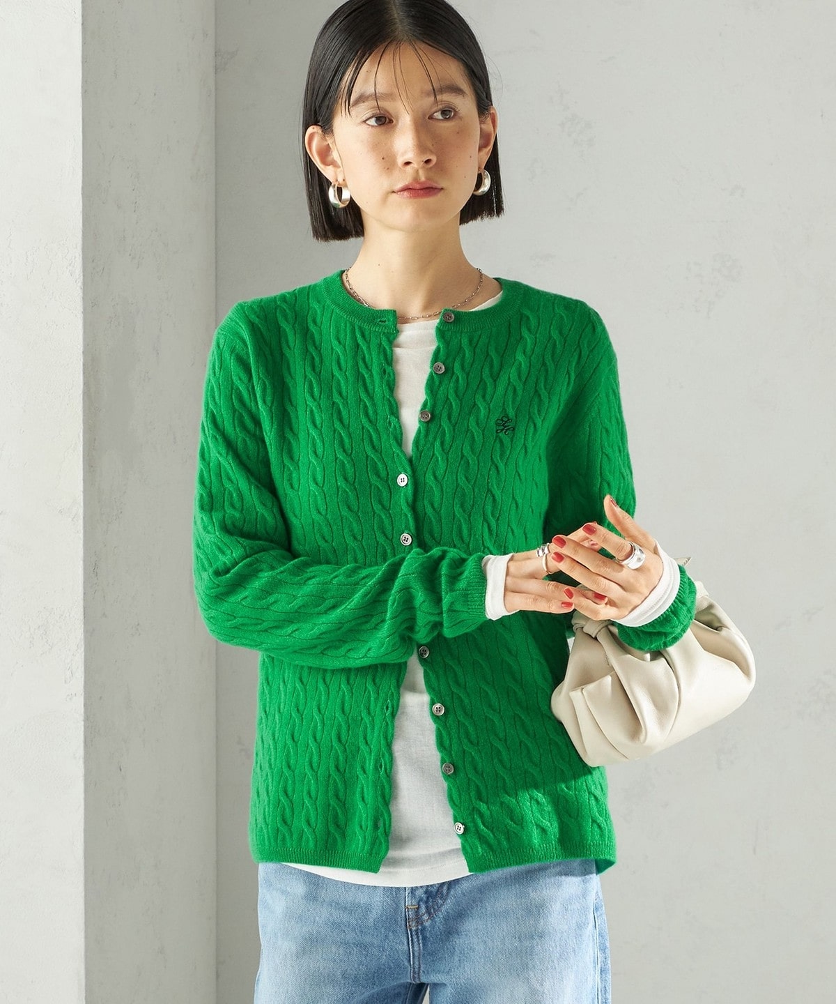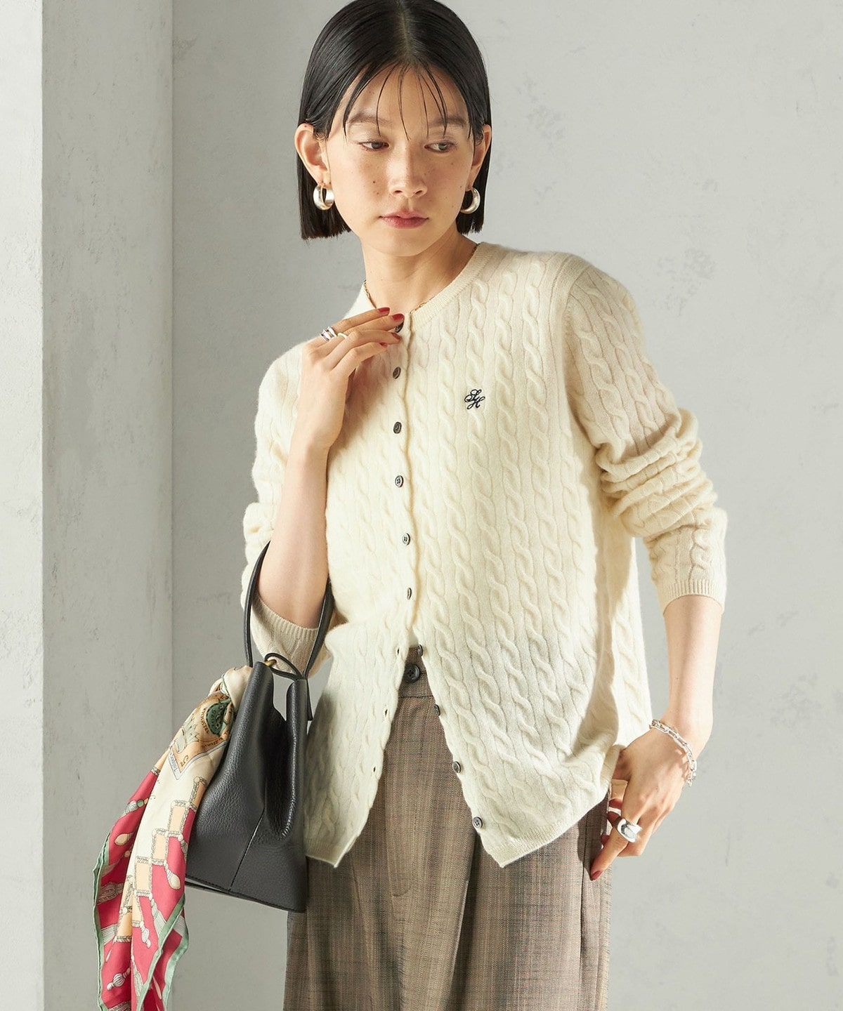 上質なカシミヤ100%のケーブル編みカーディガンです。