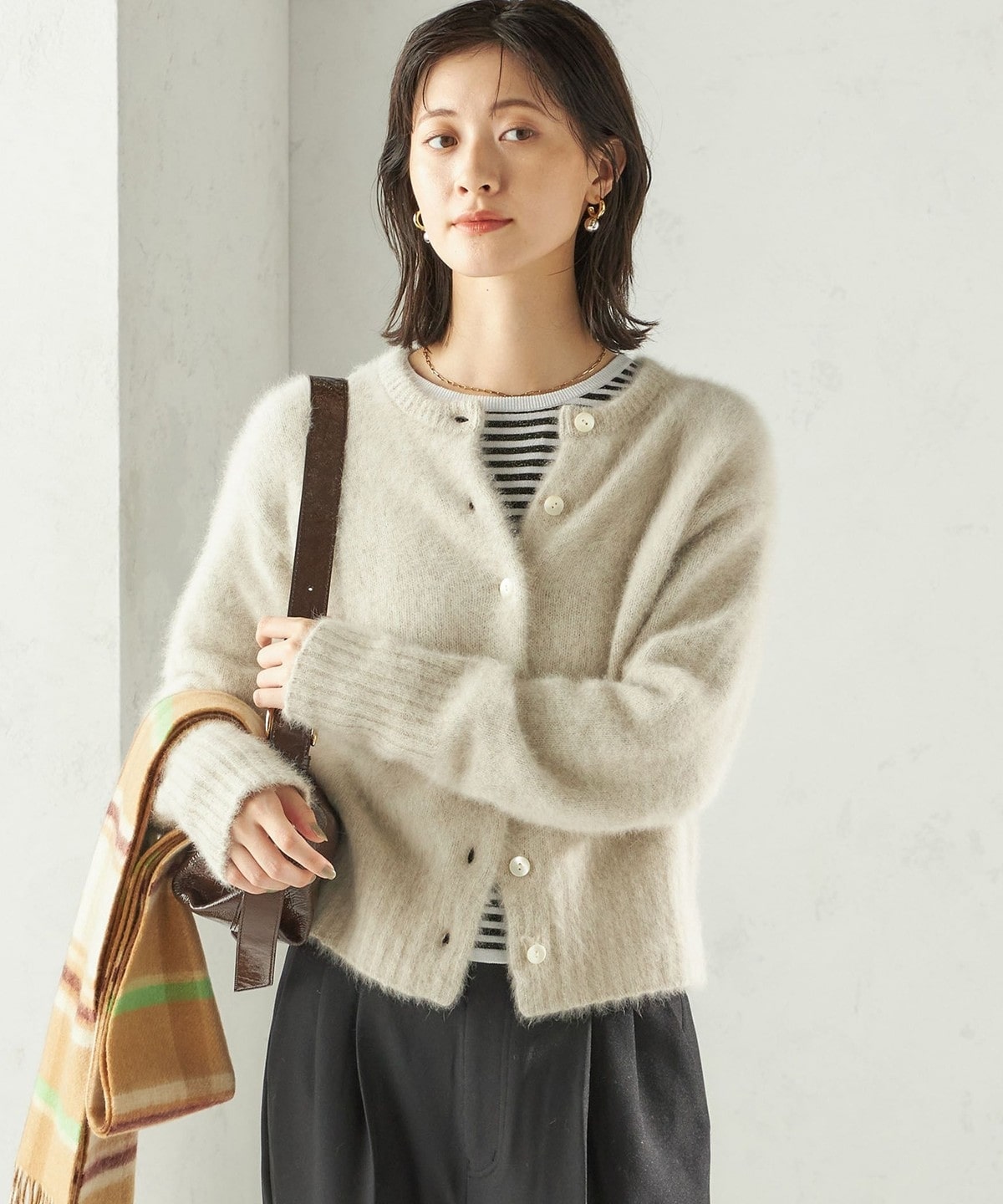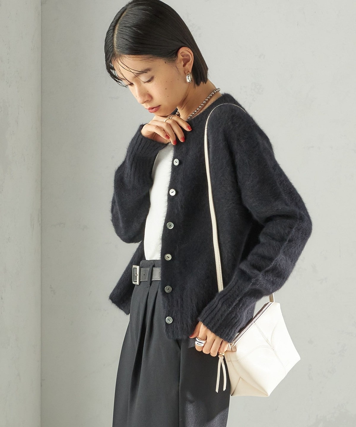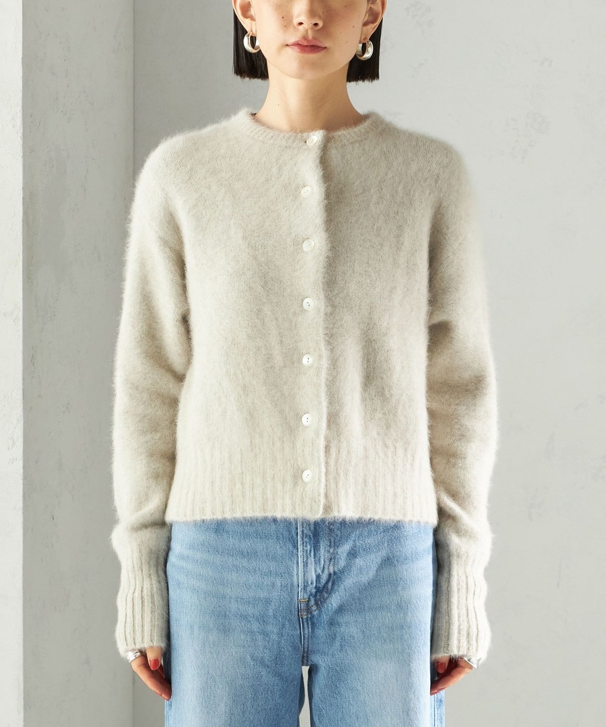 ミドルゲージでふわふわ素材のベーシックなクルーネックニットカーディガンです。