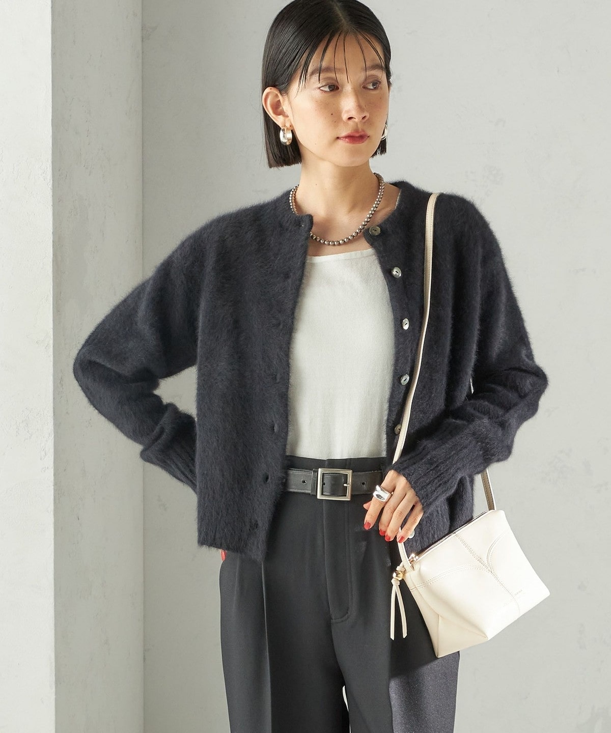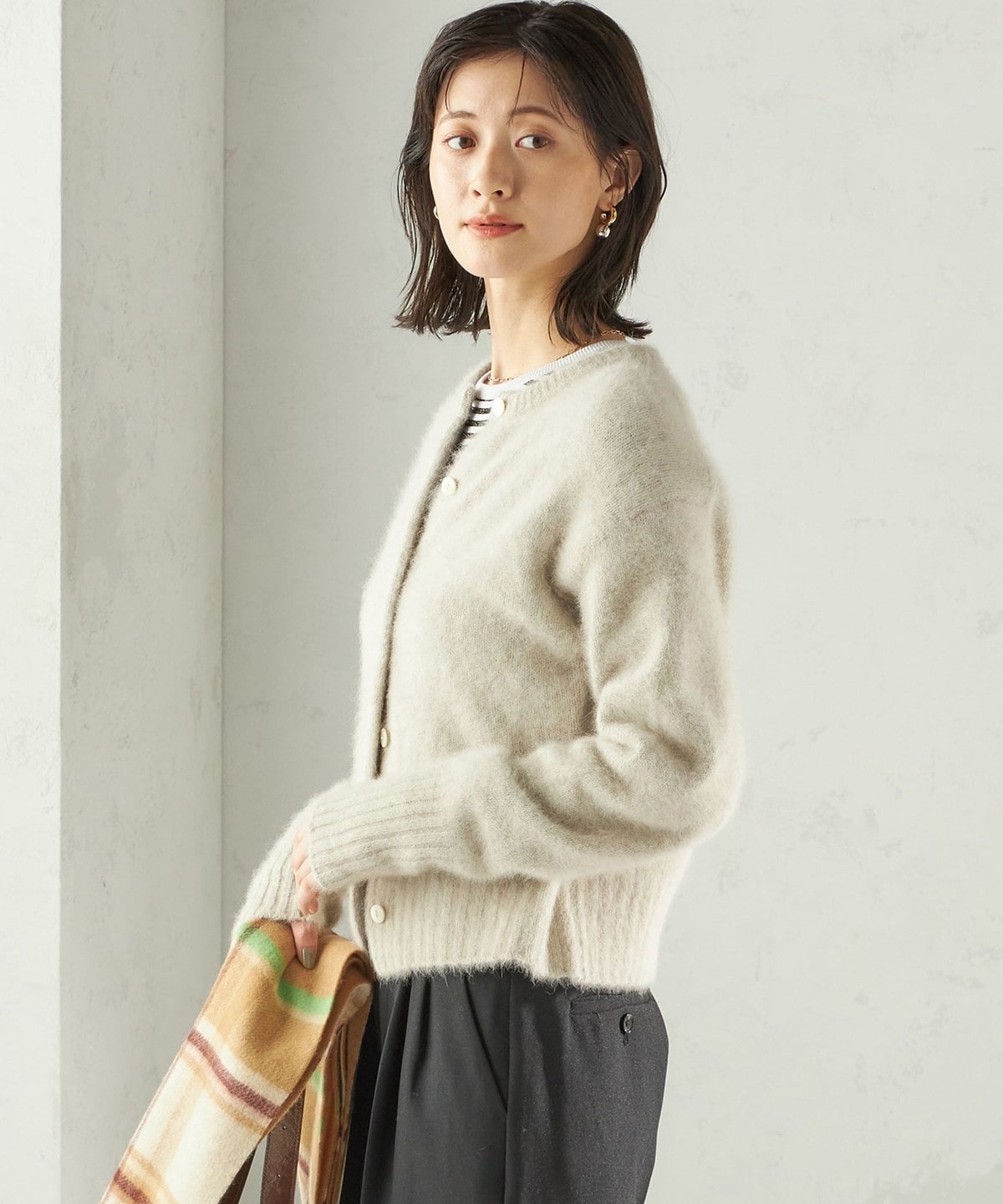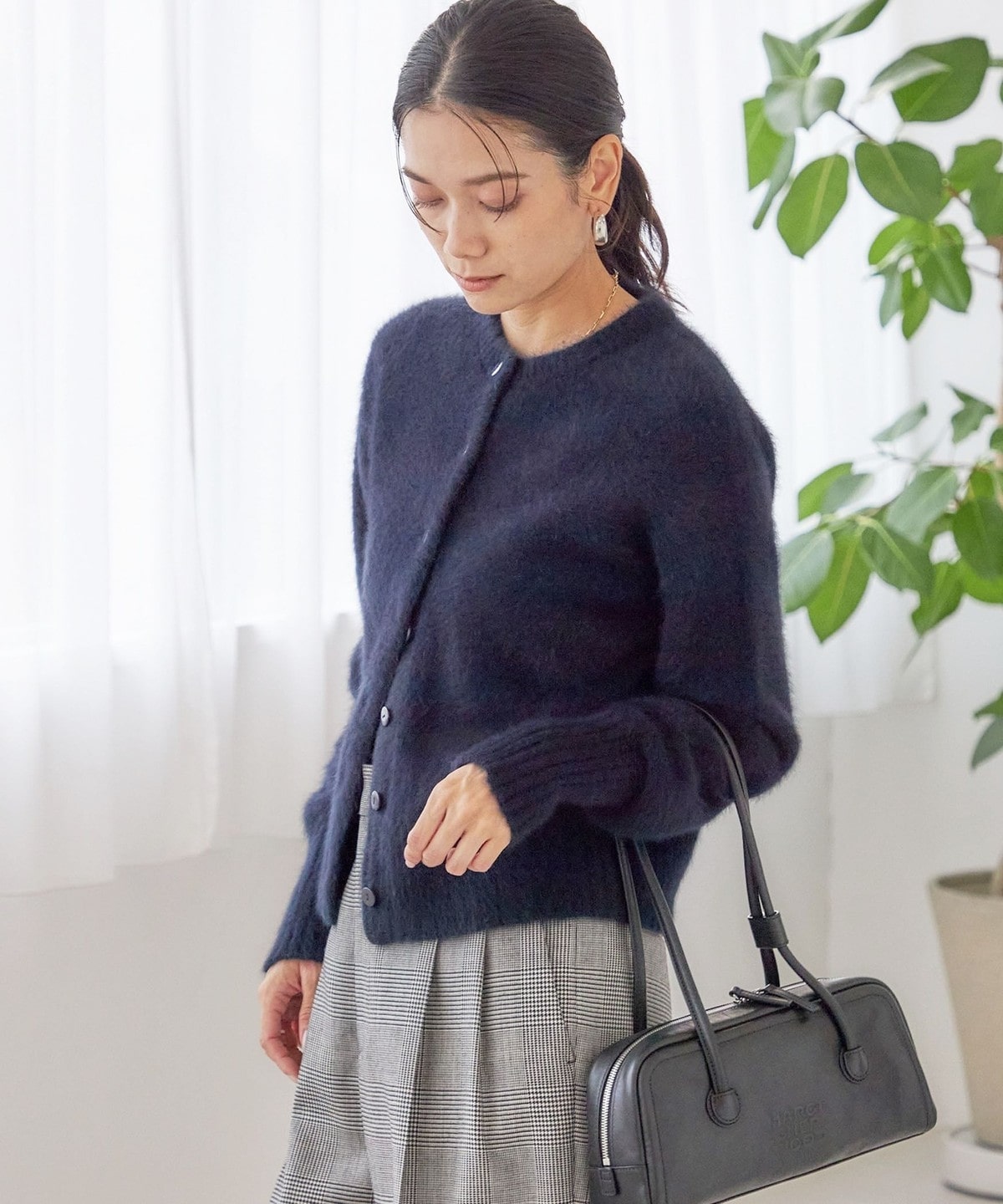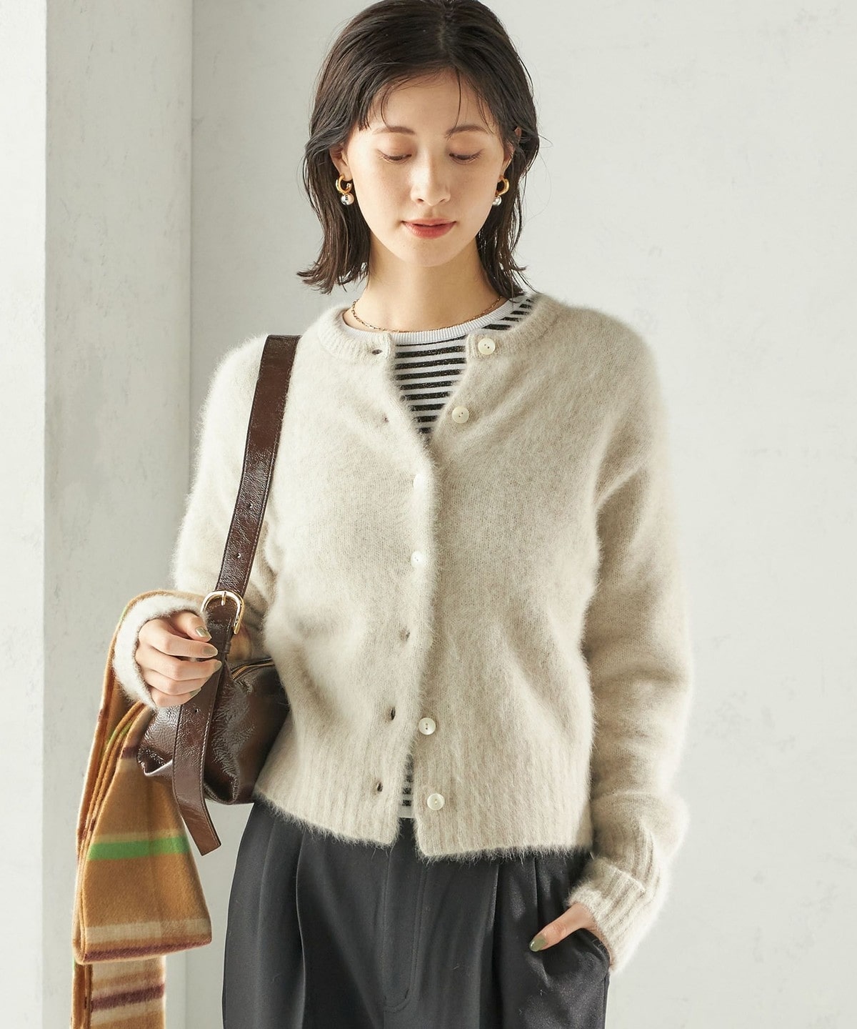 ミドルゲージでふわふわ素材のベーシックなクルーネックニットカーディガンです。