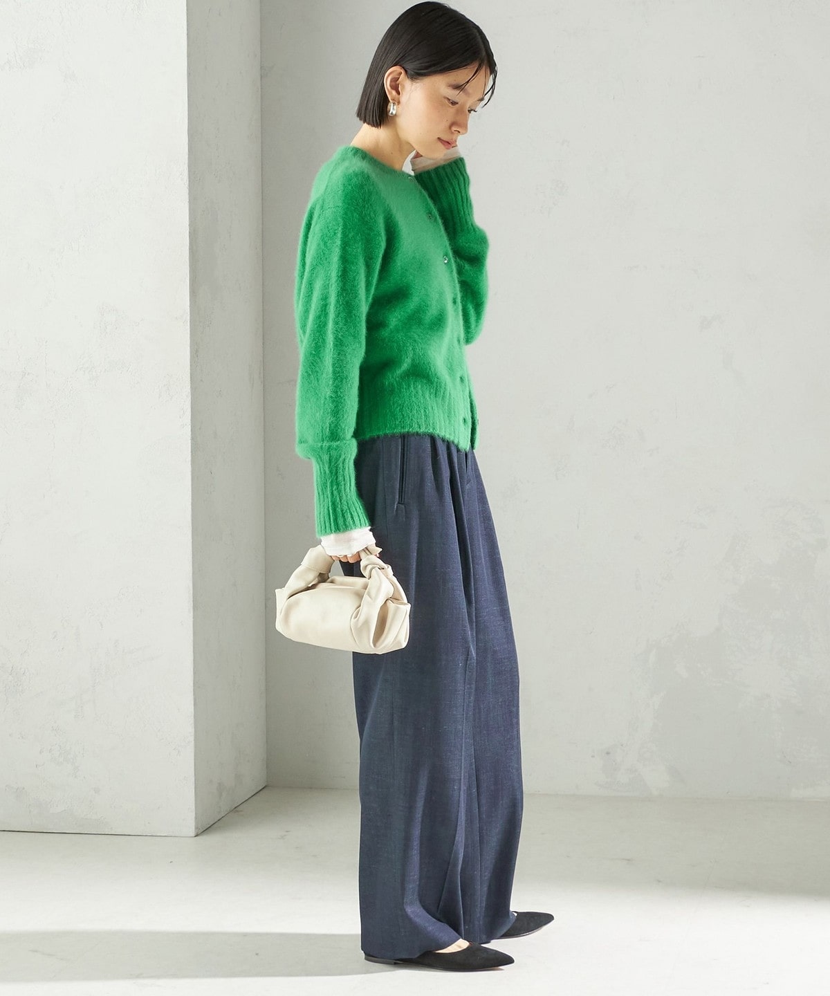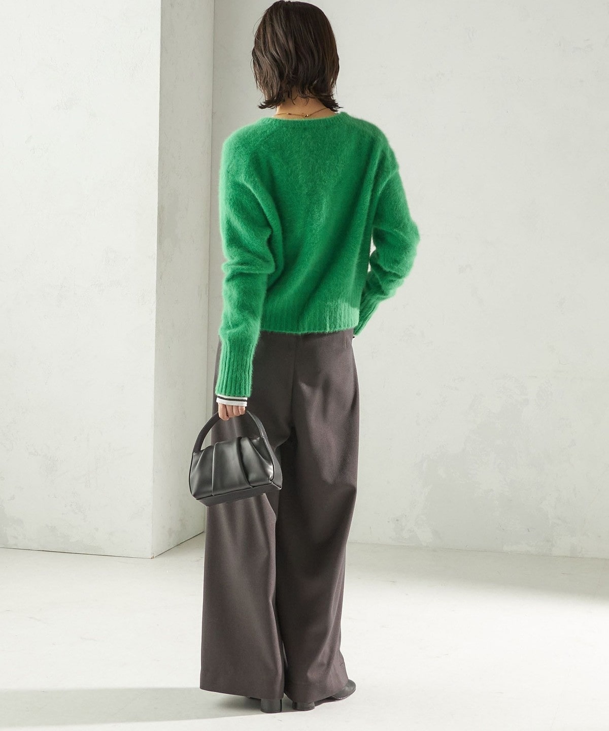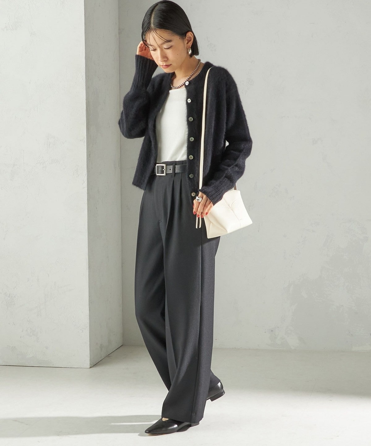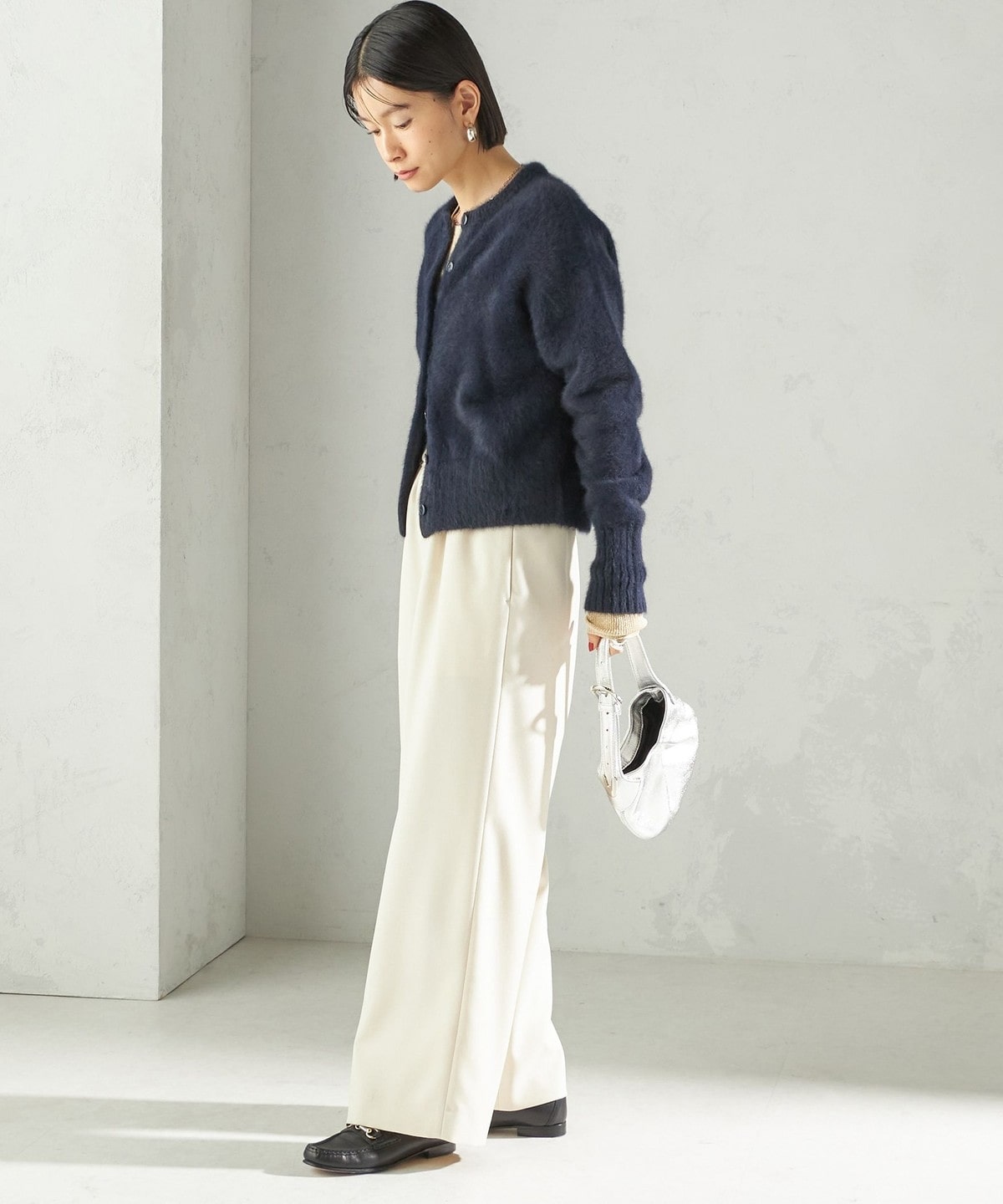 癖のない編地なので、ボトムのテイストを選ばない着回しの効く一着です。