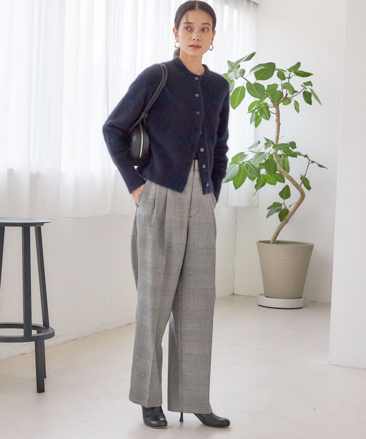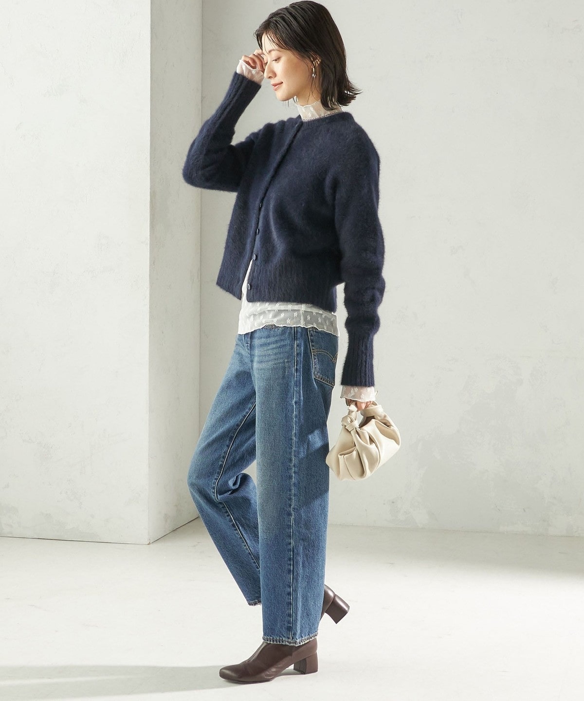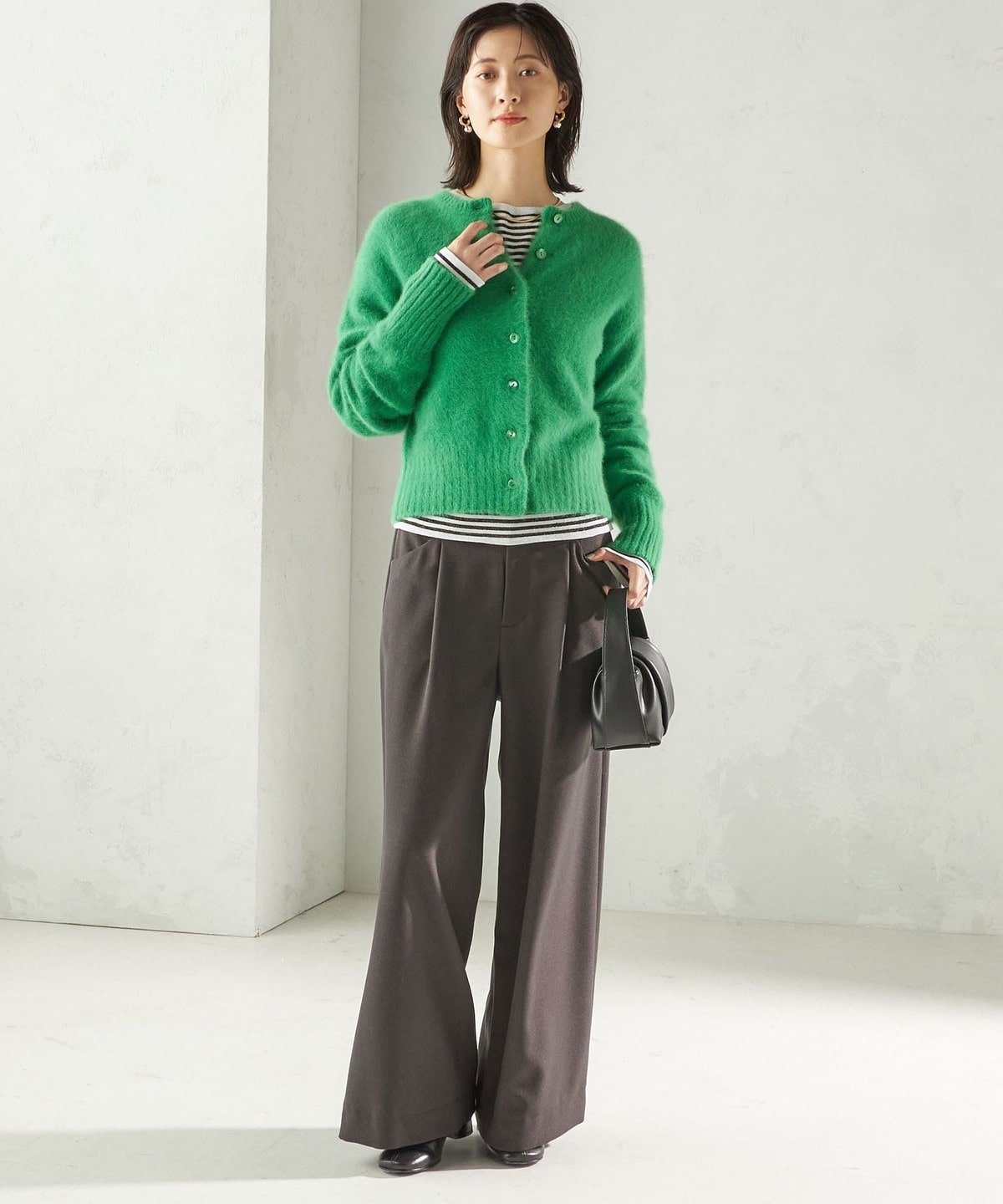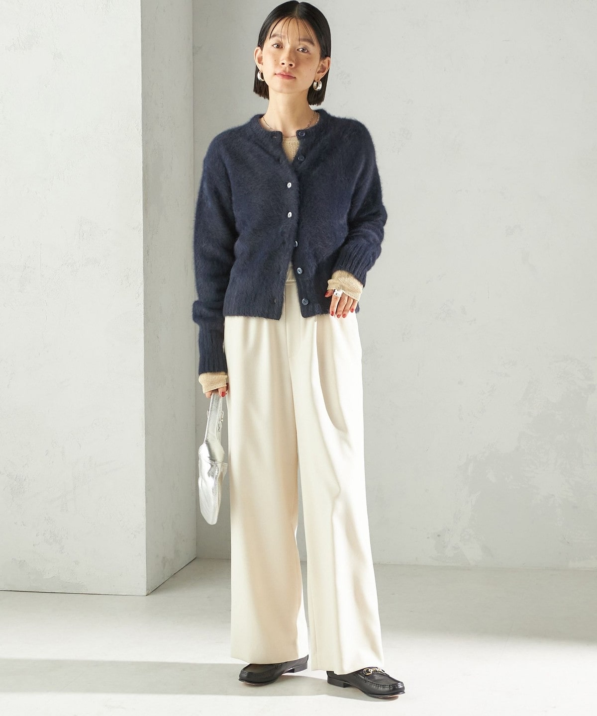 癖のない編地なので、ボトムのテイストを選ばない着回しの効く一着です。