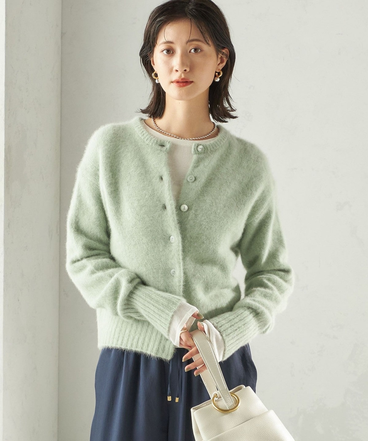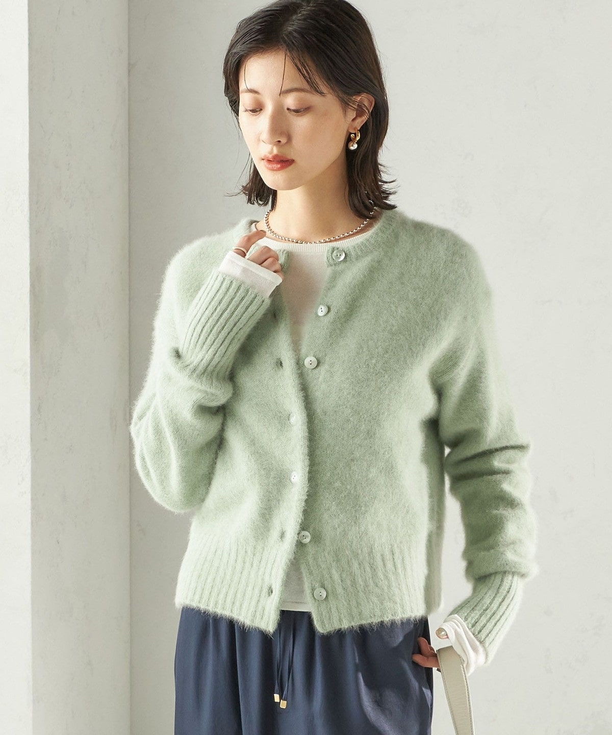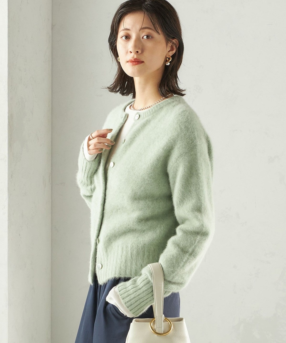 4. 【一部WEB限定】〈手洗い可能〉フォックス クルーネック ニット カーディガン ライトグリーン