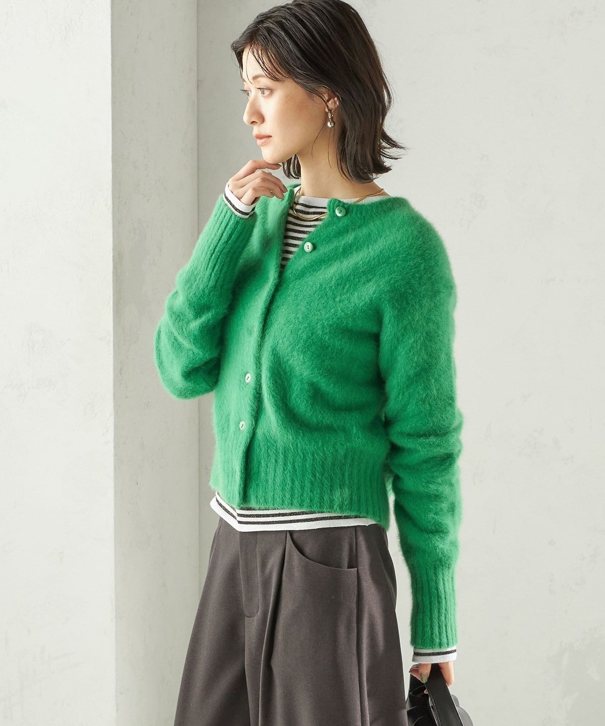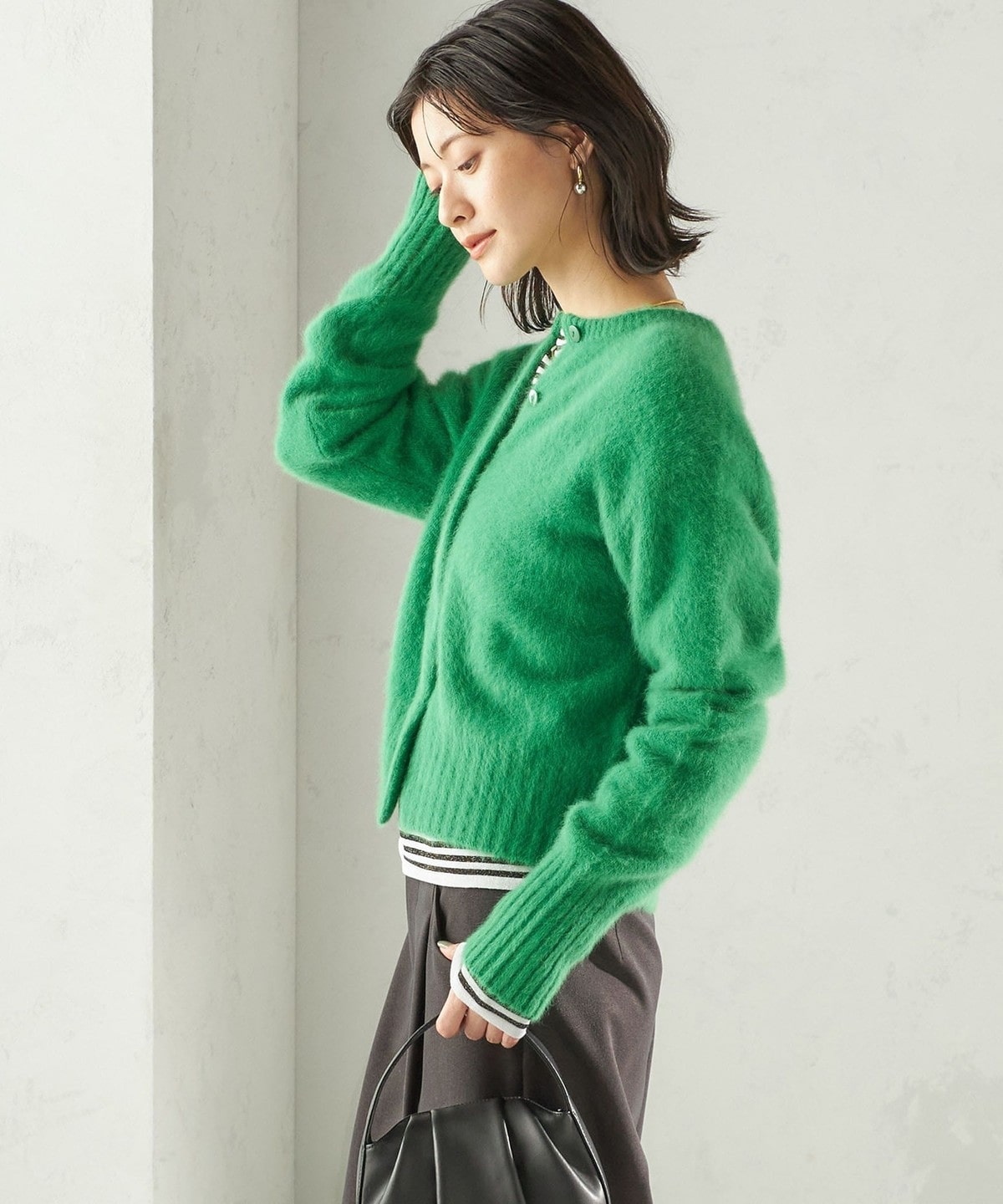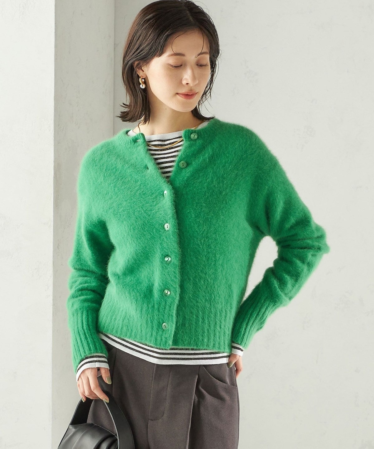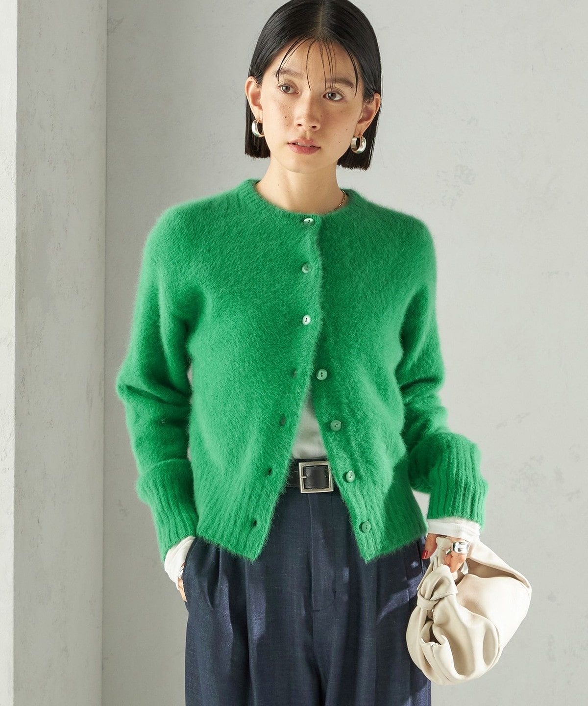 4. 【一部WEB限定】〈手洗い可能〉フォックス クルーネック ニット カーディガン ライトグリーン