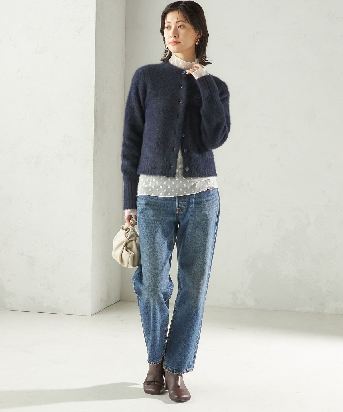 5. 【一部WEB限定】〈手洗い可能〉フォックス クルーネック ニット カーディガン ネイビー
