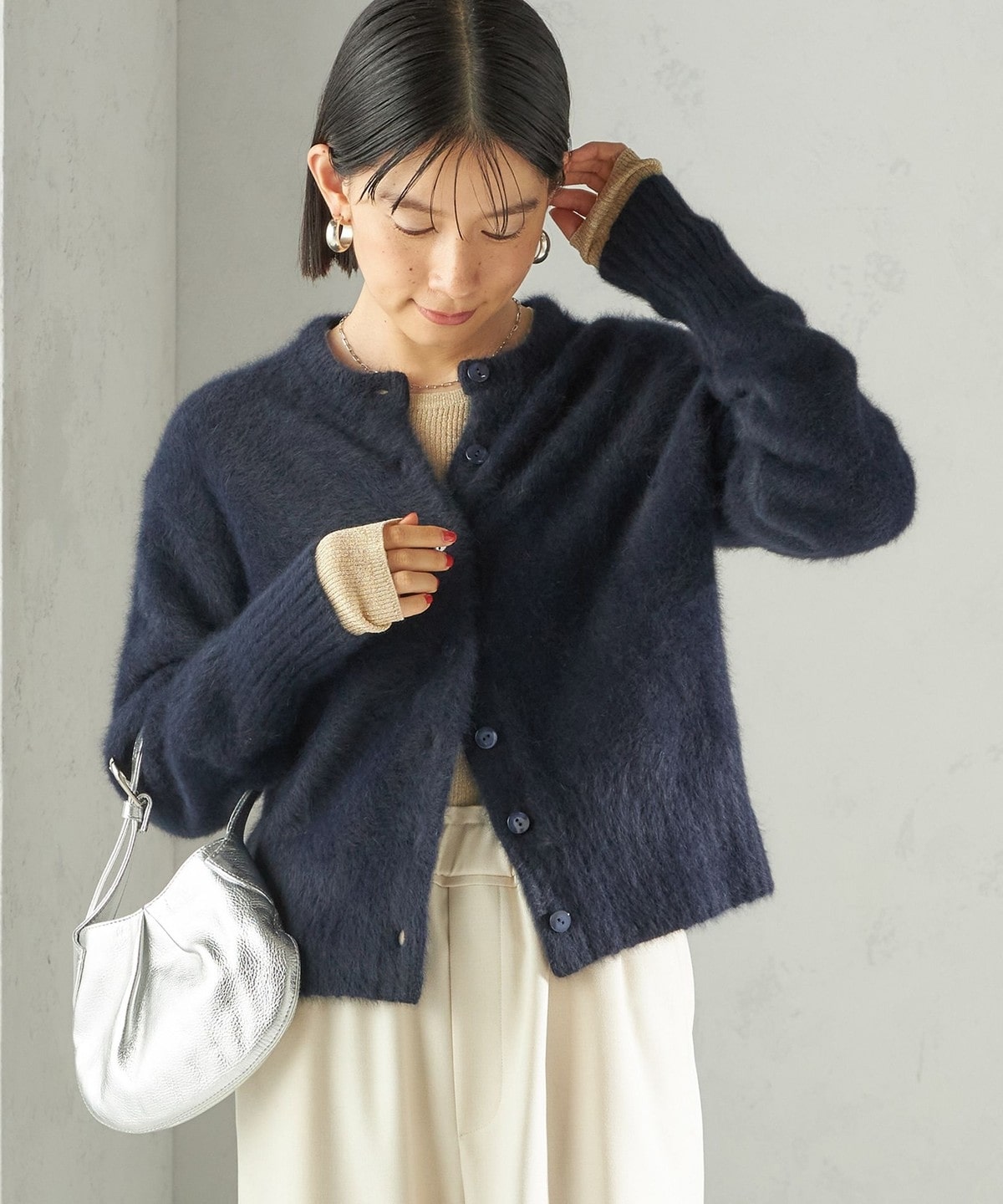 6. 【一部WEB限定】〈手洗い可能〉フォックス クルーネック ニット カーディガン