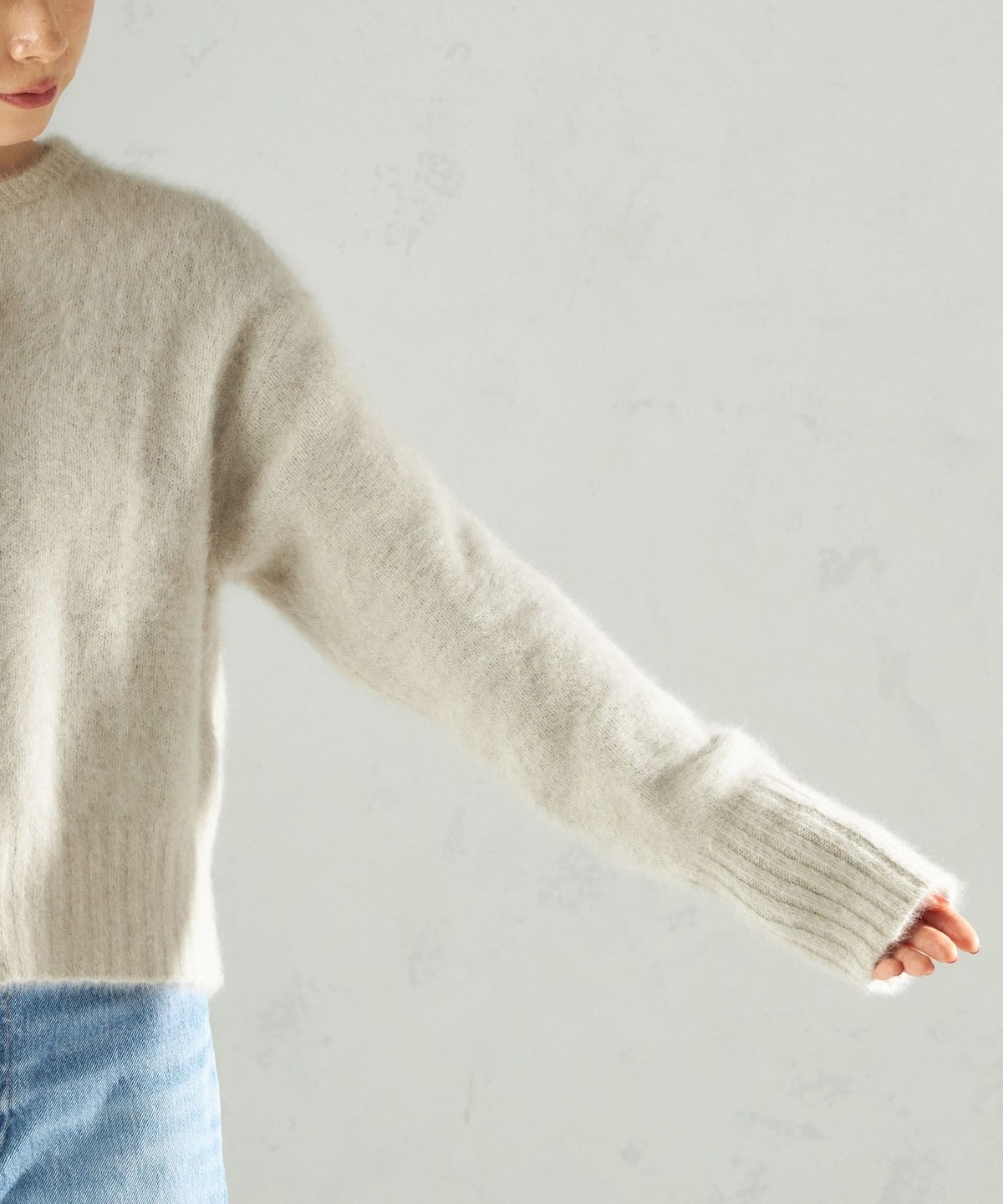 その軽さを存分に感じていただけるよう、5GGの天竺編みで丁寧に編み立てました。