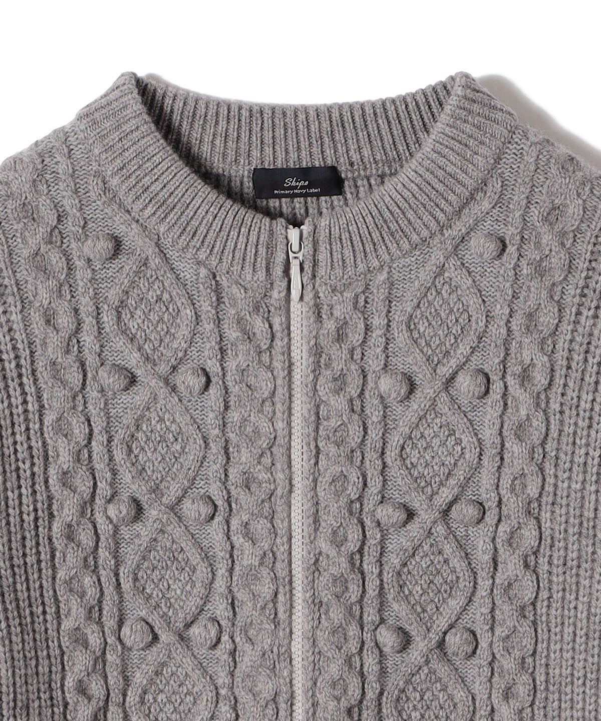 SHIPS Primary Navy Label:〈手洗い可能〉PON PON ケーブル ジップ アップ カーディガン