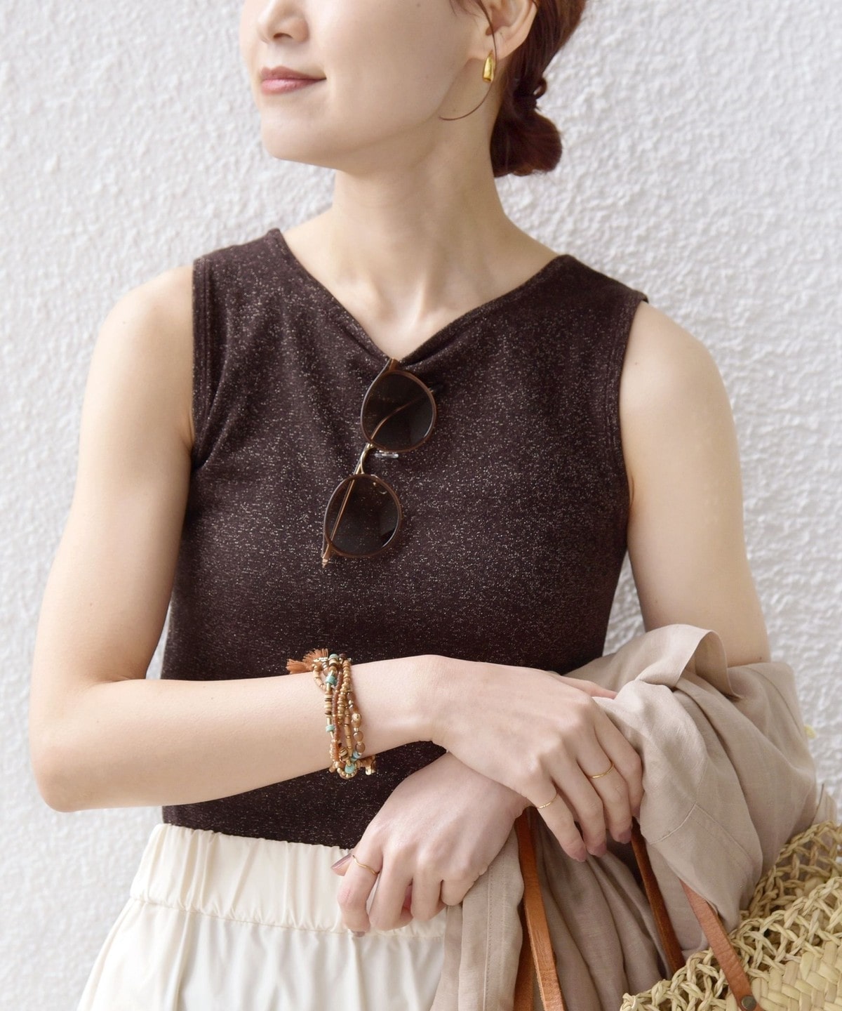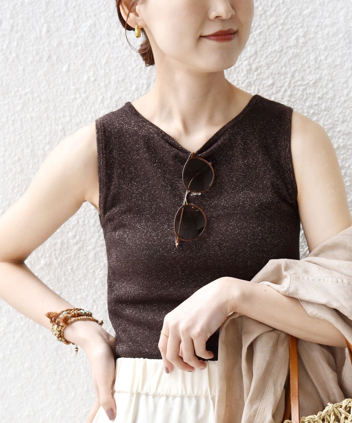 《一部追加予約》〈手洗い可能〉ラメ 2WAY ノースリーブ プルオーバー