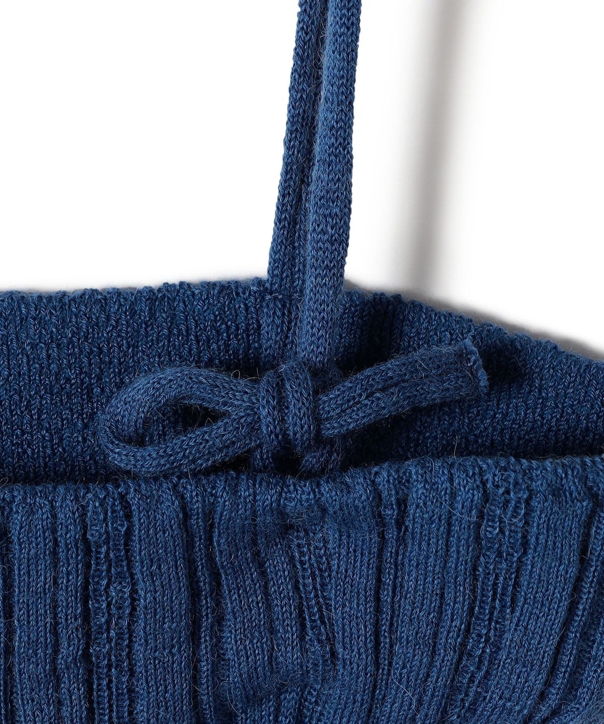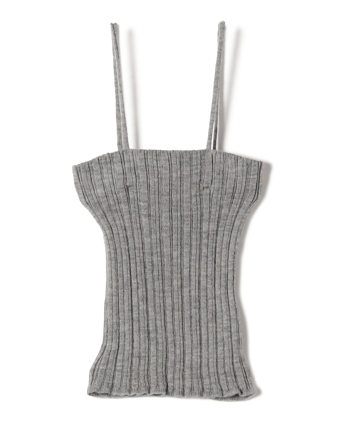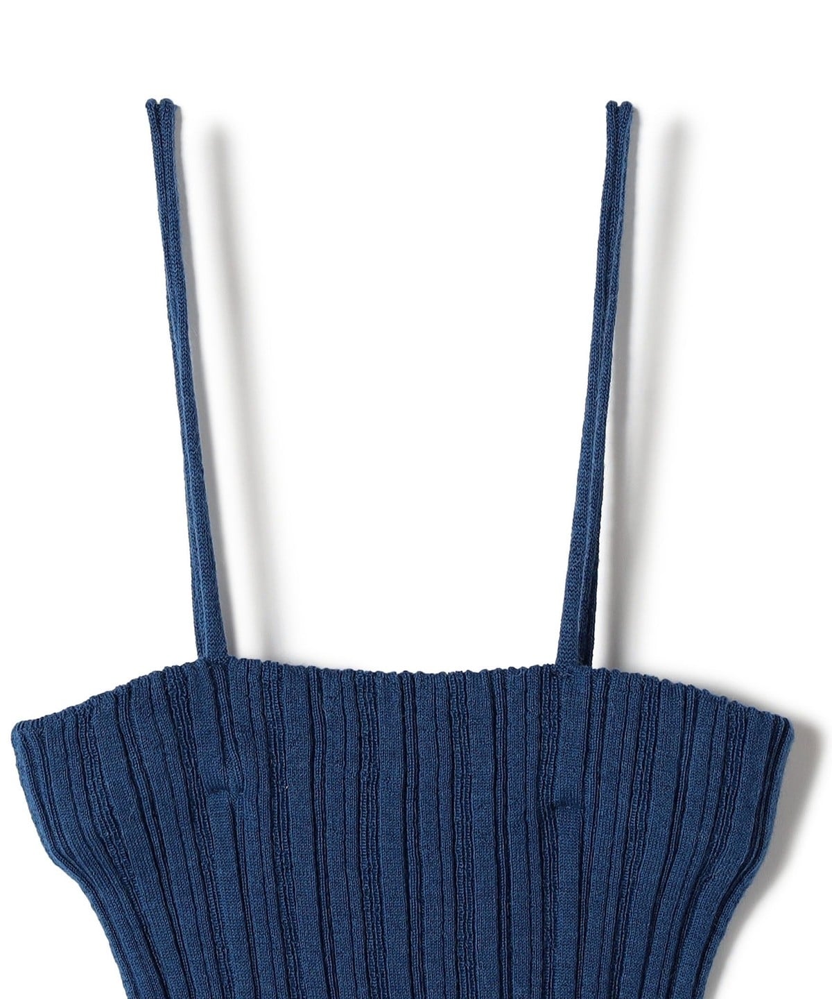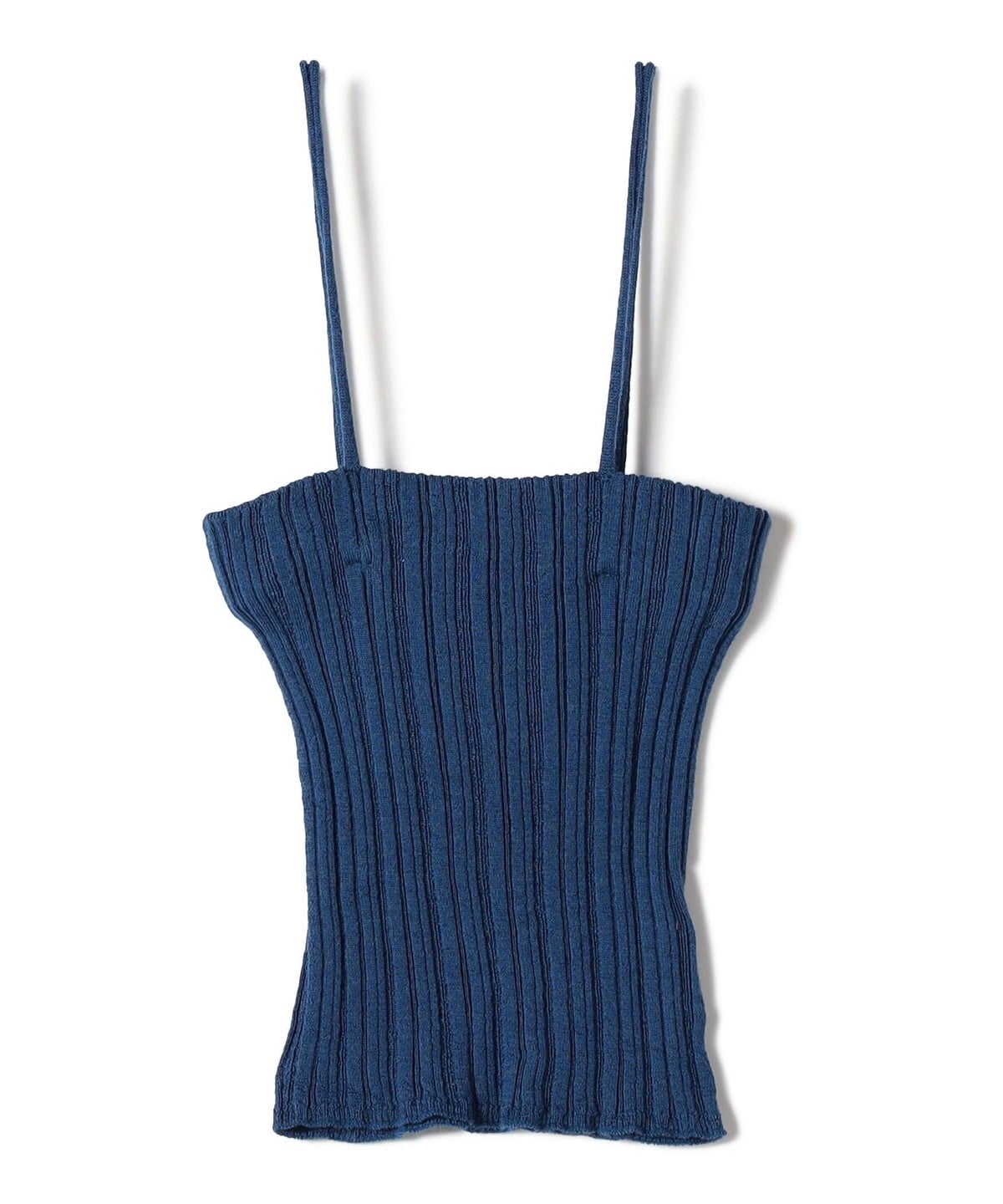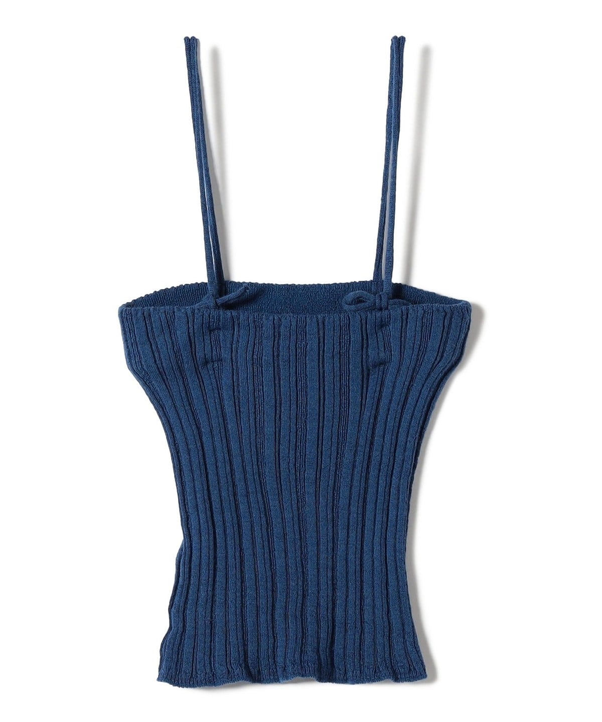 ランダムリブに編んだ肩紐のついたチューブトップです。