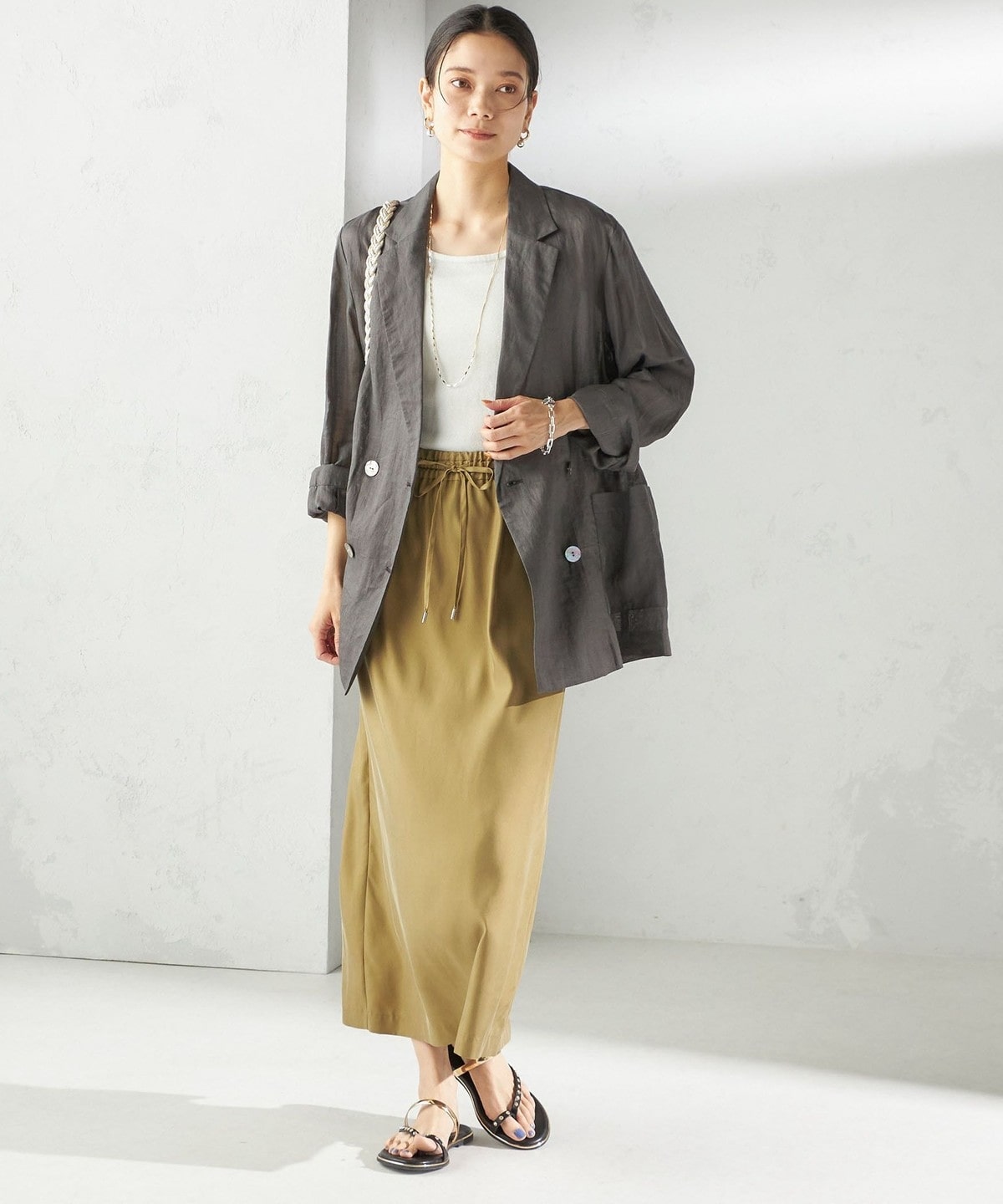 シャツ羽織だけではなく、少しきちんとした見え方にしたいときなどにもおすすめ。
