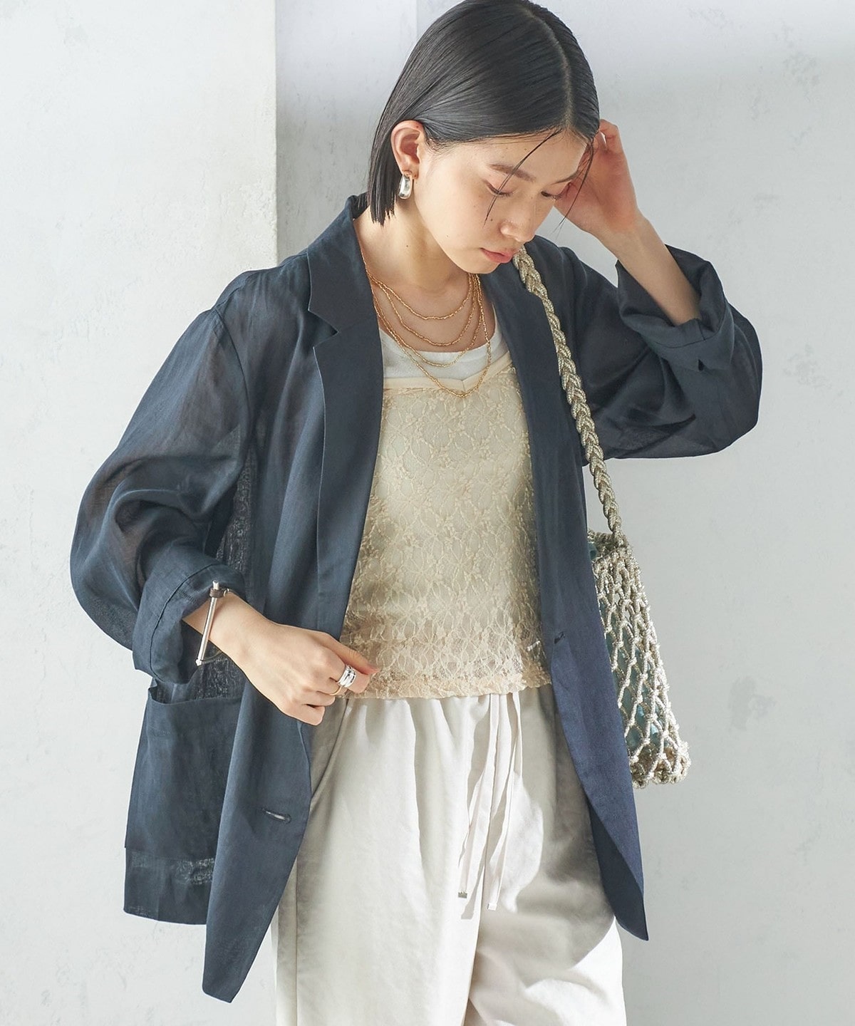 シアーな素材感で抜け感のある着こなしが叶います。