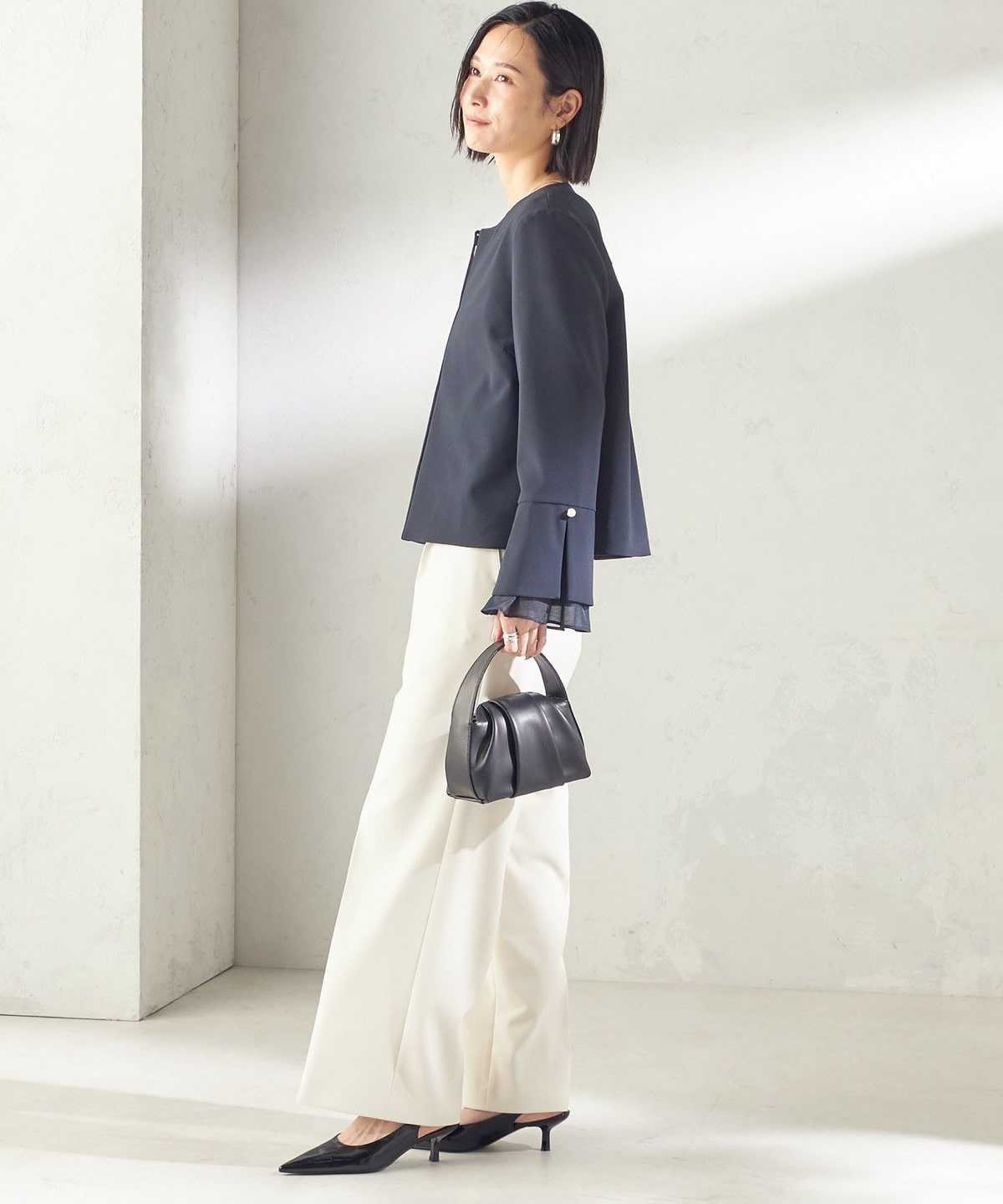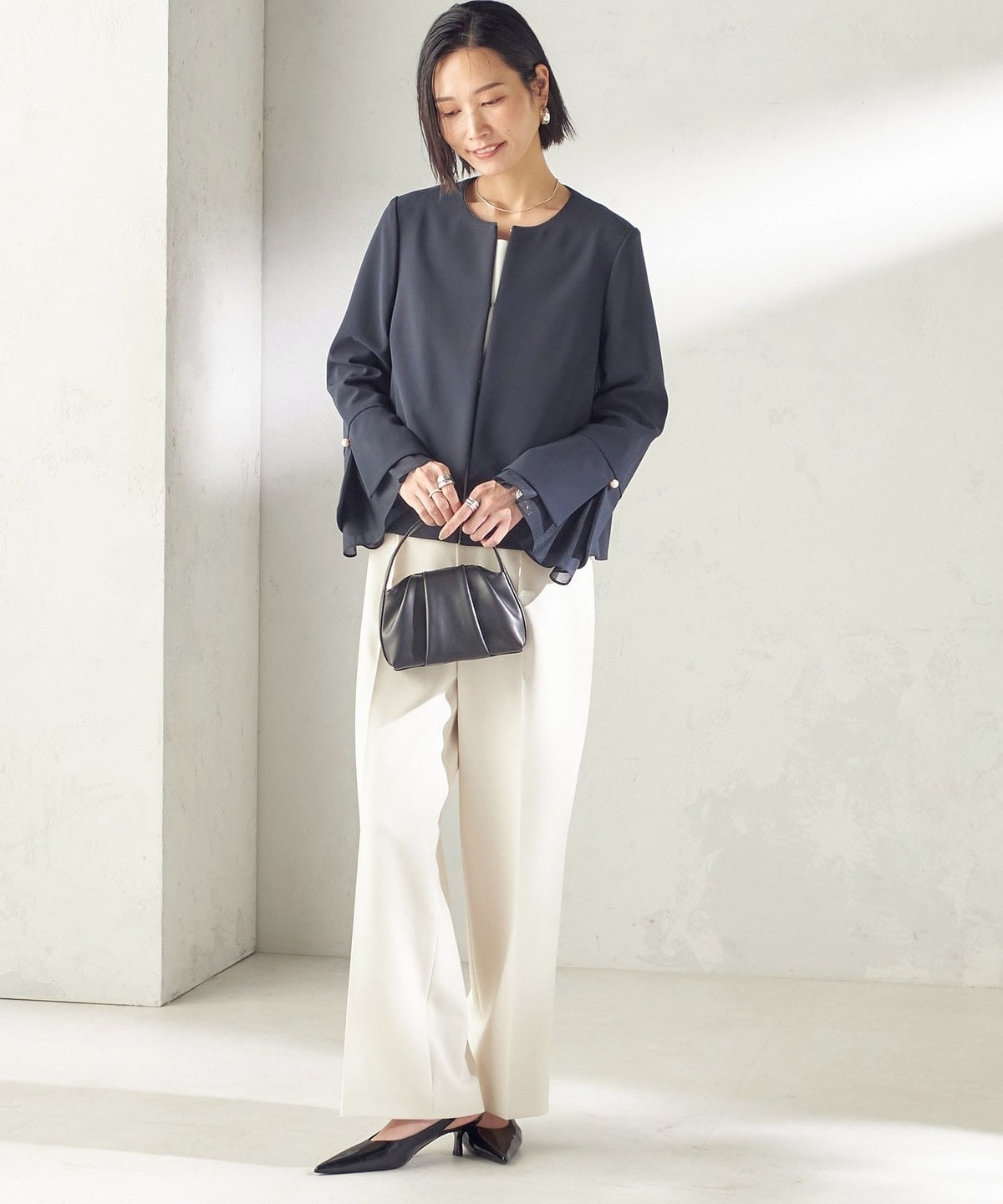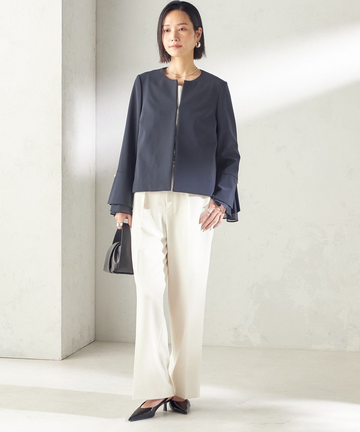 ダブル クロス 重ね袖 ノーカラー ジャケット(セレモニー対応可)