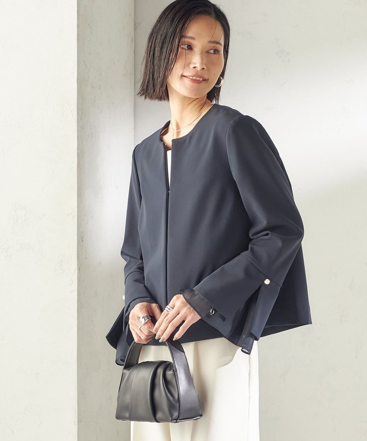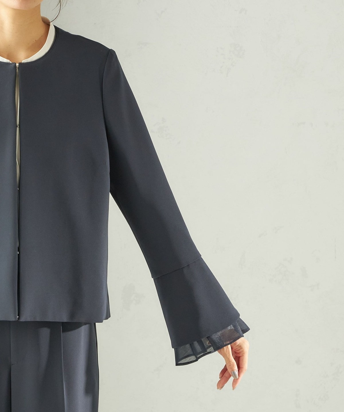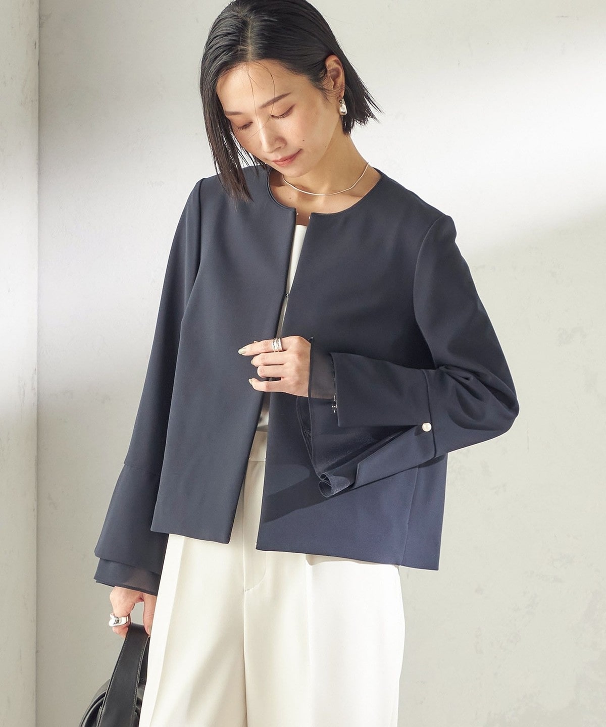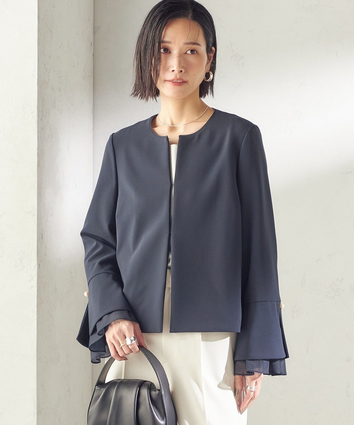 袖のオーガンジーが華やかさをプラスするデザインジャケット