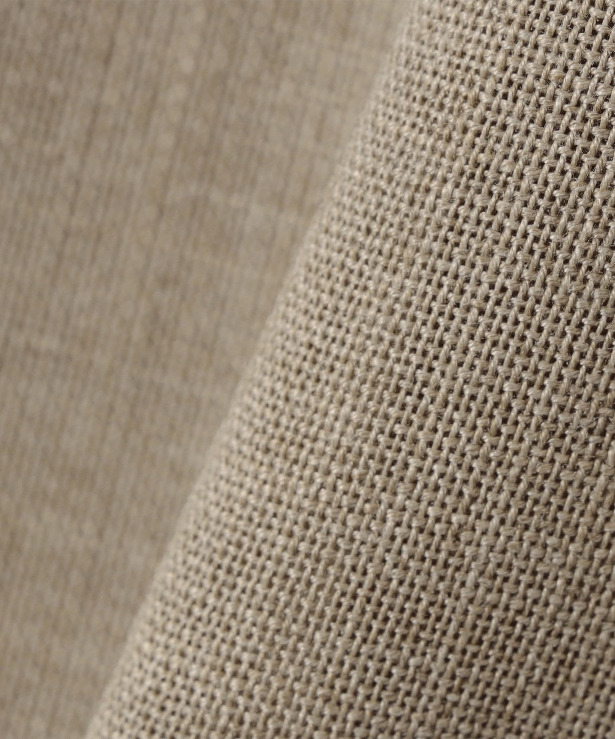 従来の麻調合繊とは違い、天然の麻に限りなく近いナチュラルな見た目と風合いのポリエステル素材を使用。