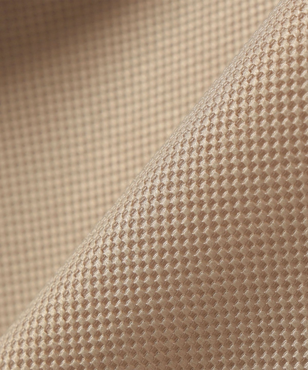 綿混で天然素材ならではの質感に、ポリエステルのハリと光沢がプラスされた上品な生地感です。