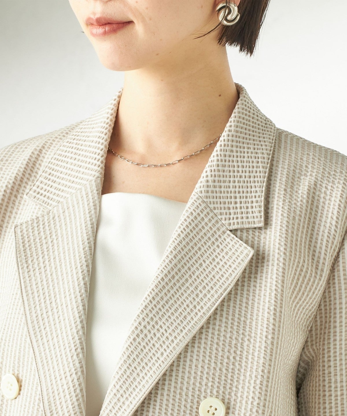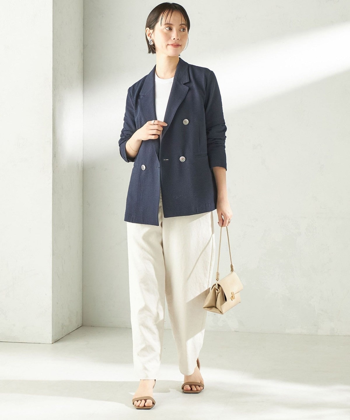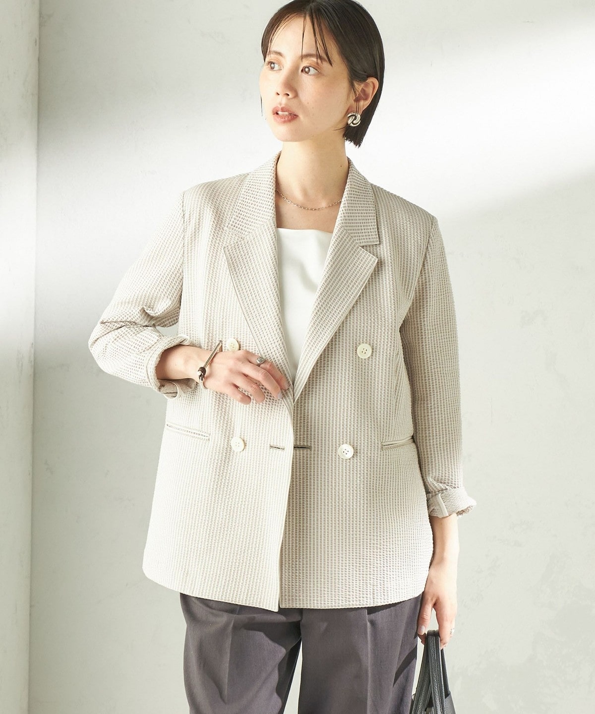 1. 《予約》〈手洗い可能〉サッカー ダブル ブレスト ジャケット ベージュ系