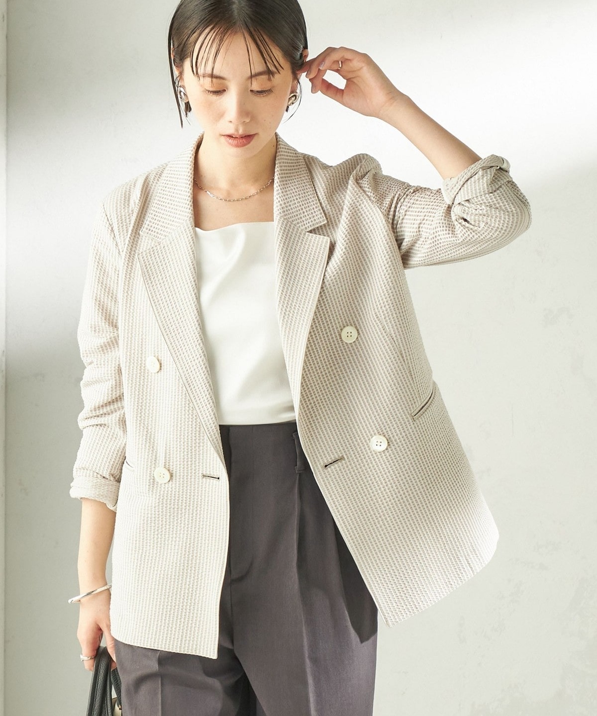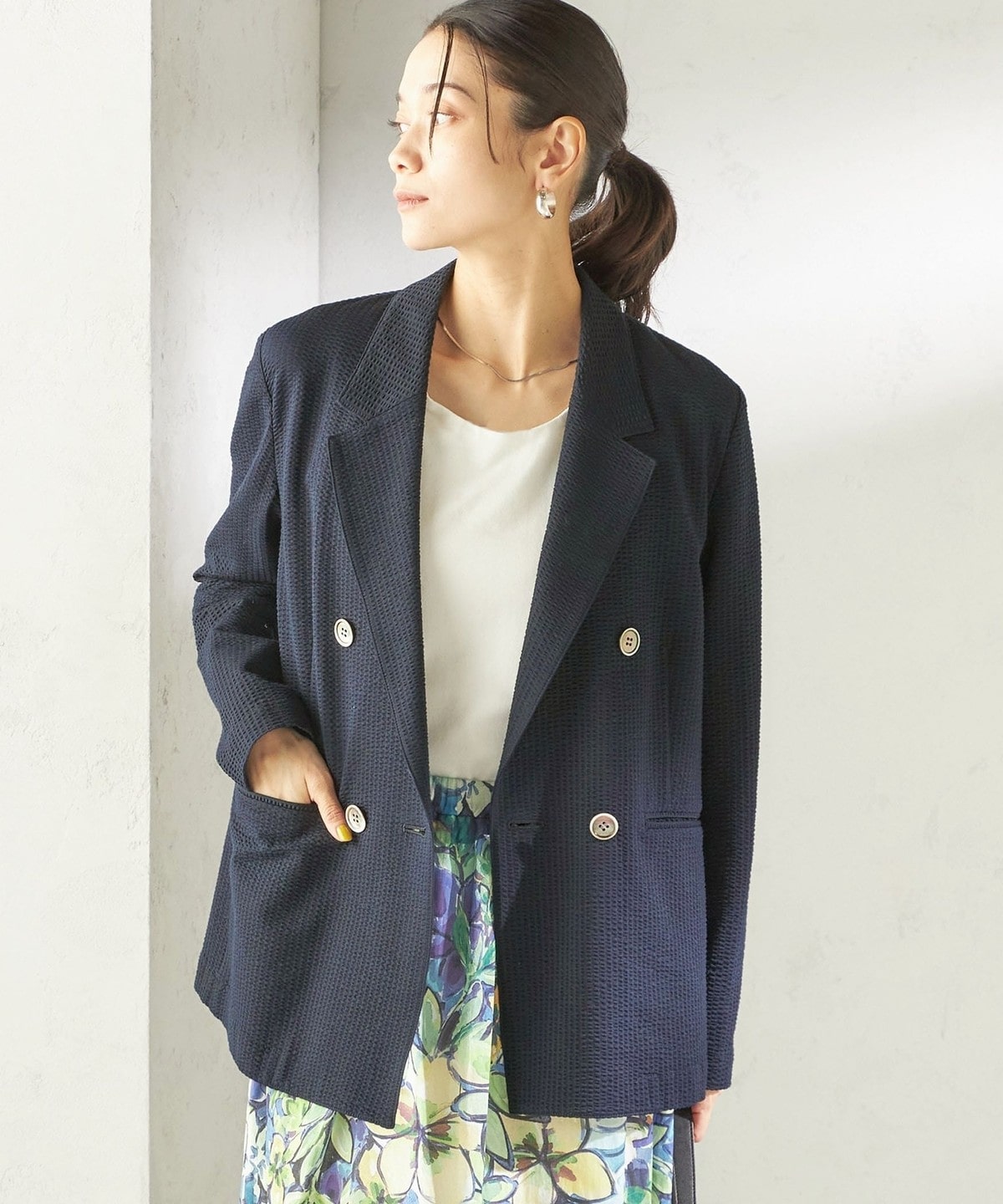 程よいオーバーサイズのブレザージャケット。