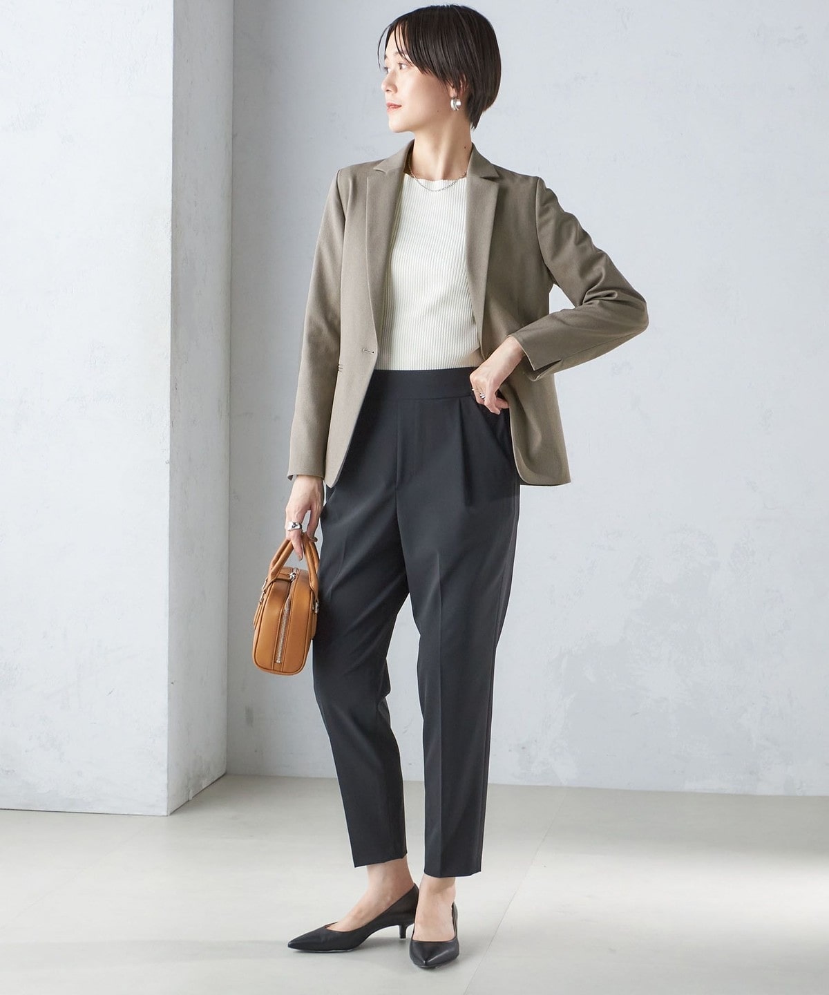 ヒップが半分隠れるくらいの長すぎず短すぎず、スカートにもパンツにも合わせやすい丈に仕上げました。