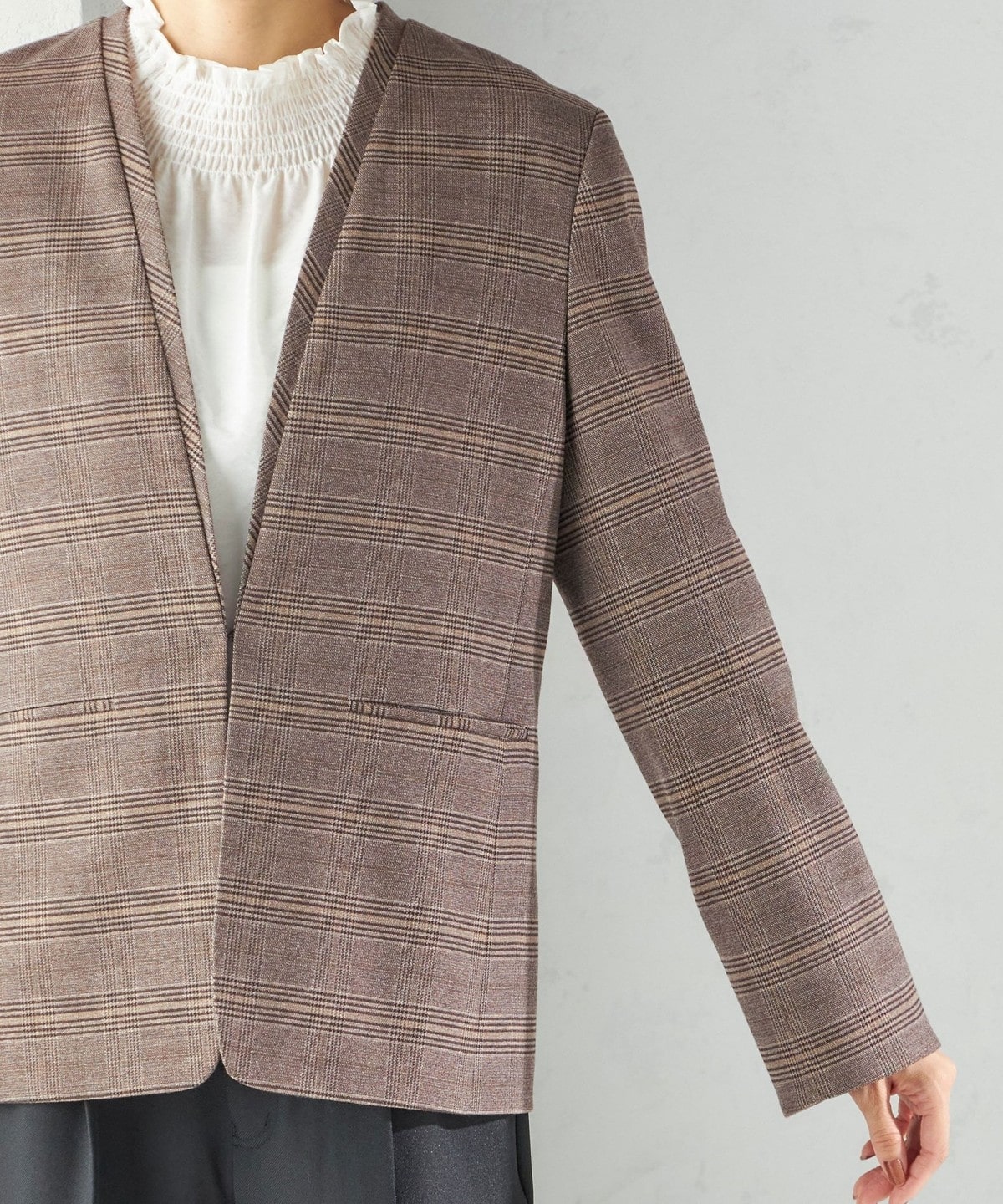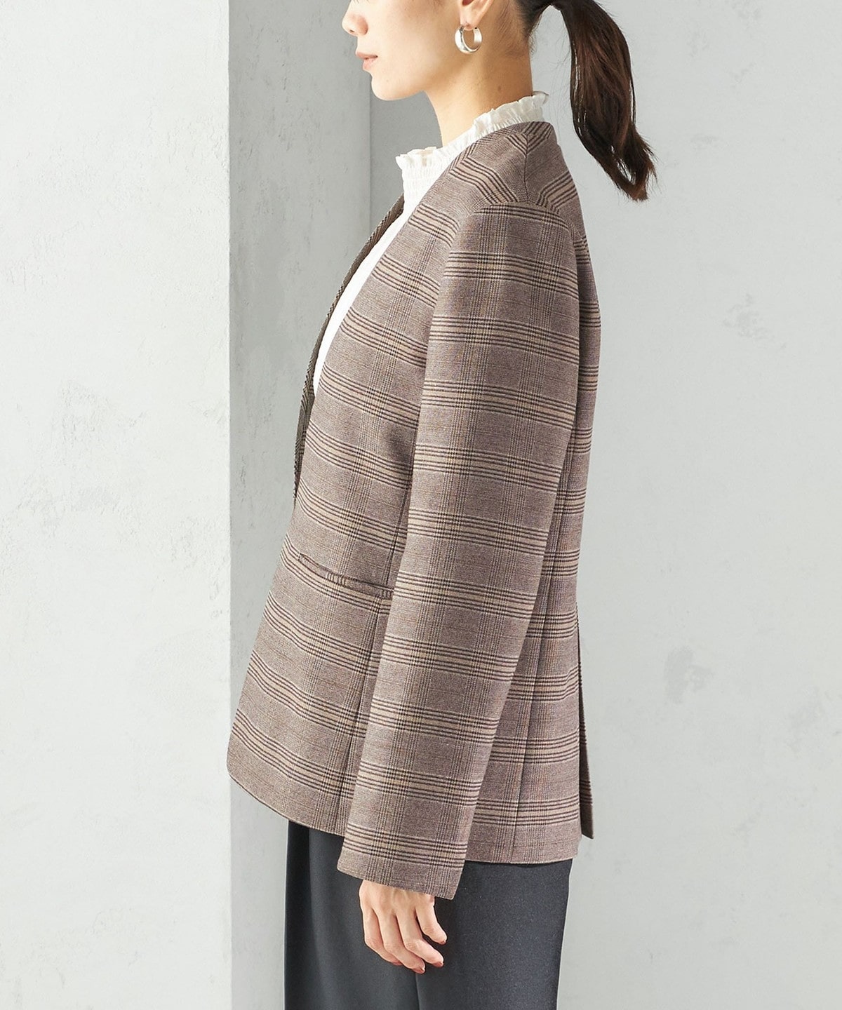 3. 〈手洗い可能〉DELEGANT ダブルカラー ジャケット(セットアップ対応) ブラウン系