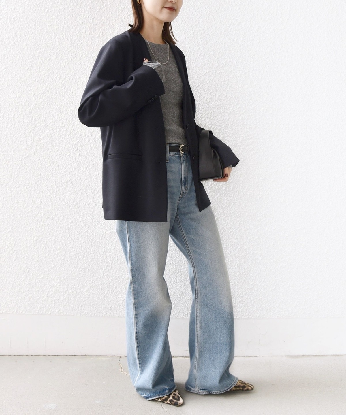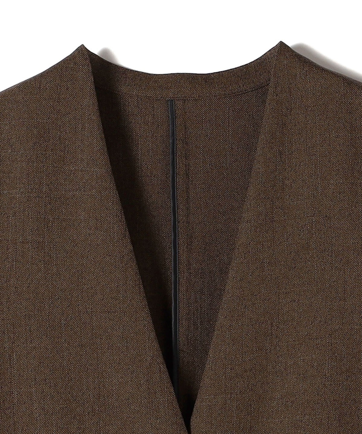 柔らかい芯地を使用し、裏地なしの軽い仕立てにすることで羽織りやすい一枚に。
